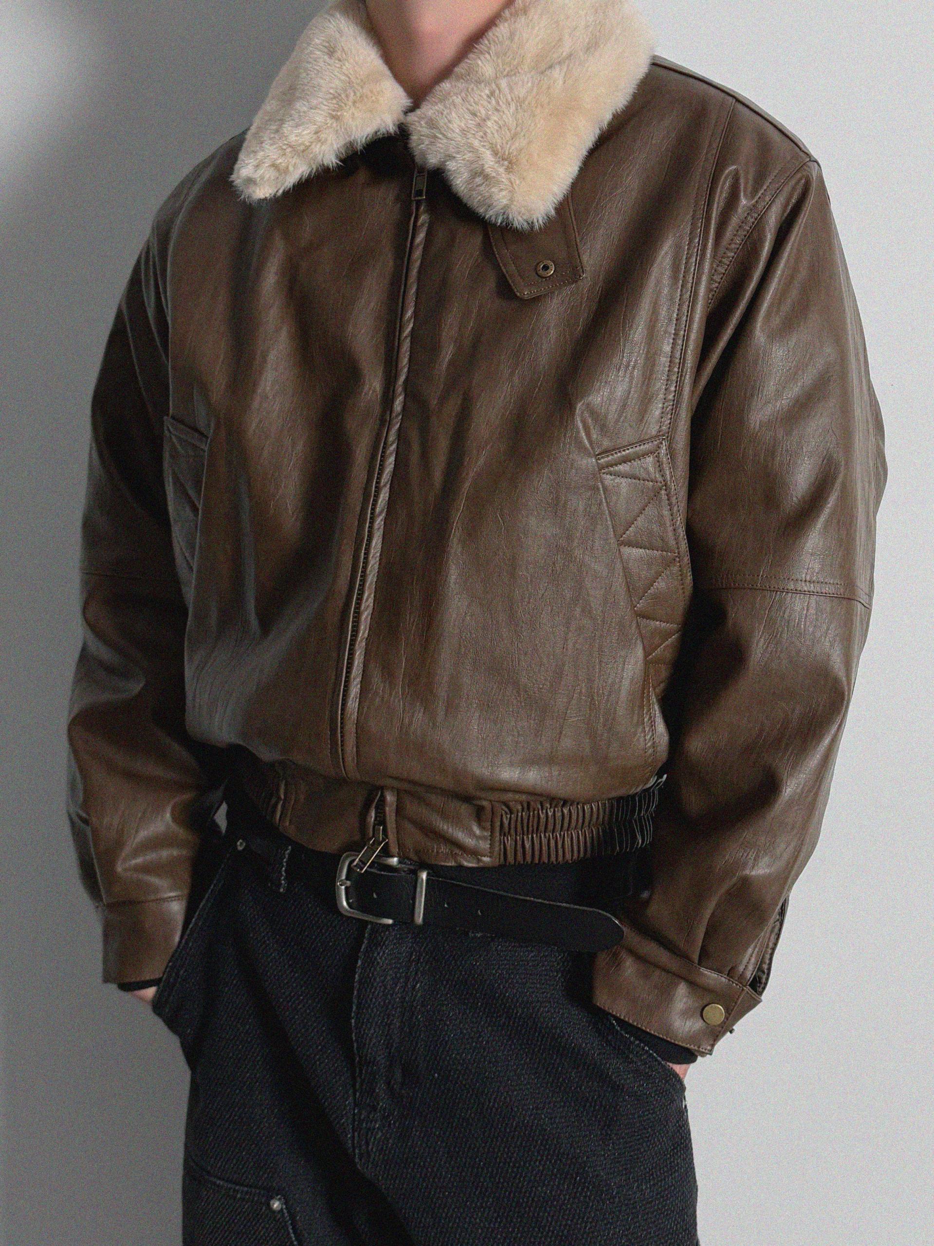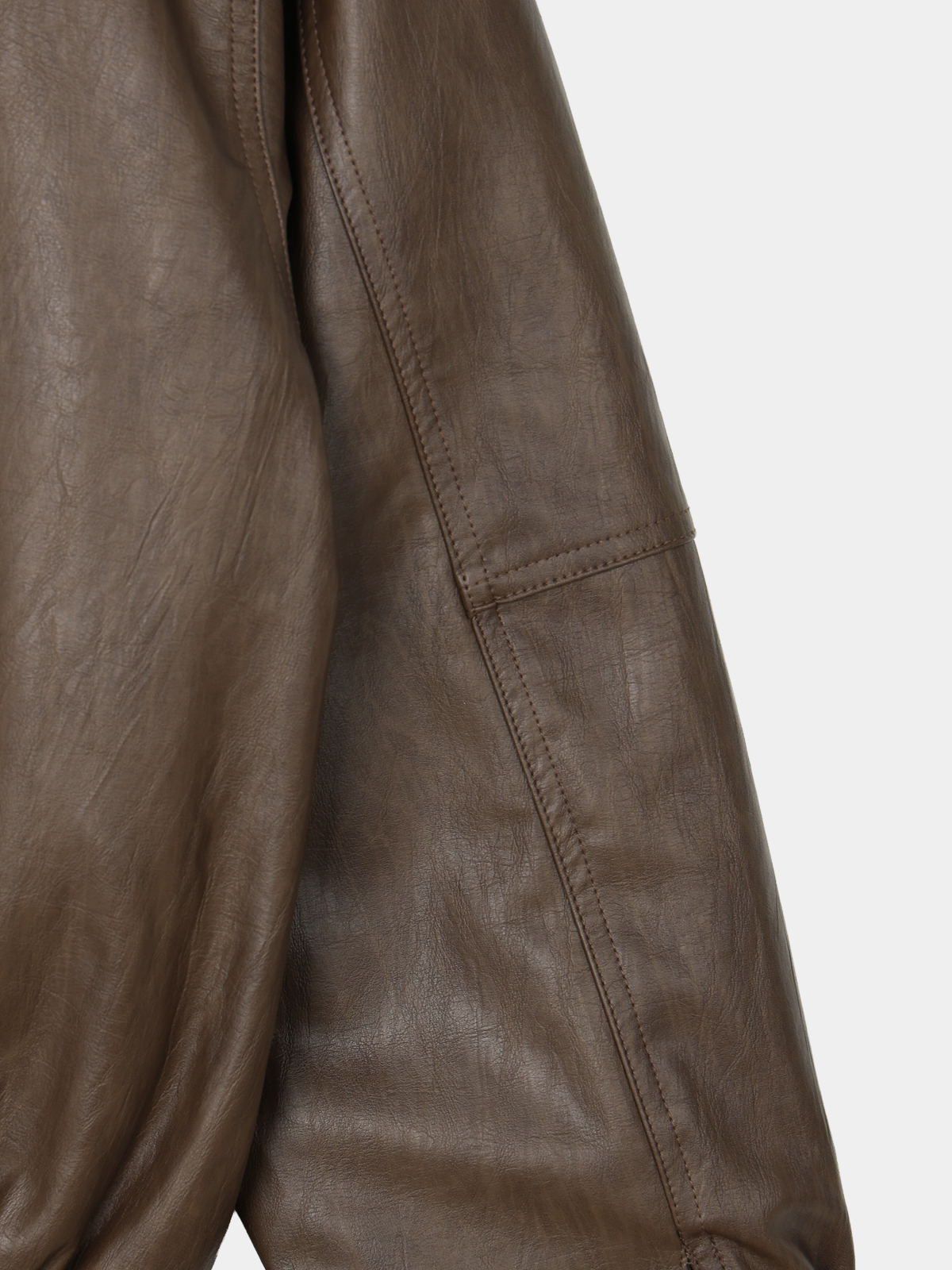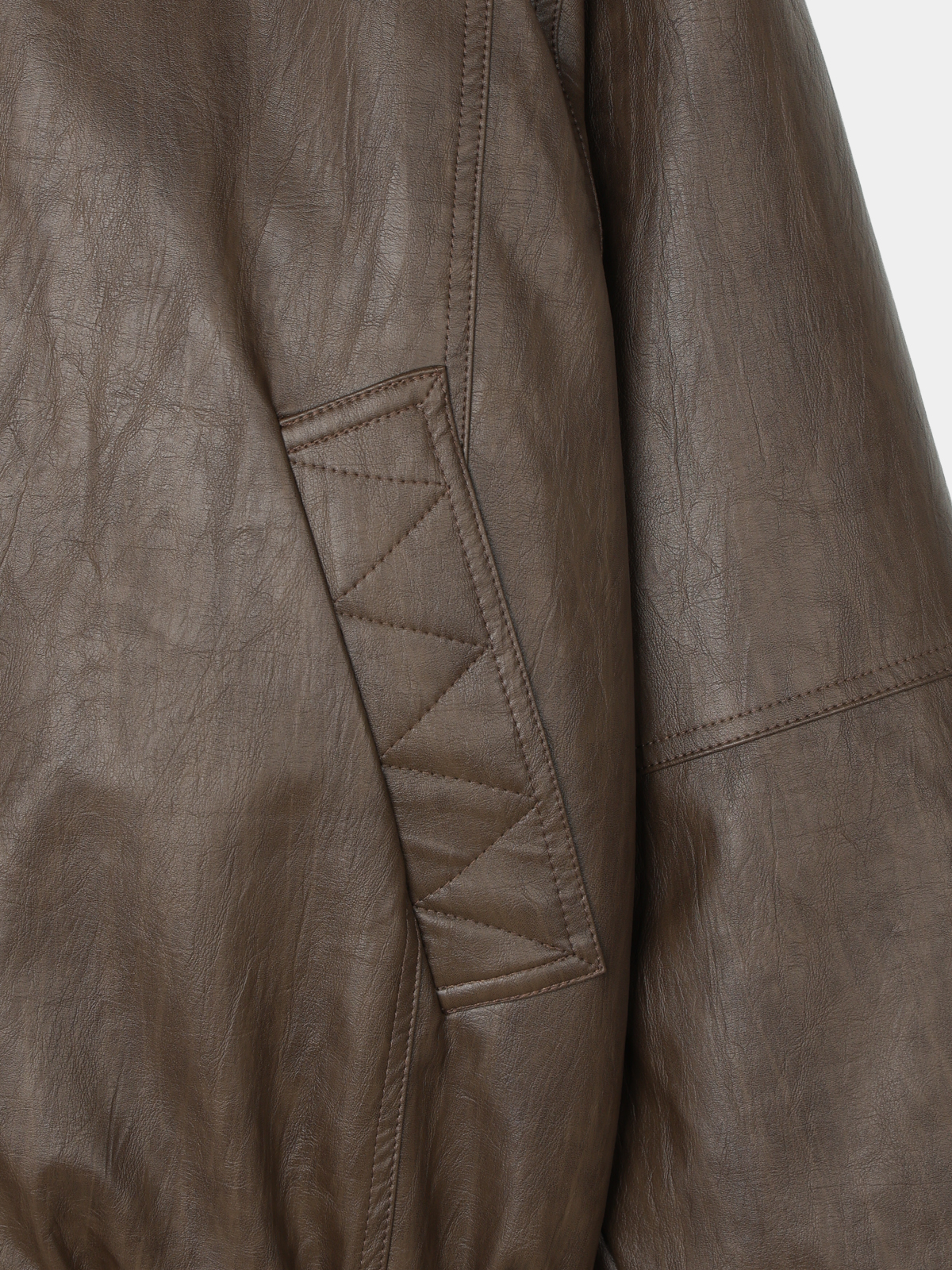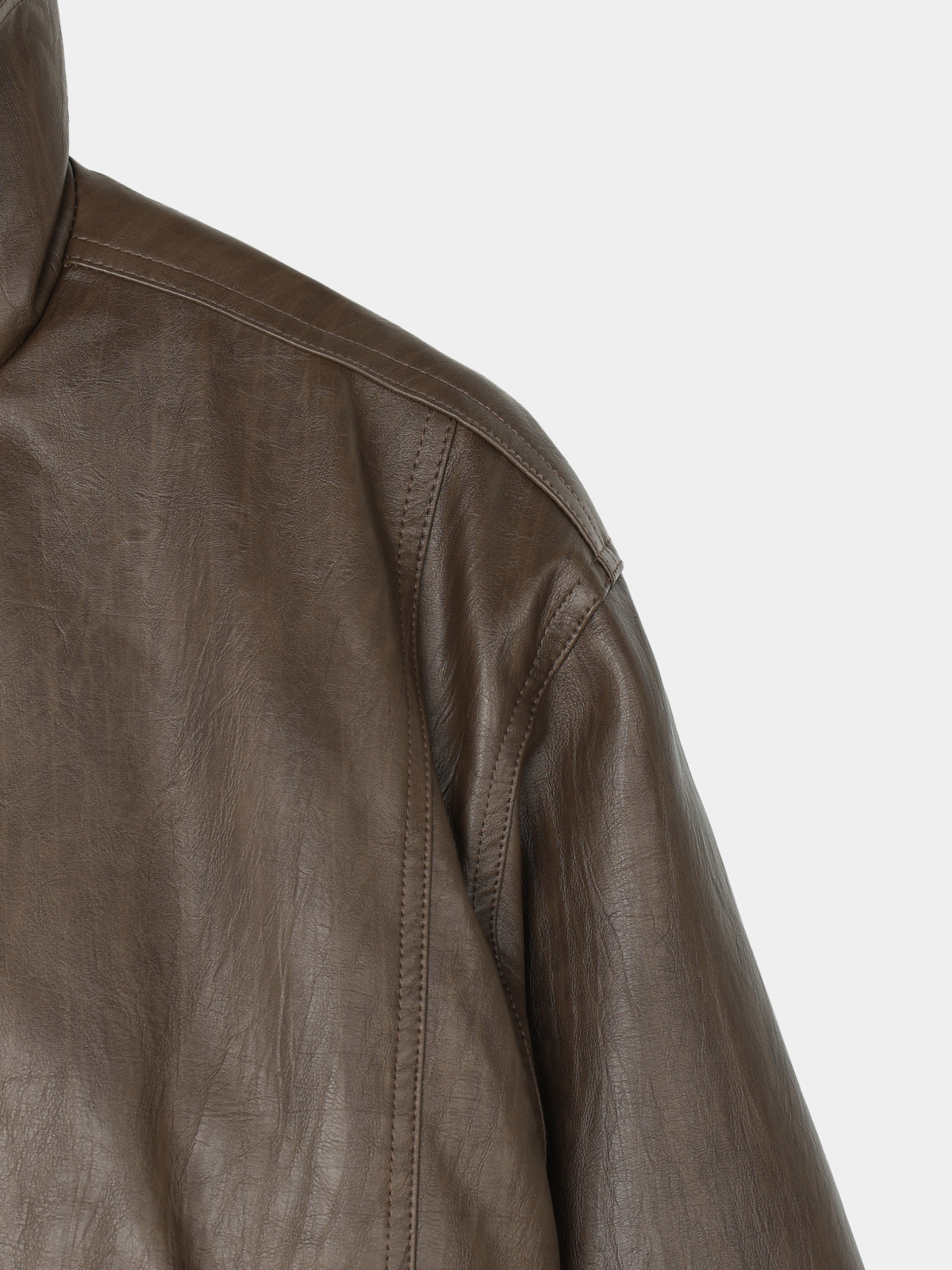 - 뻣뻣하지 않고 부드러운 비건 레더로 착용감이 매우 뛰어난 레더 무스탕