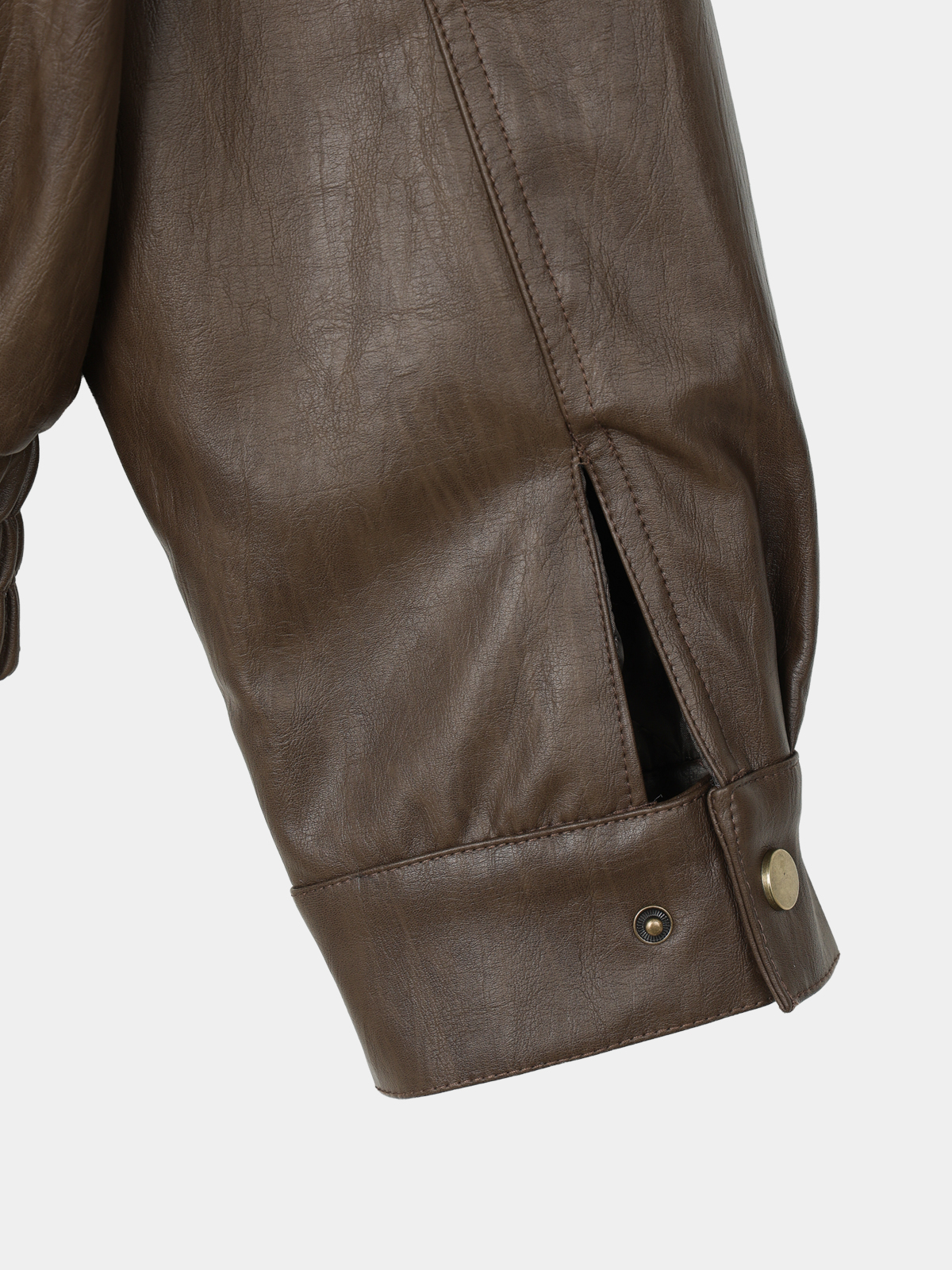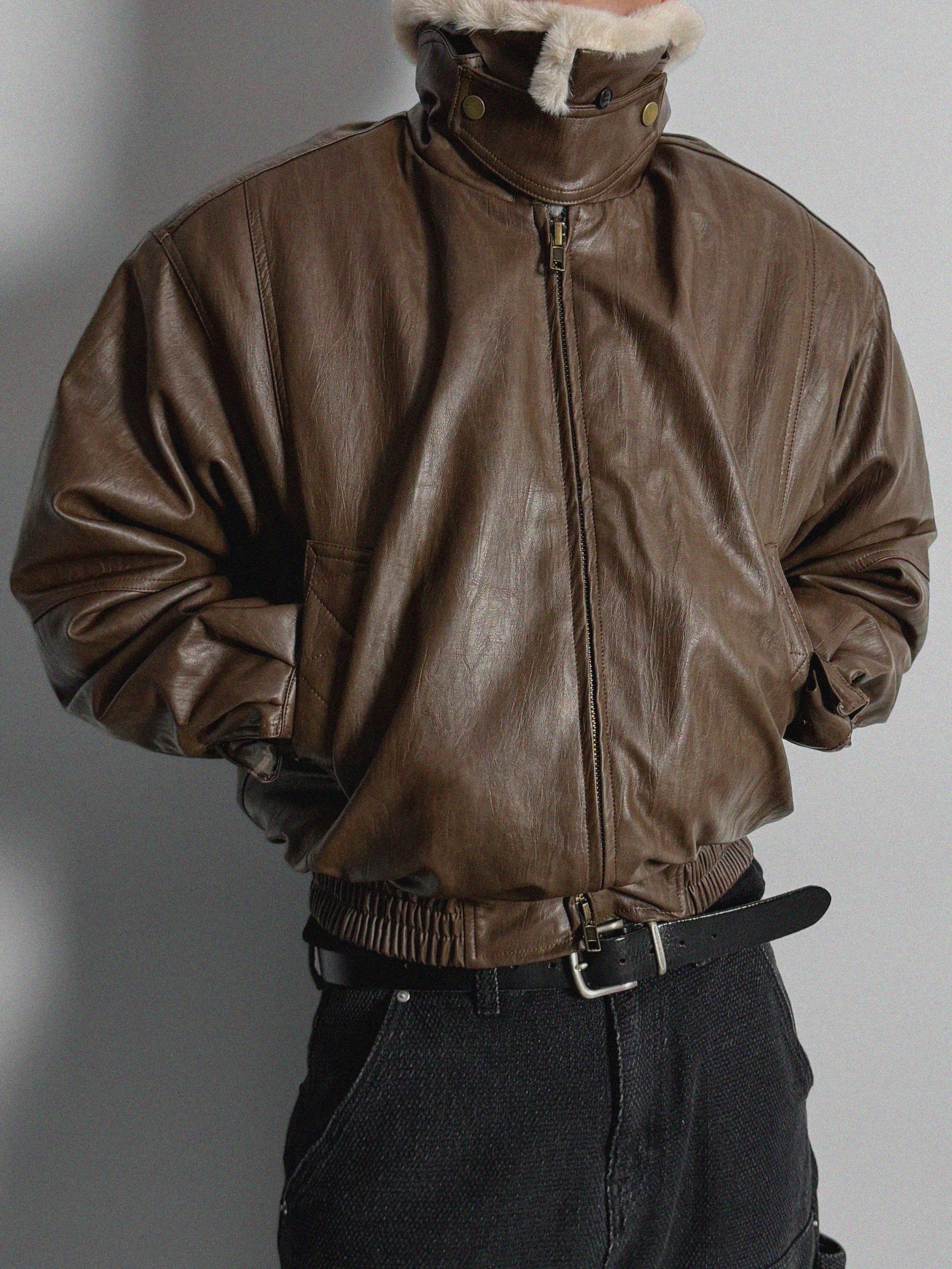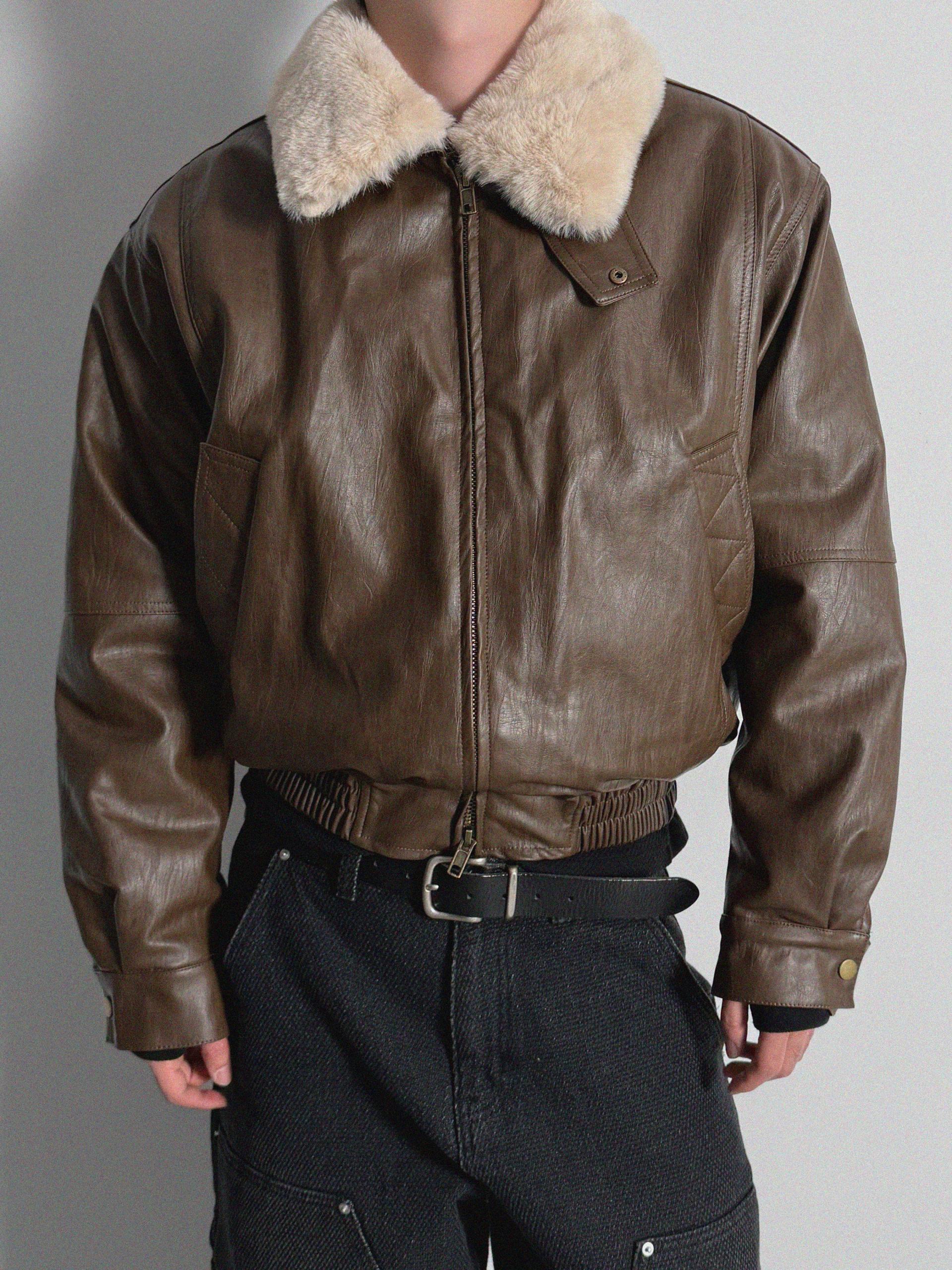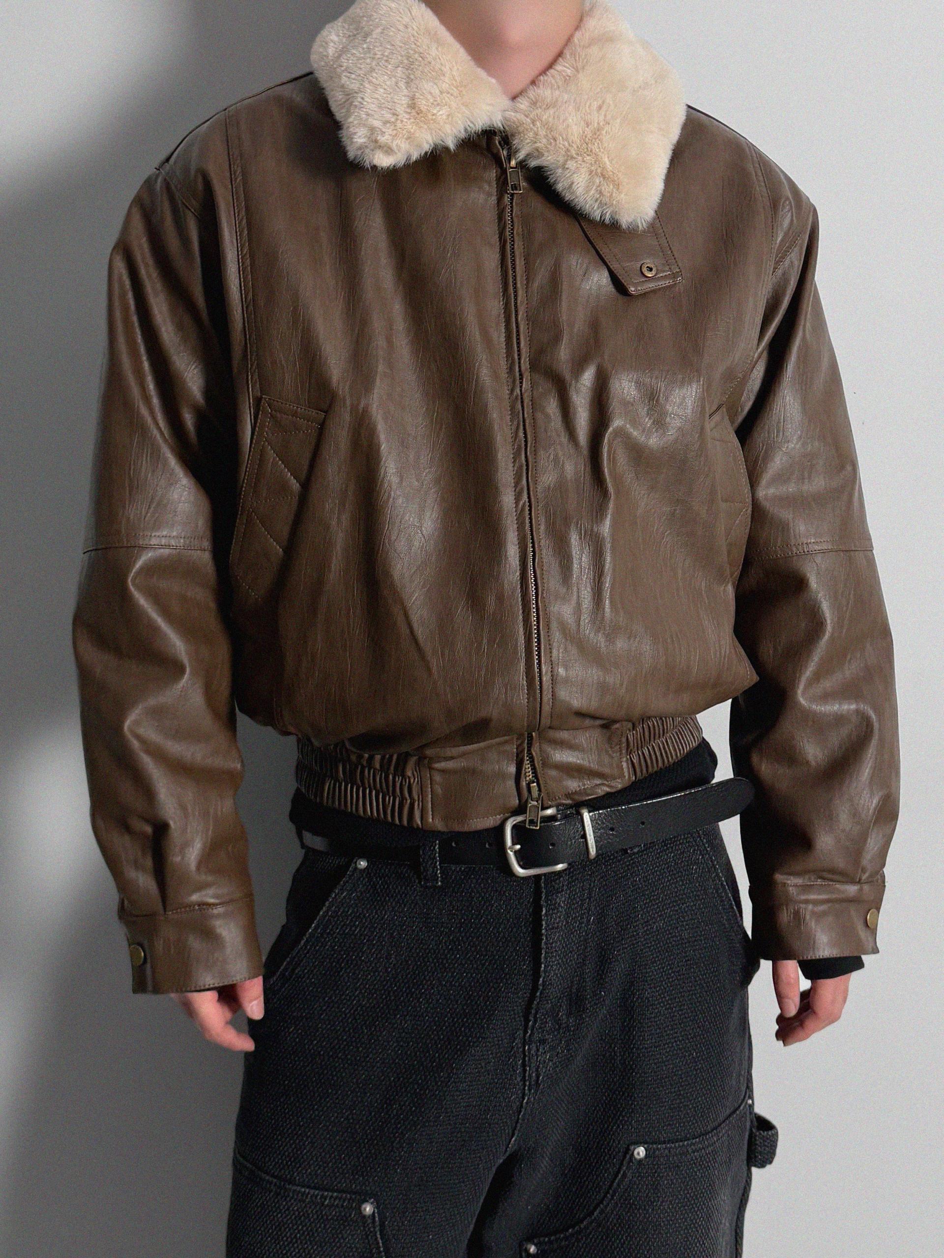 - 뻣뻣하지 않고 부드러운 비건 레더로 착용감이 매우 뛰어난 레더 무스탕