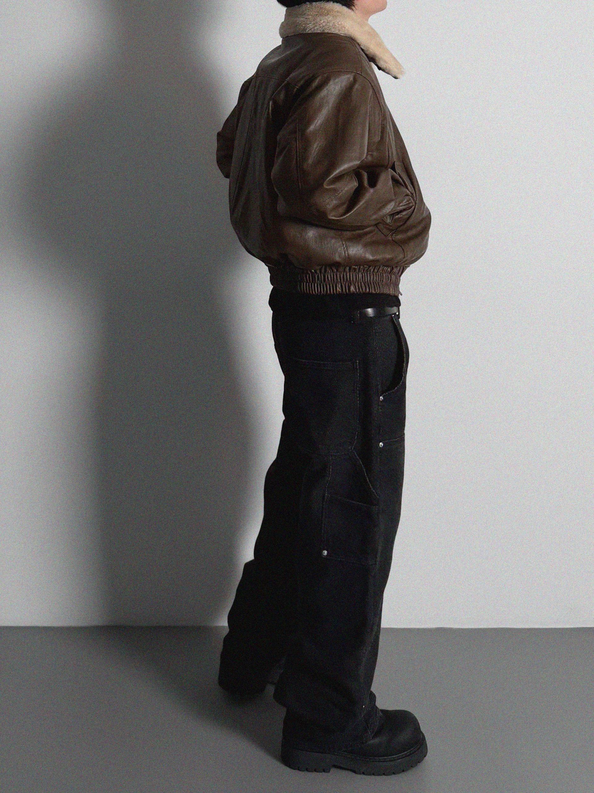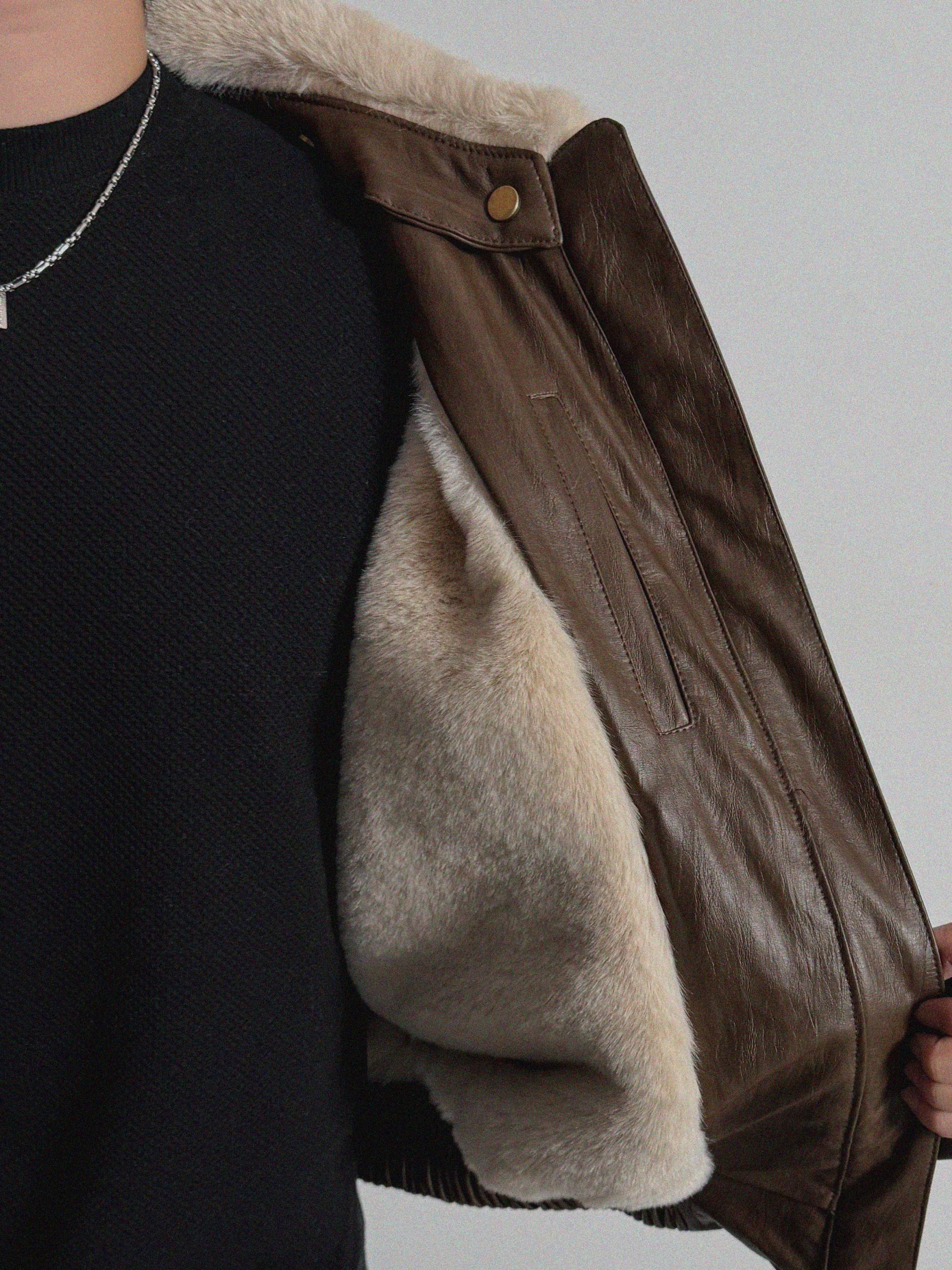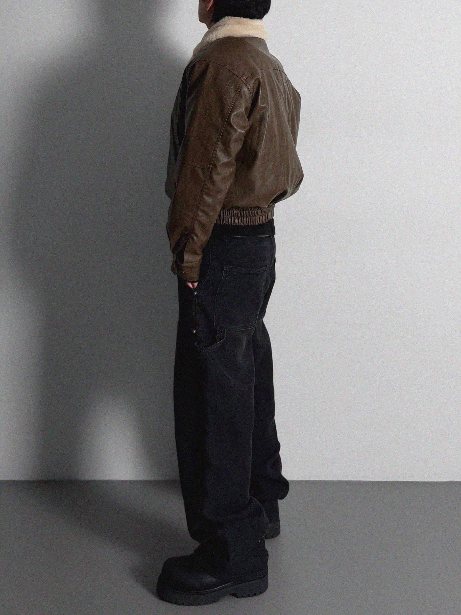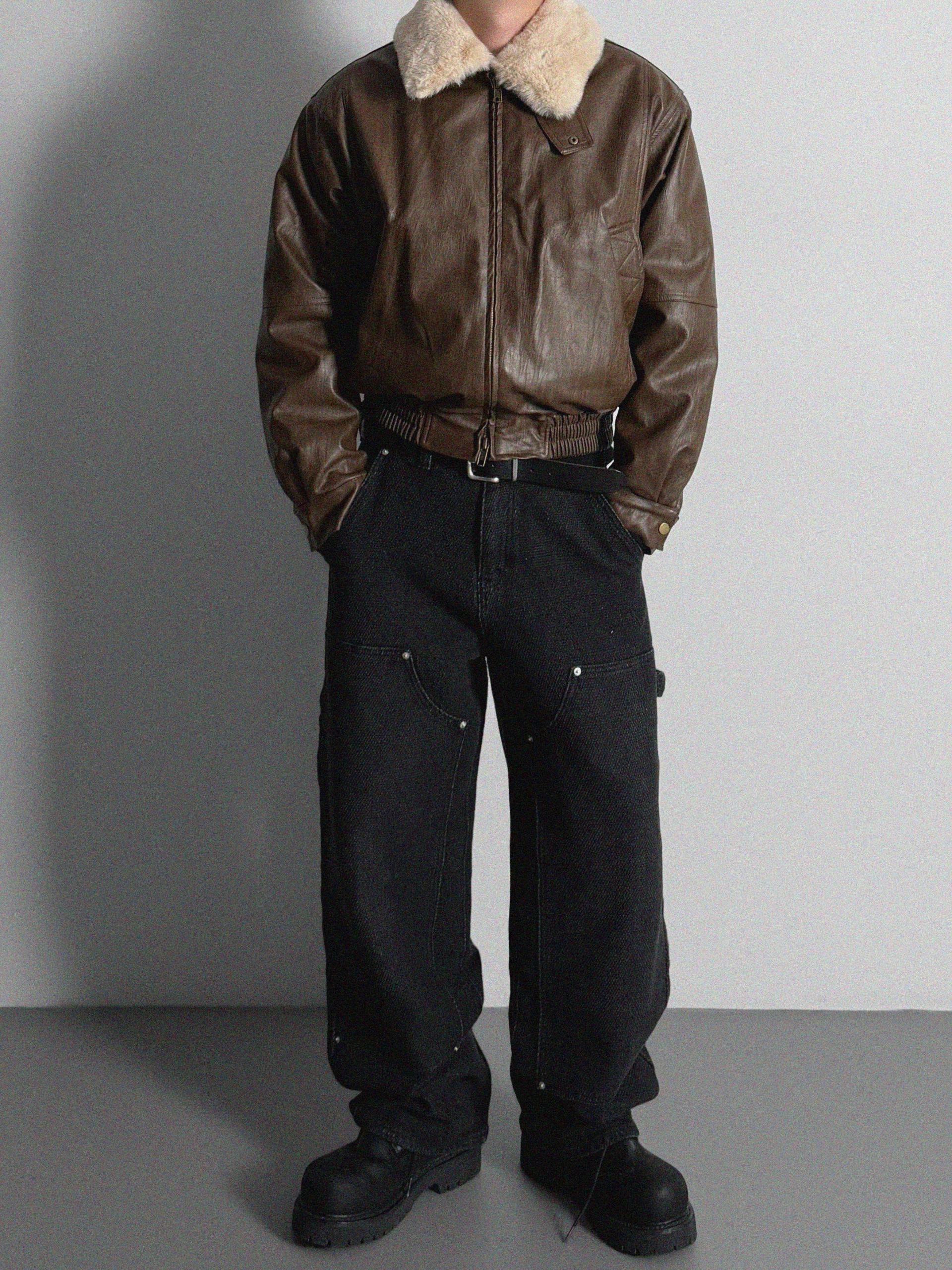- 뻣뻣하지 않고 부드러운 비건 레더로 착용감이 매우 뛰어난 레더 무스탕