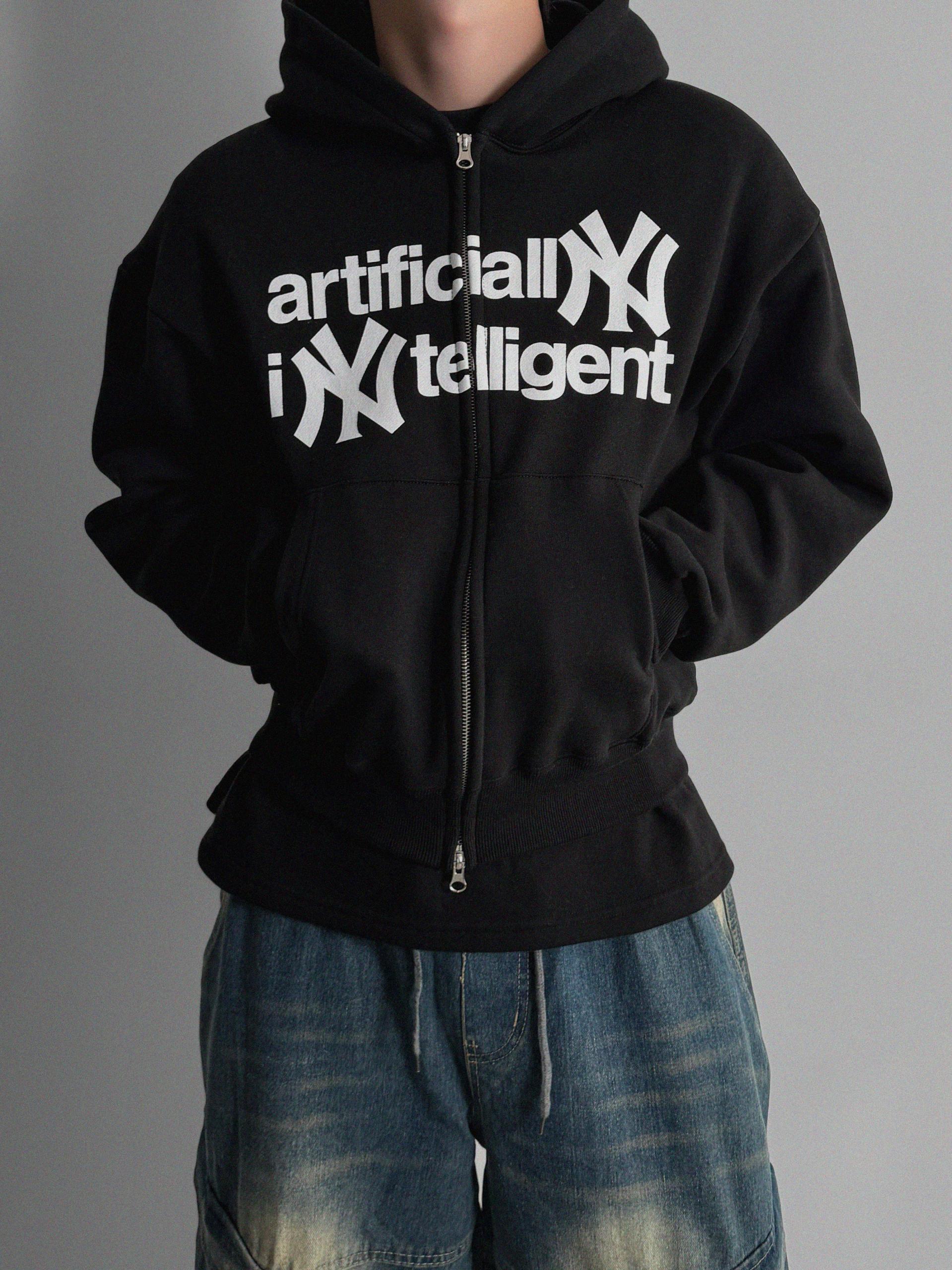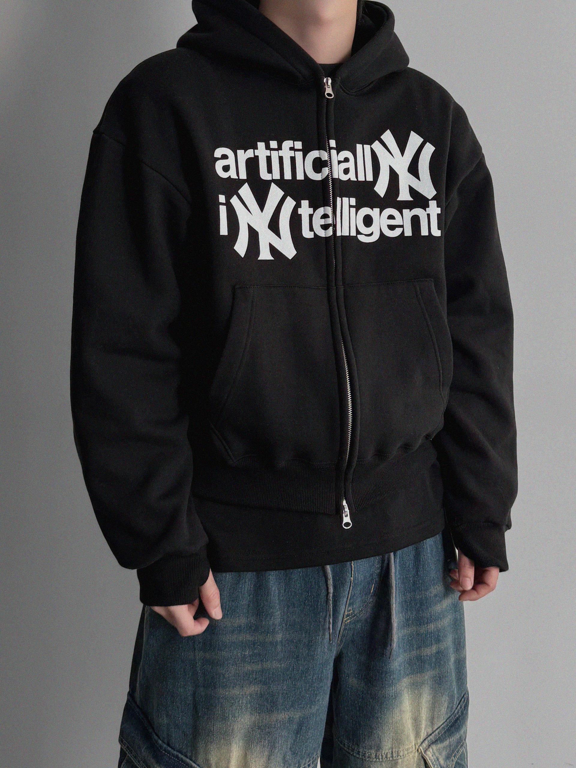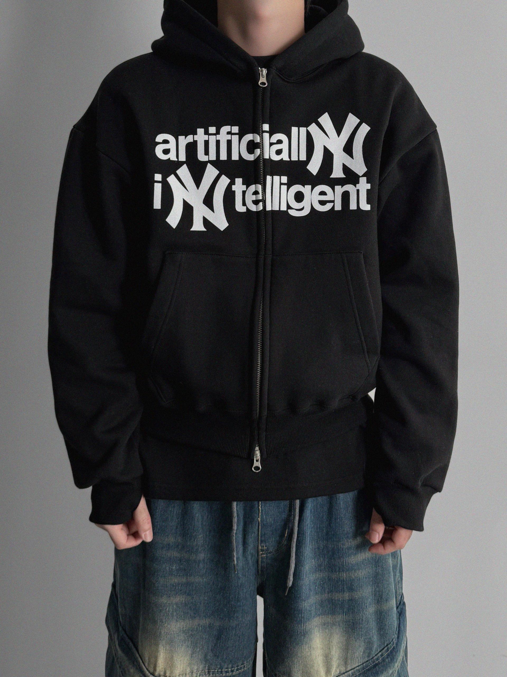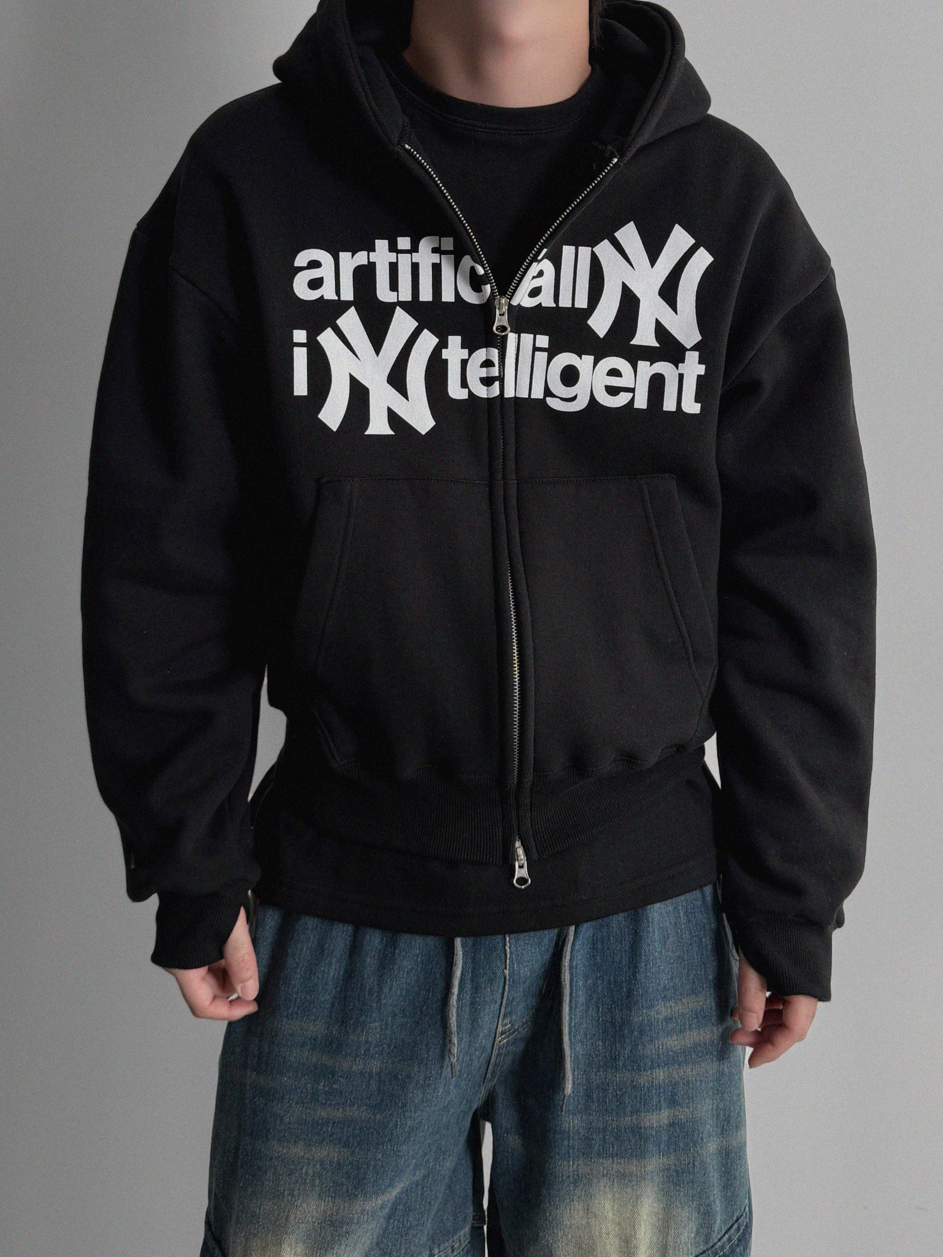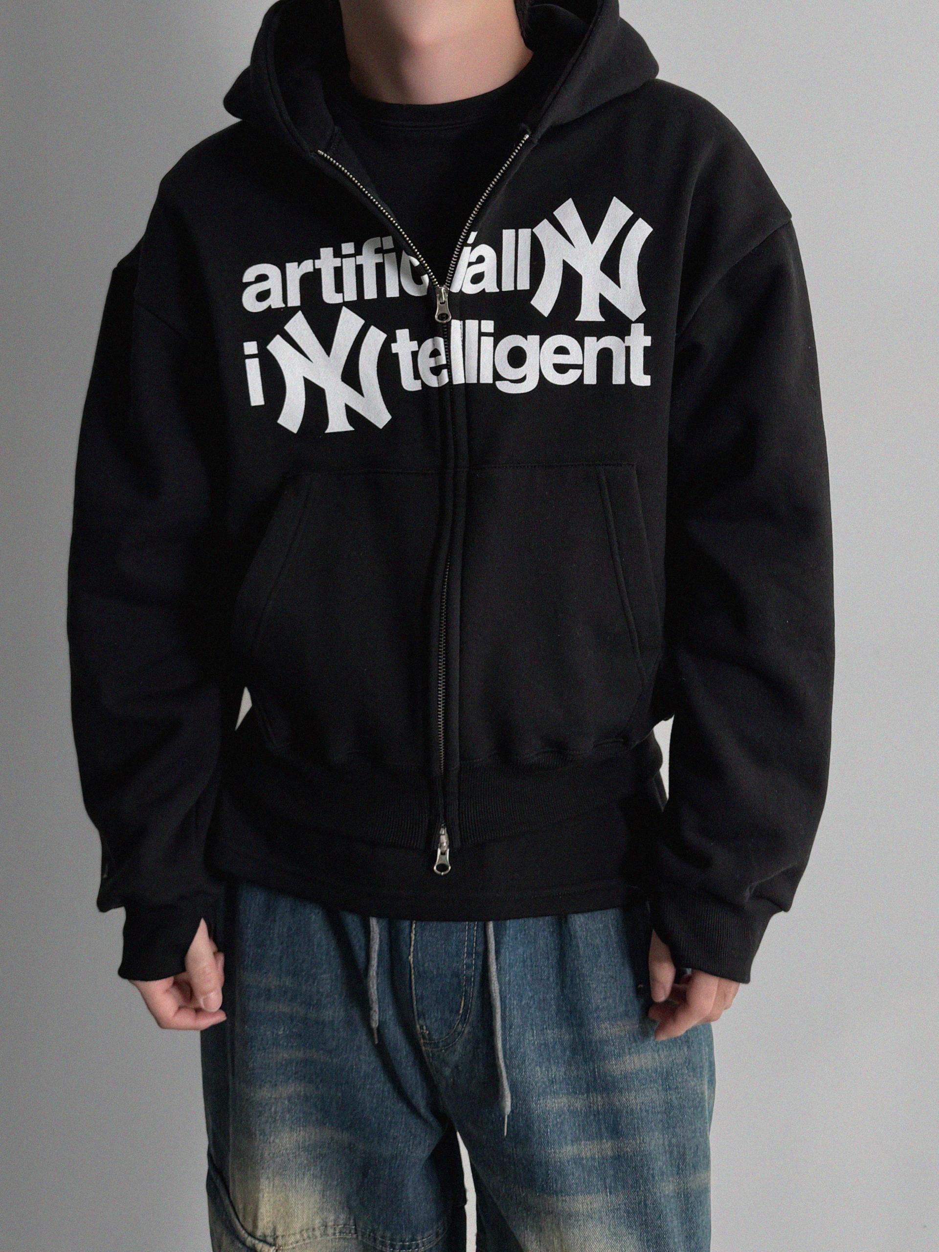 -전면 프린팅, 2way 지퍼, 핑거홀 디테일