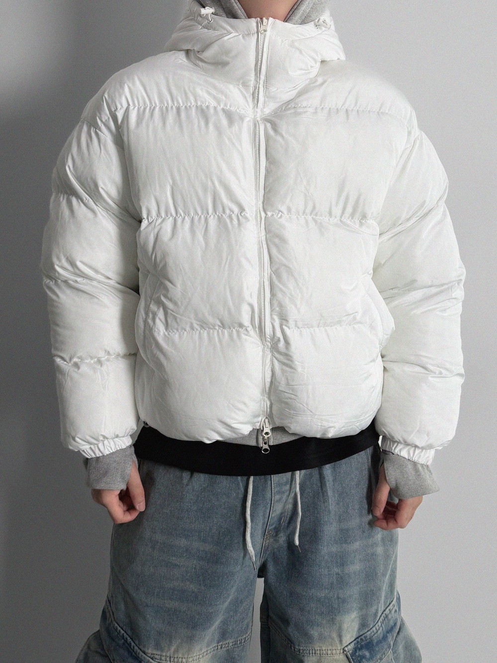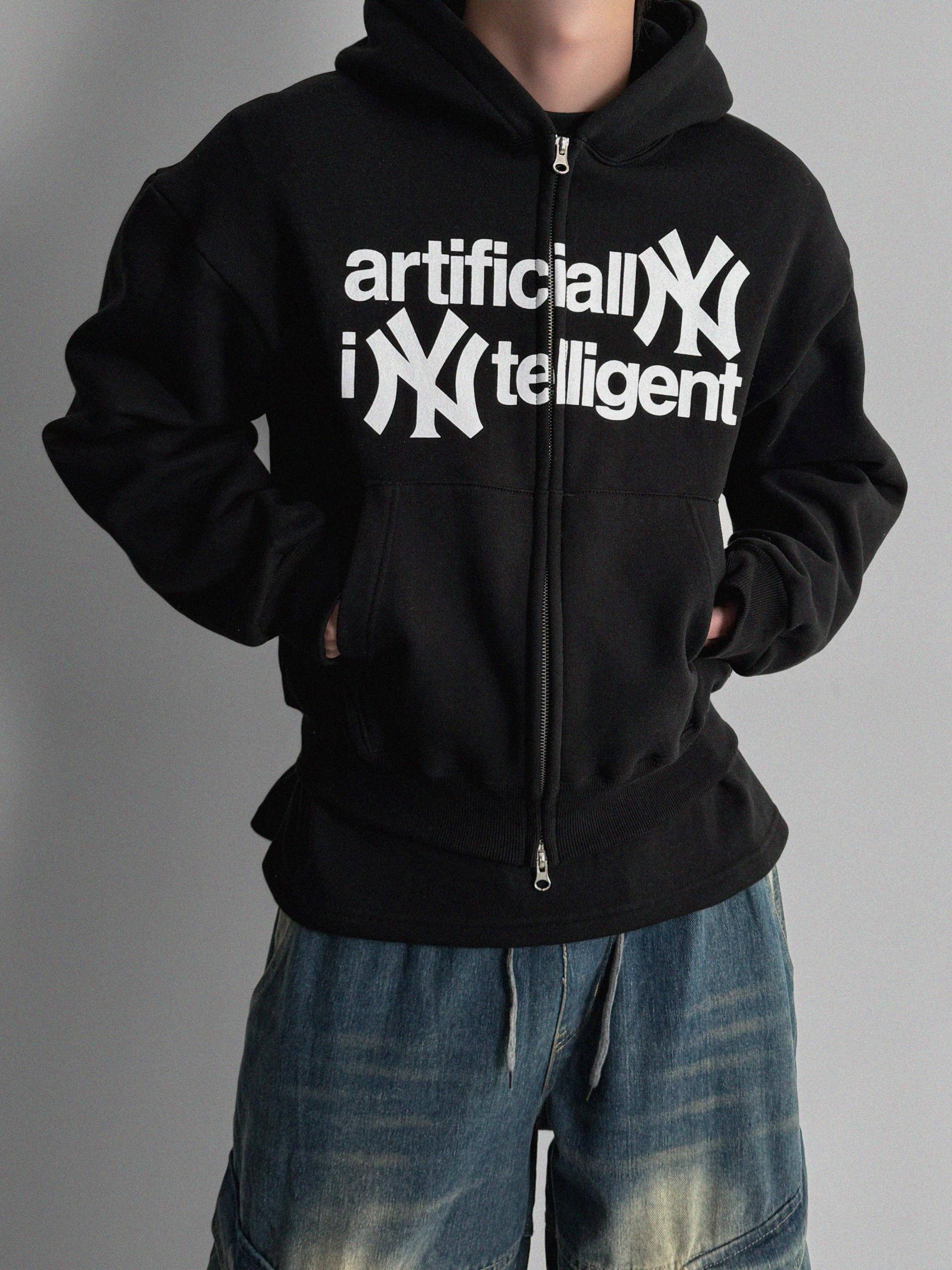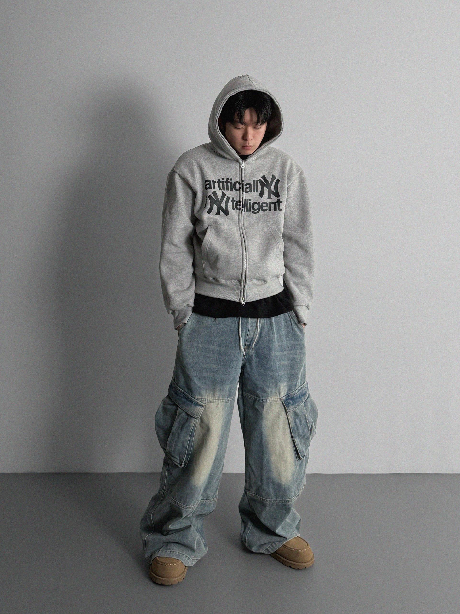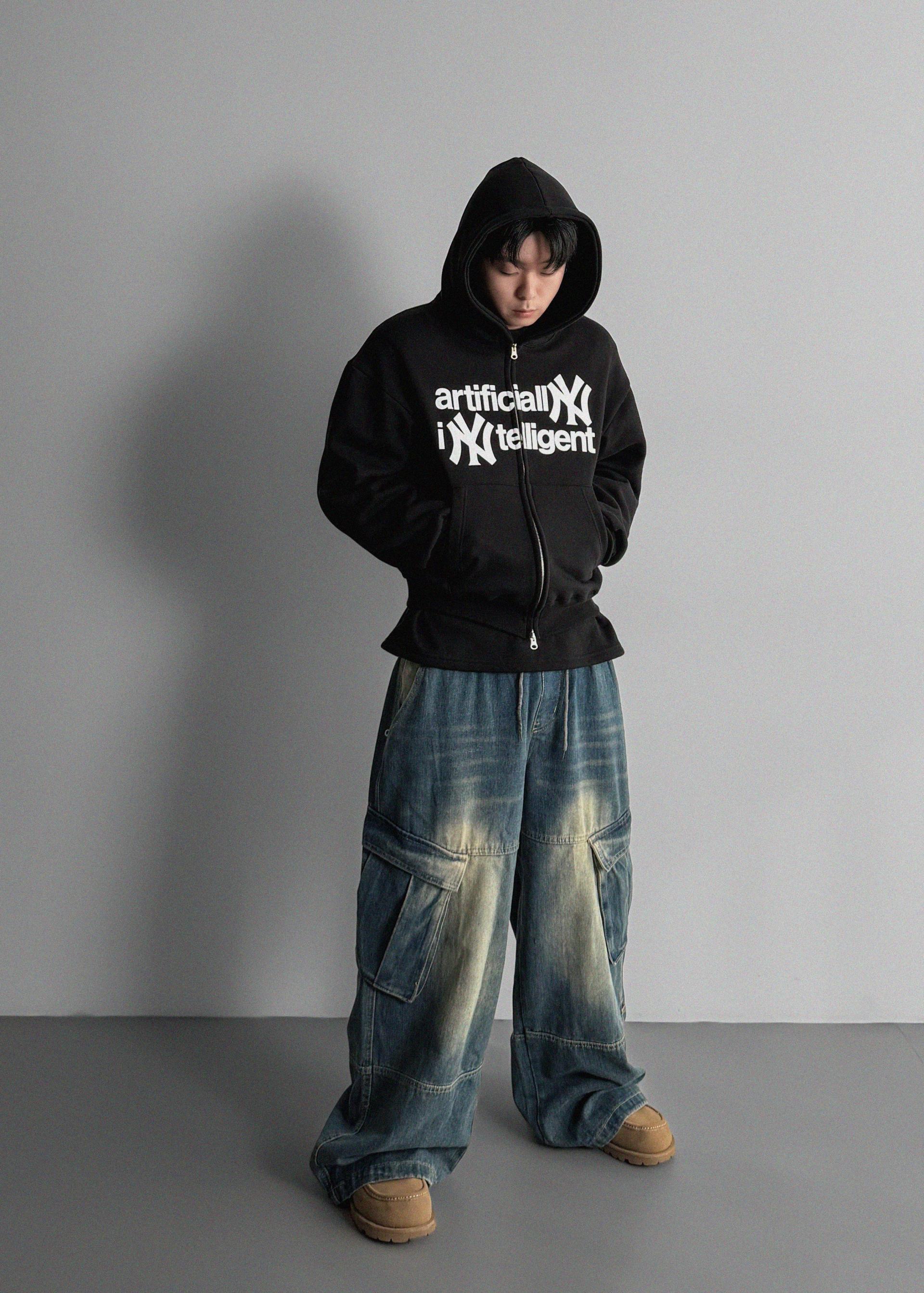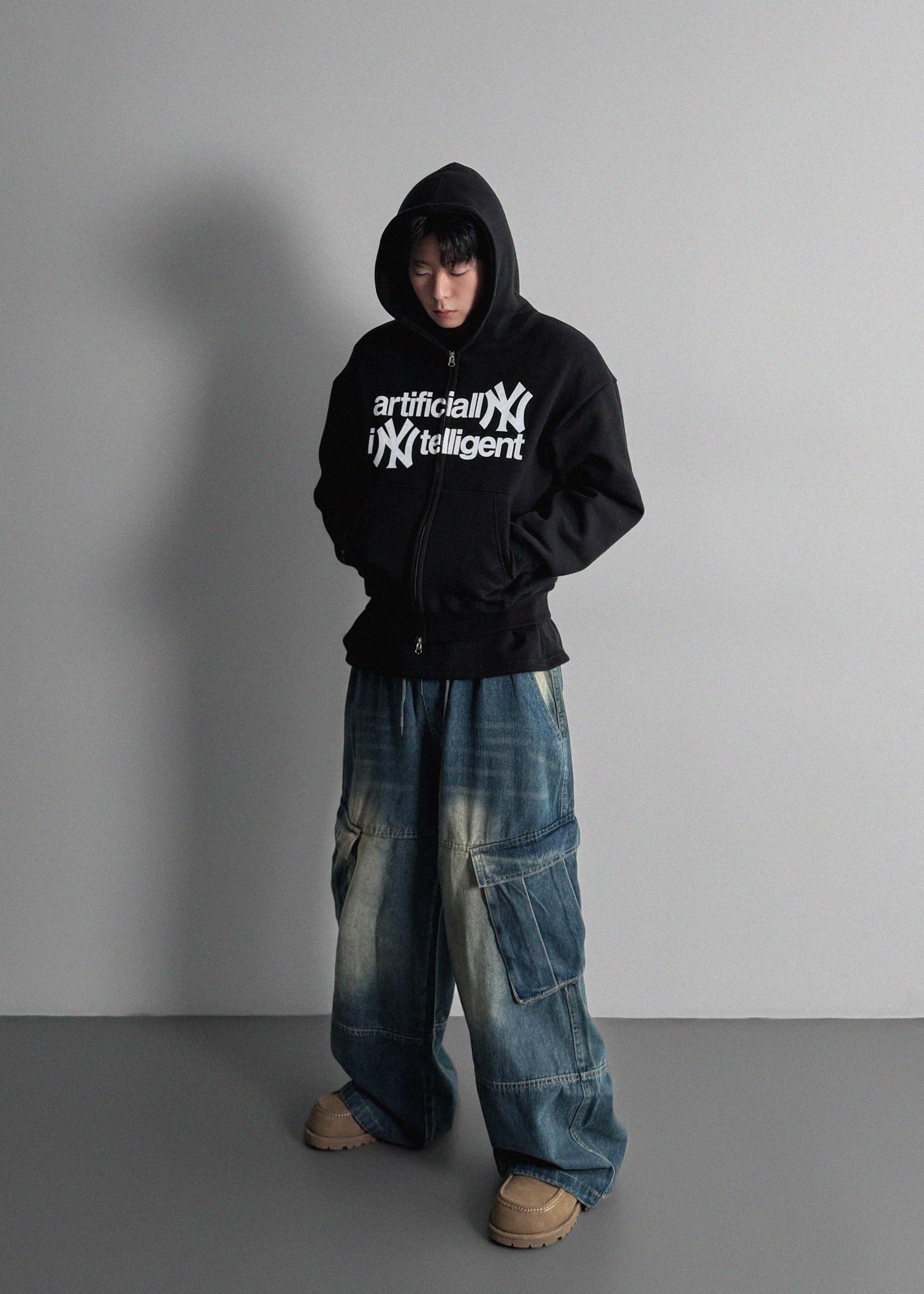 -전면 프린팅, 2way 지퍼, 핑거홀 디테일