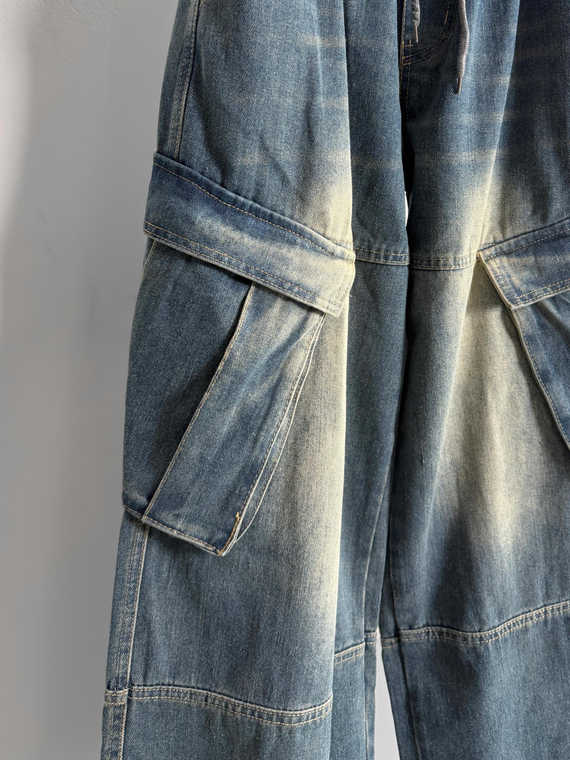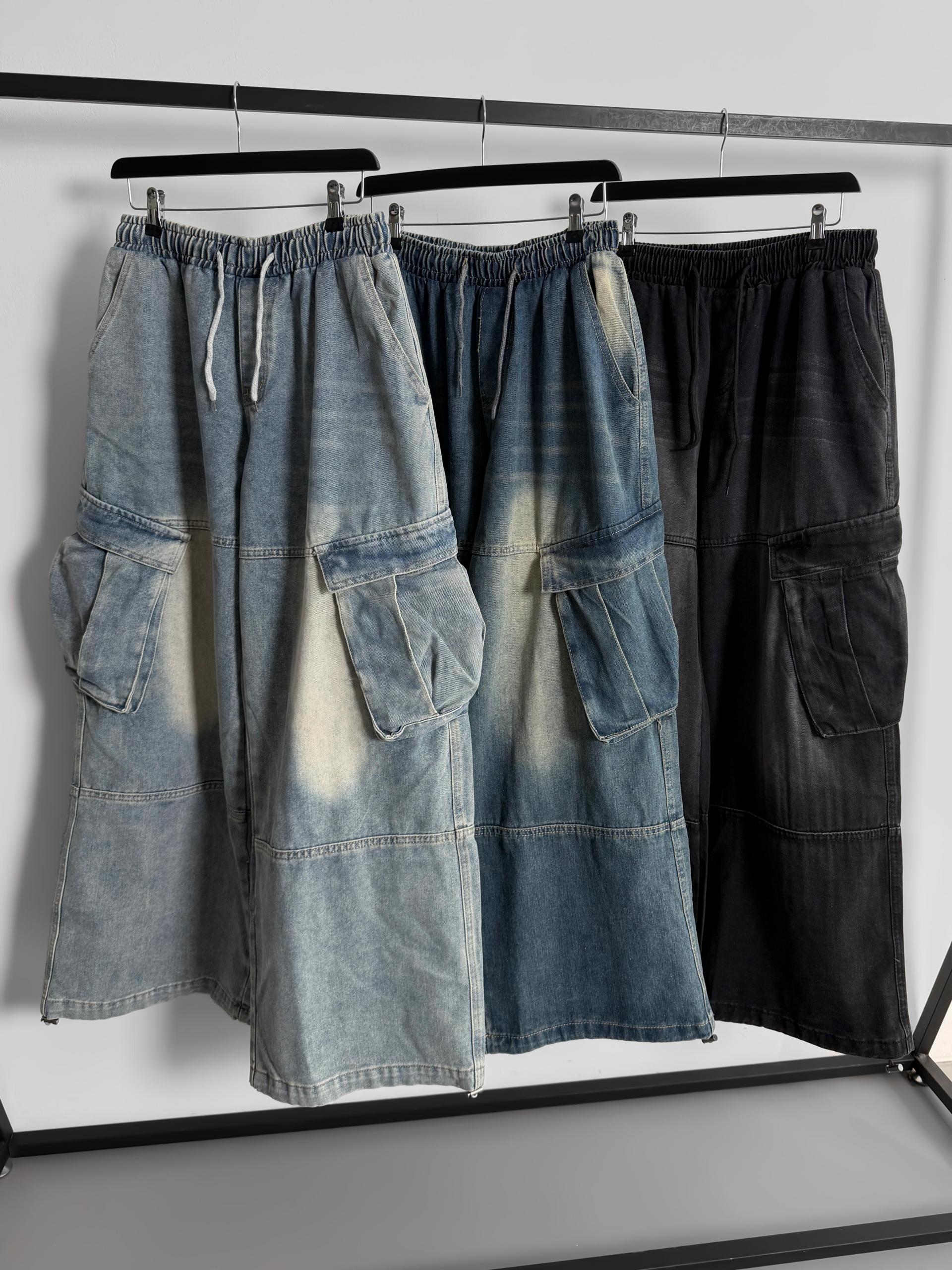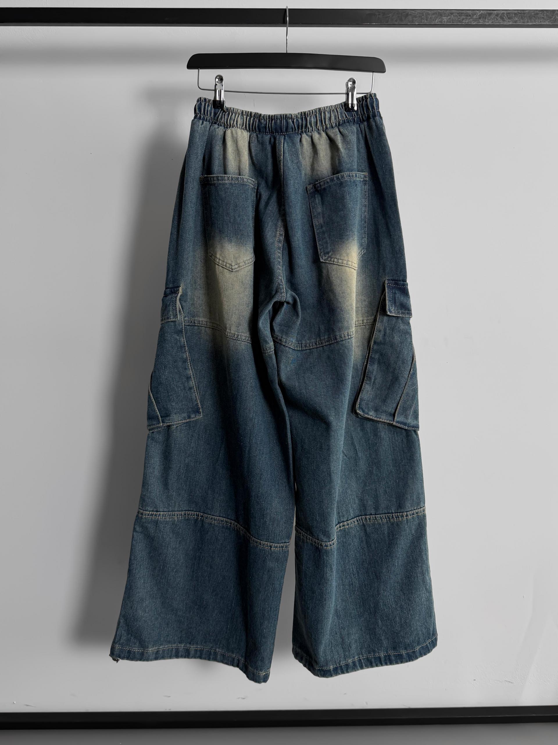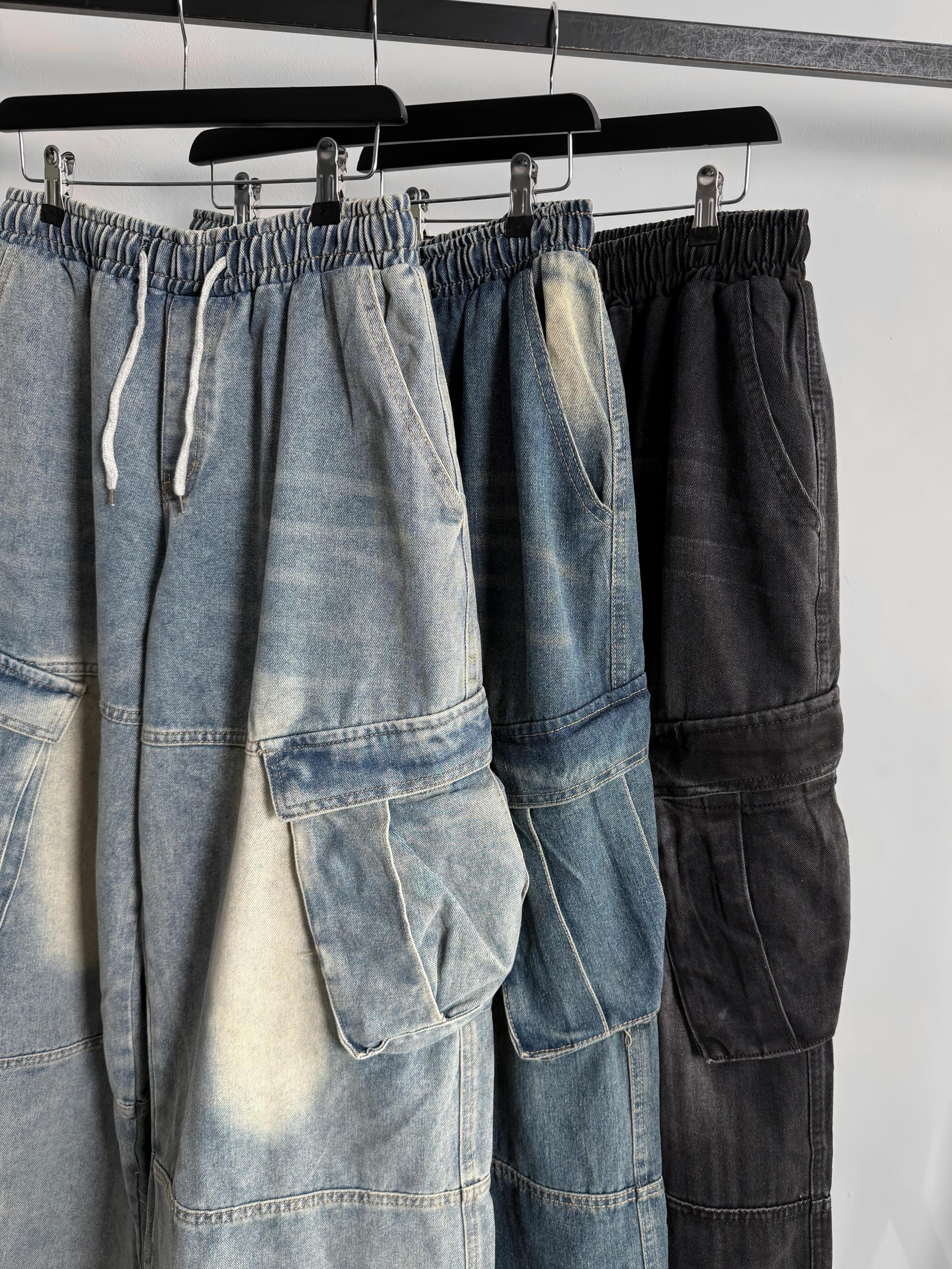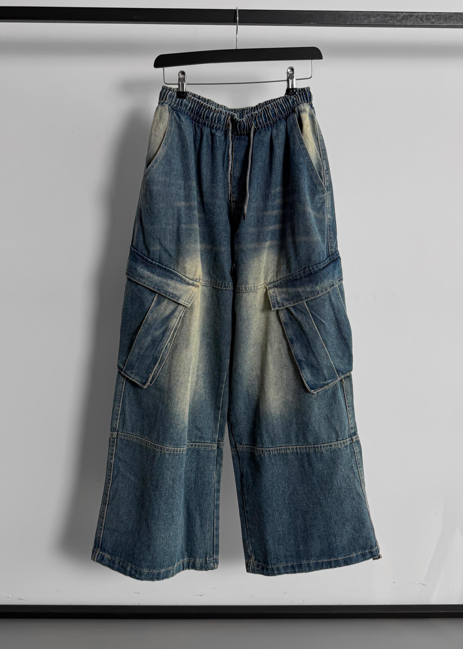 밴딩 와이드 데님 카고 팬츠