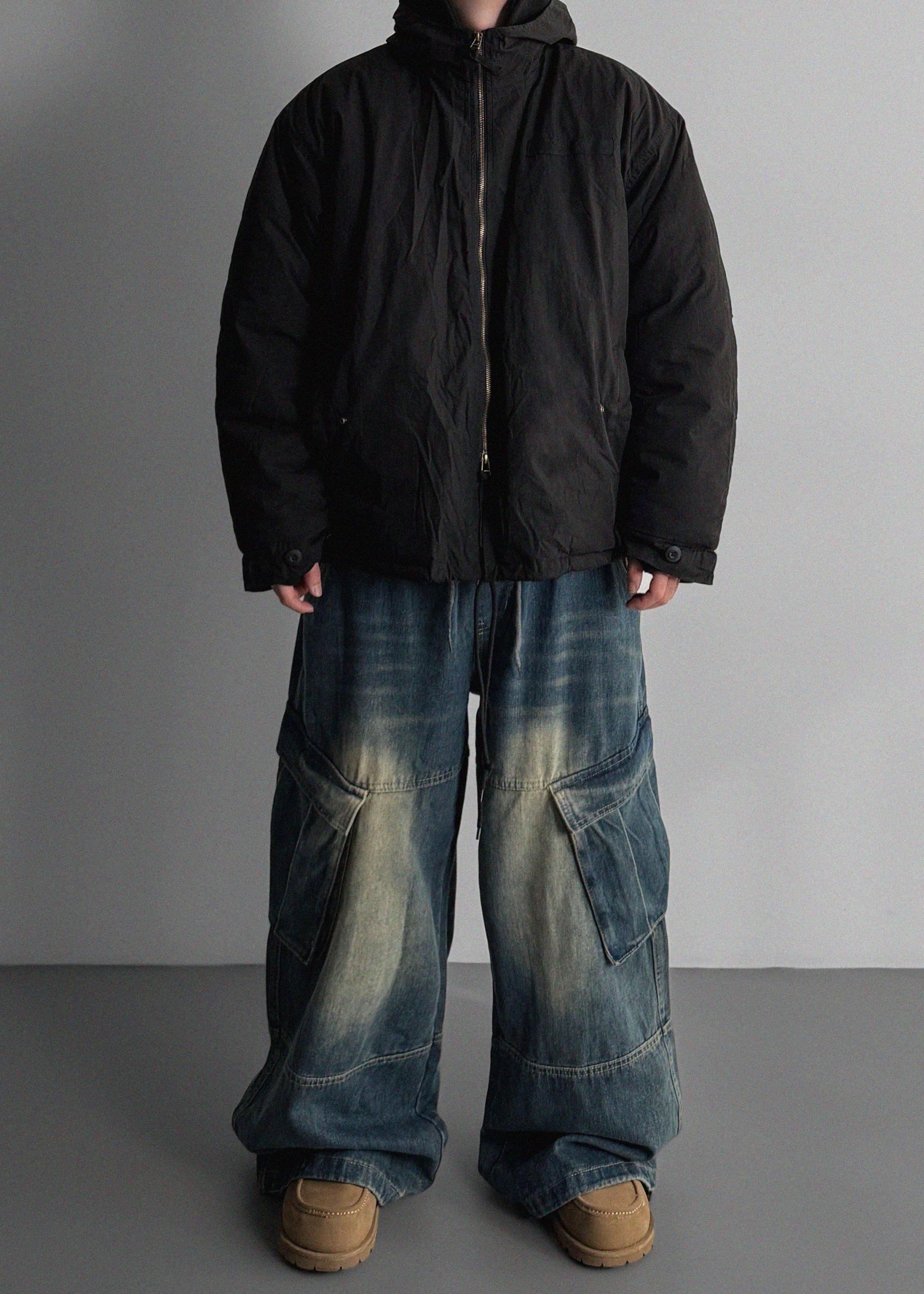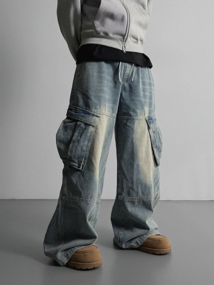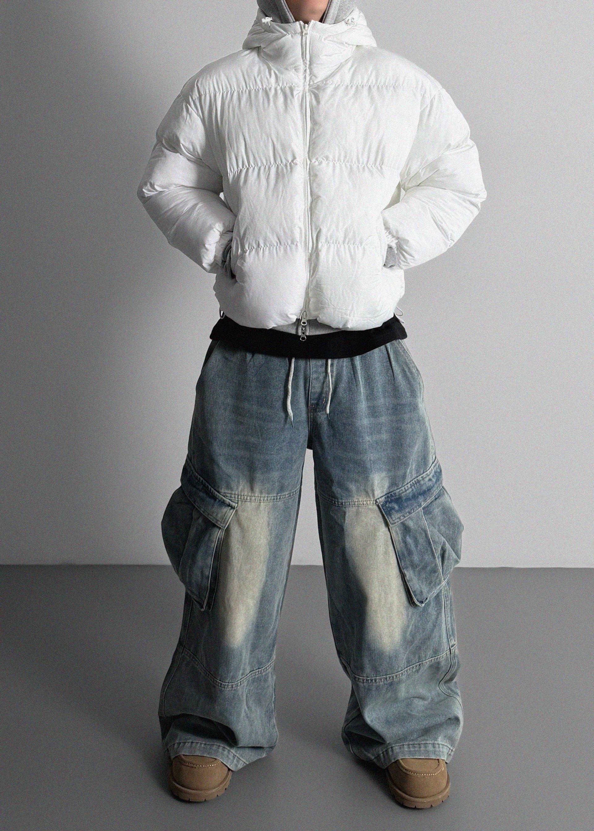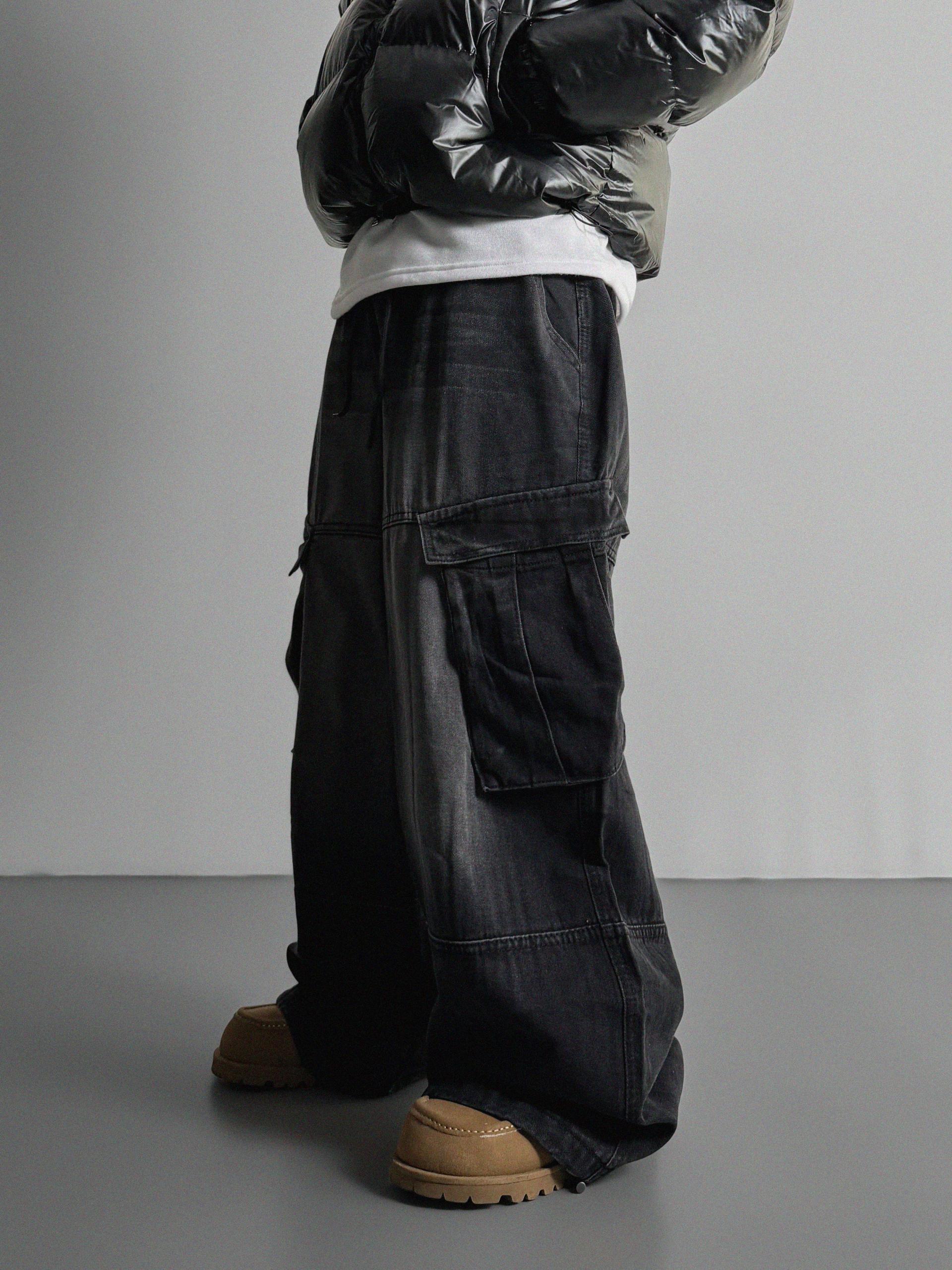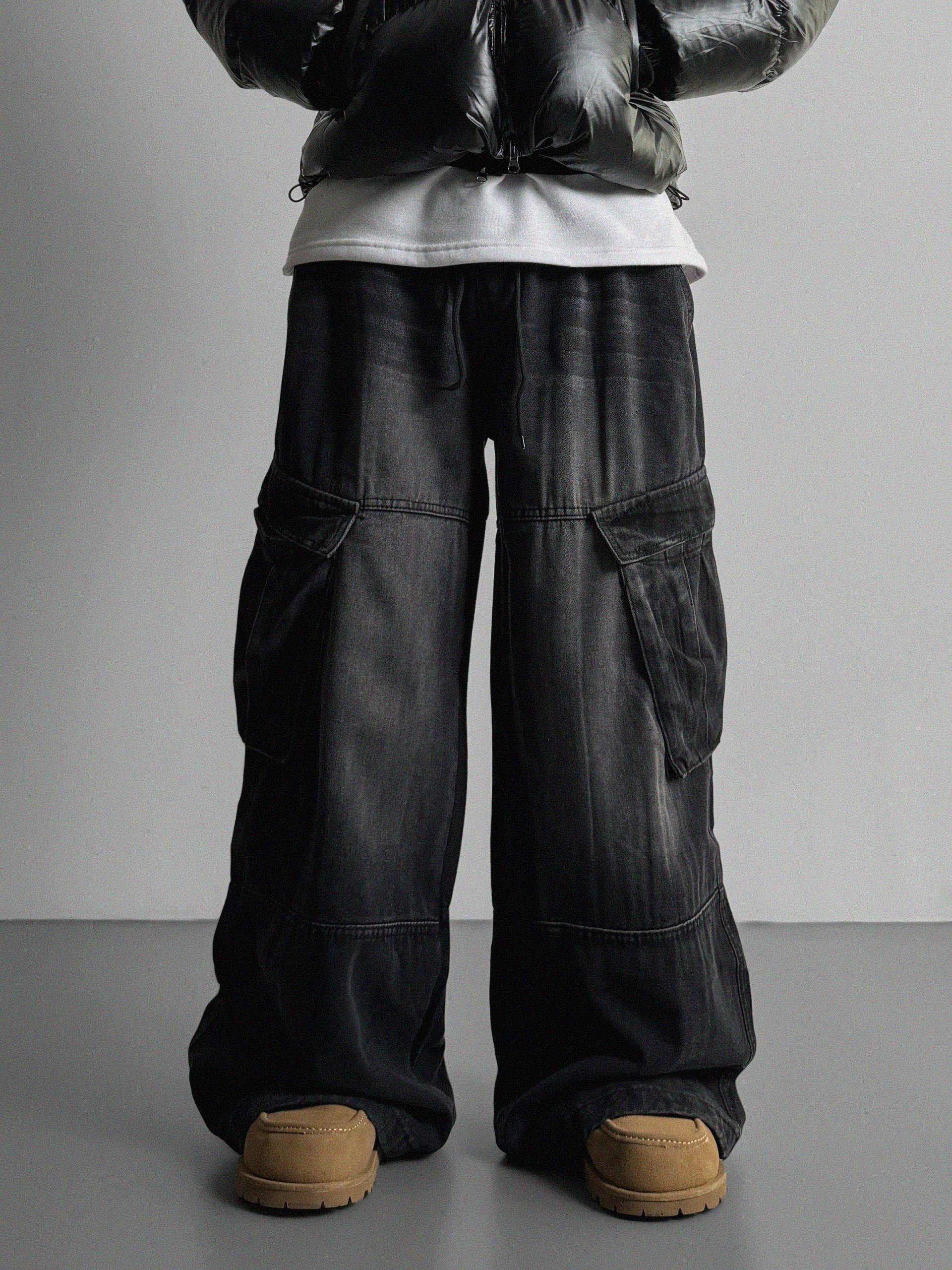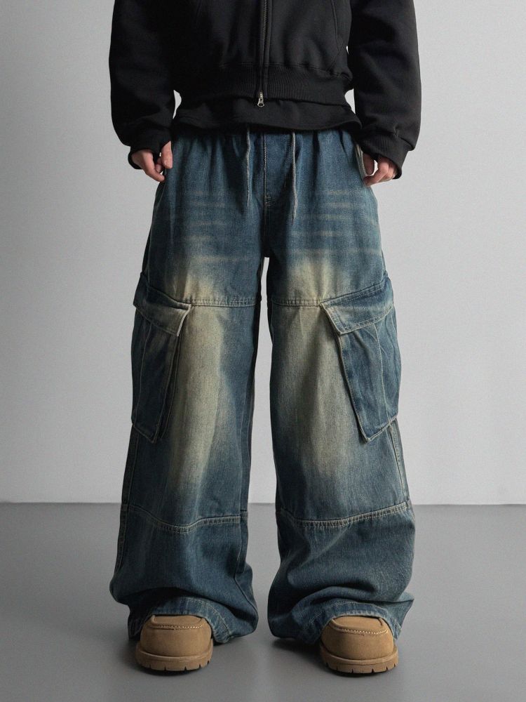 밴딩 와이드 데님 카고 팬츠