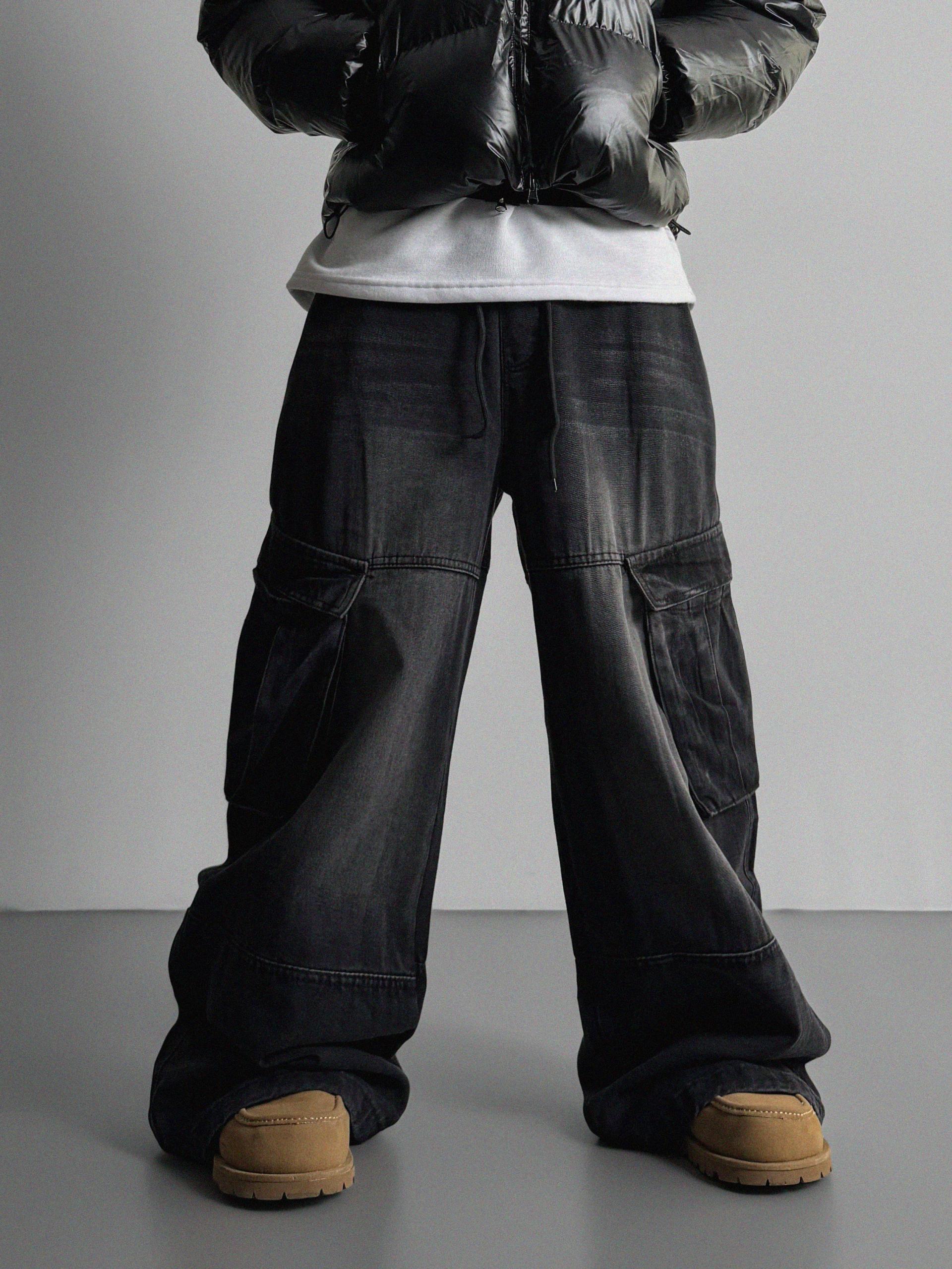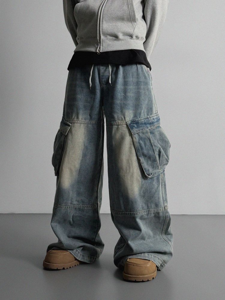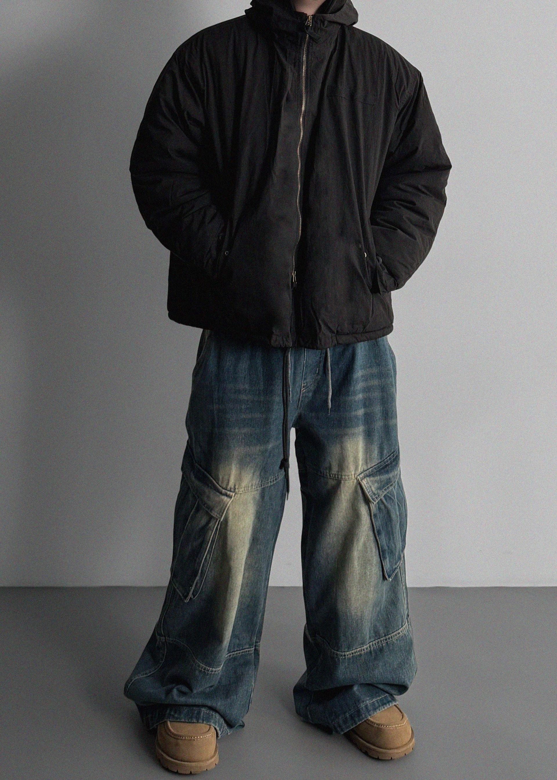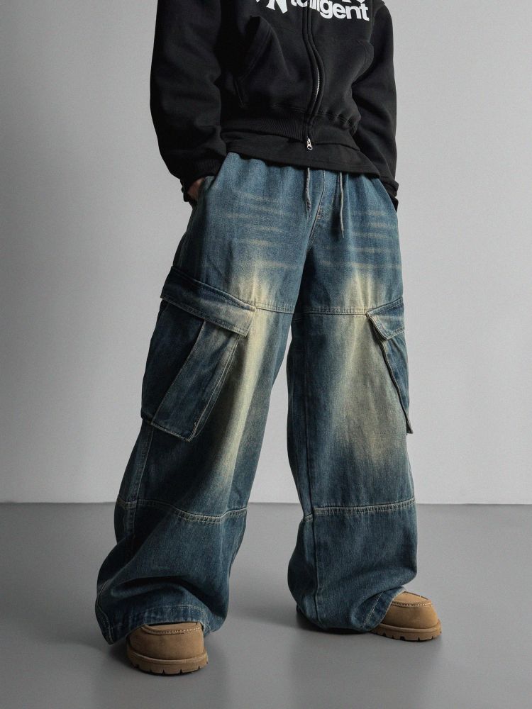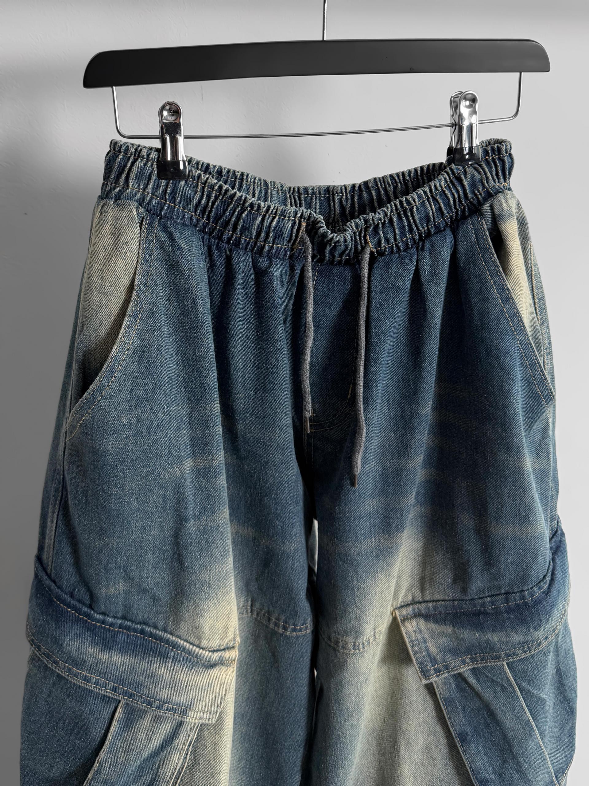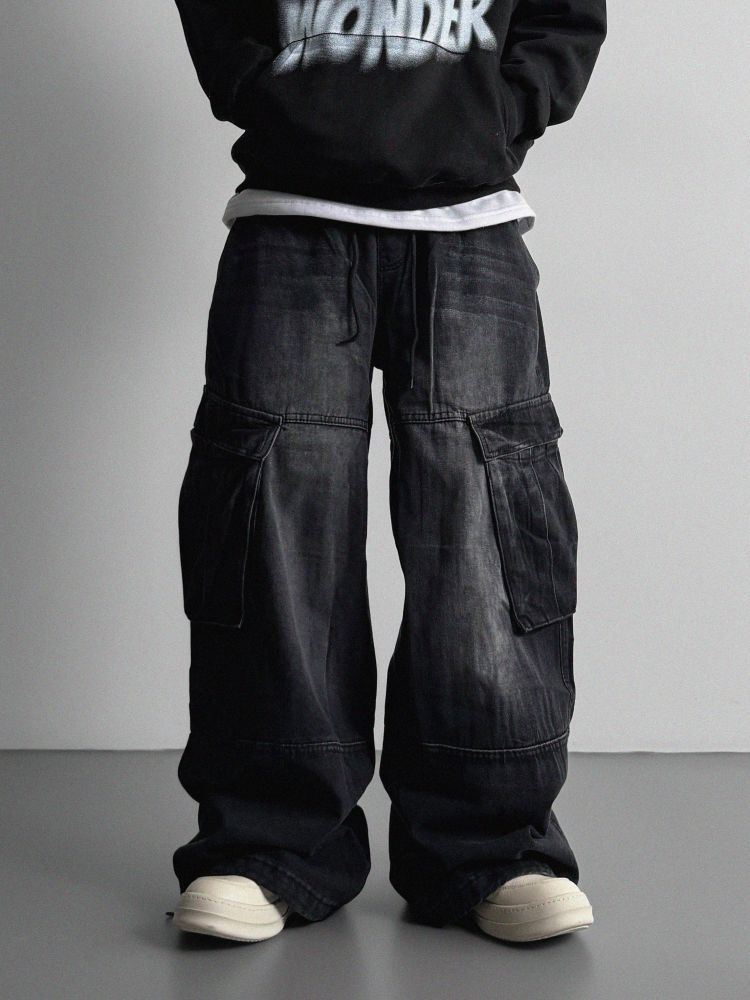 밴딩 와이드 데님 카고 팬츠