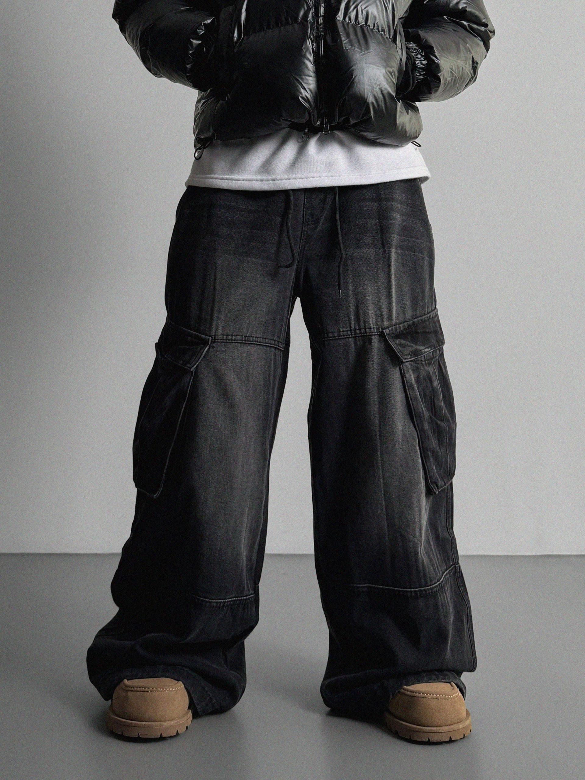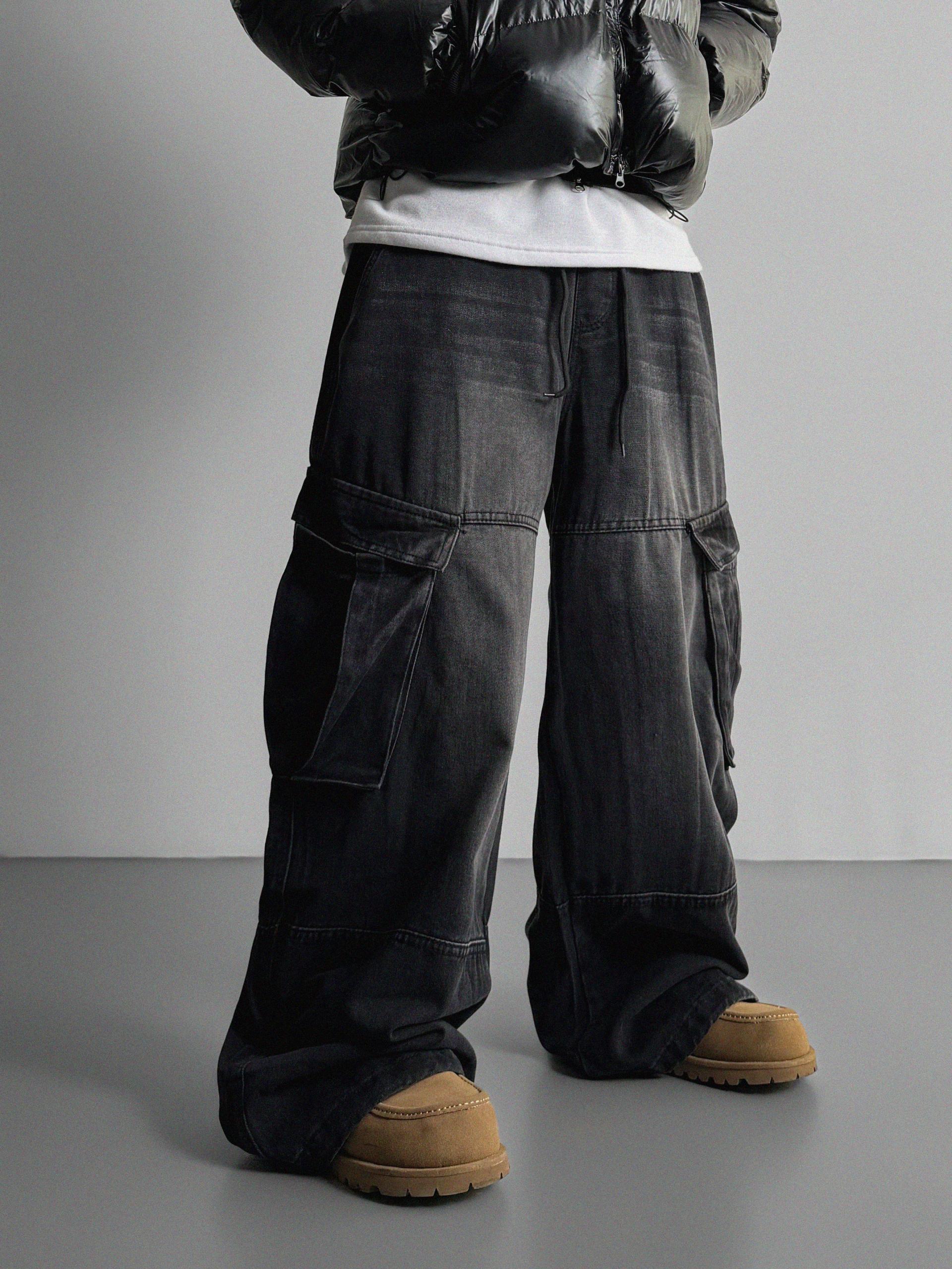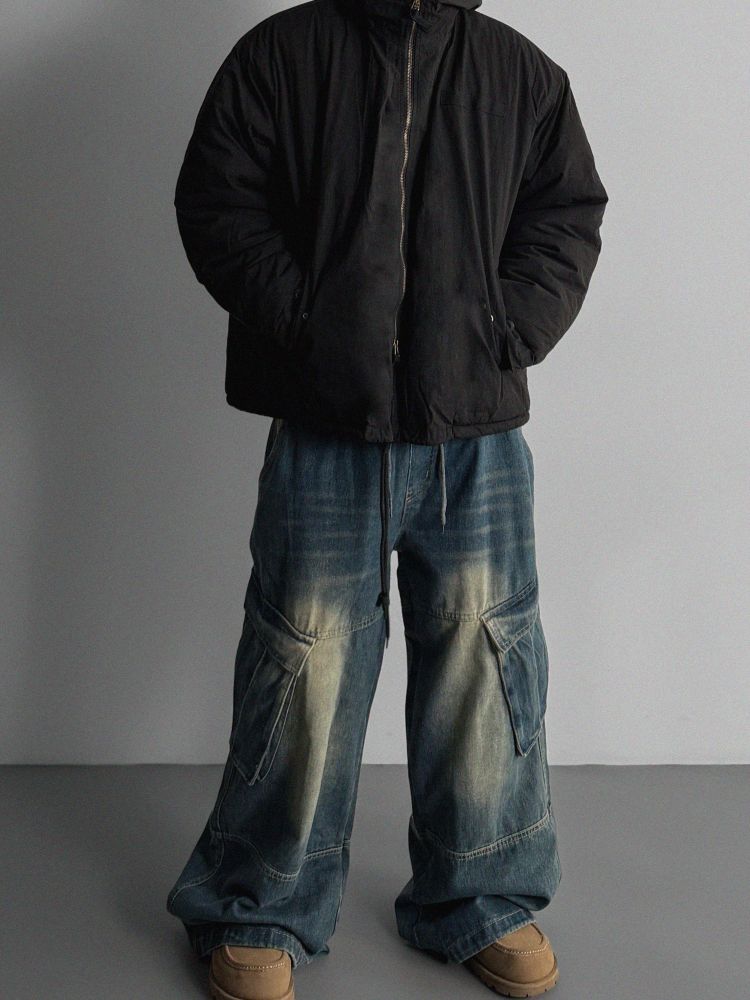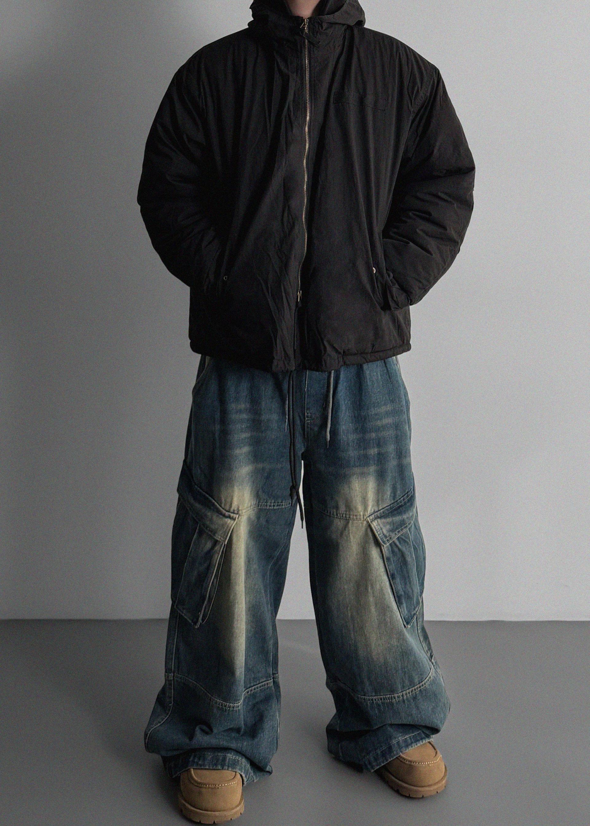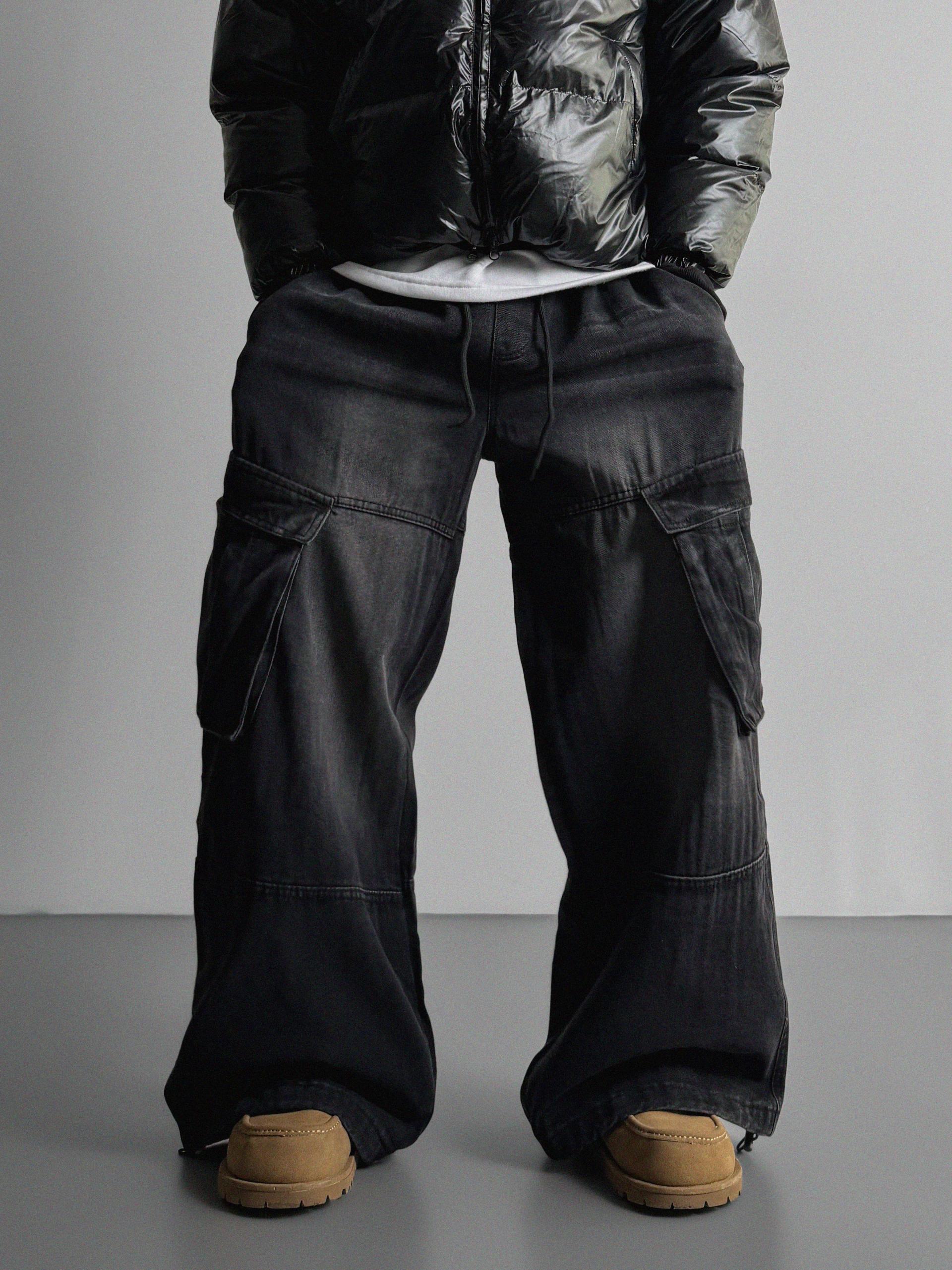 밴딩 와이드 데님 카고 팬츠