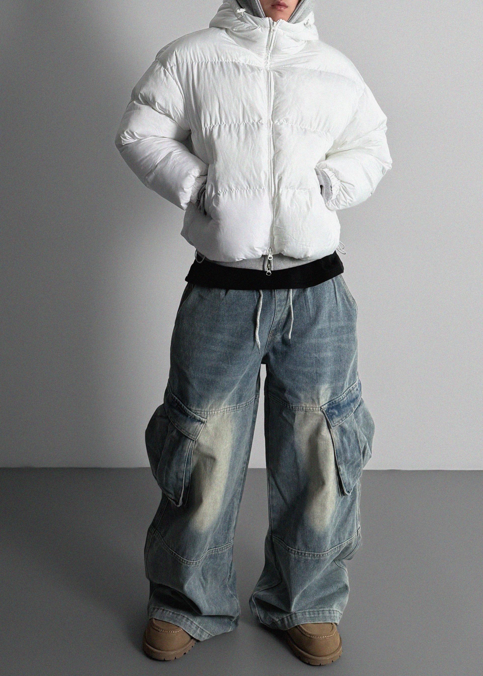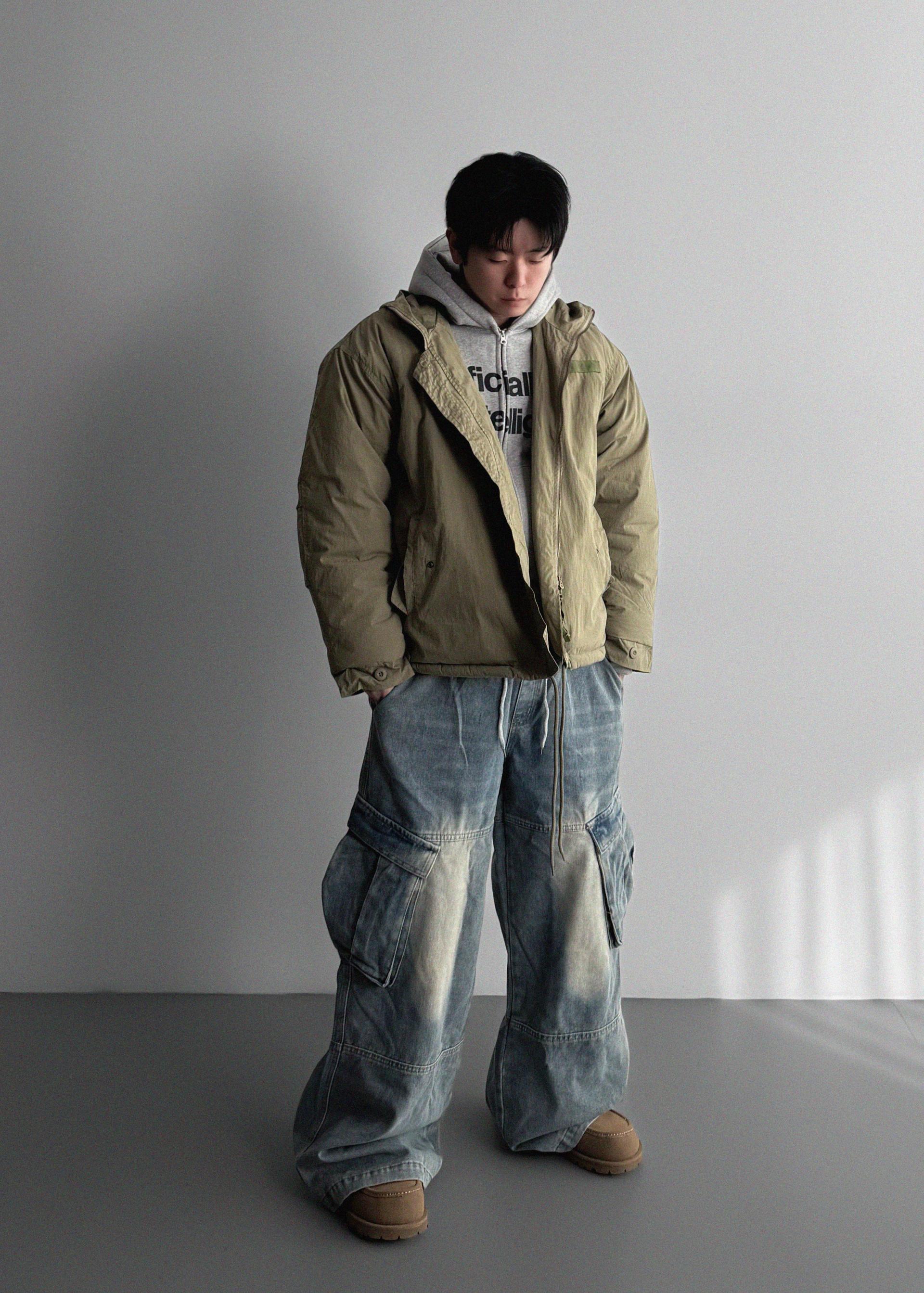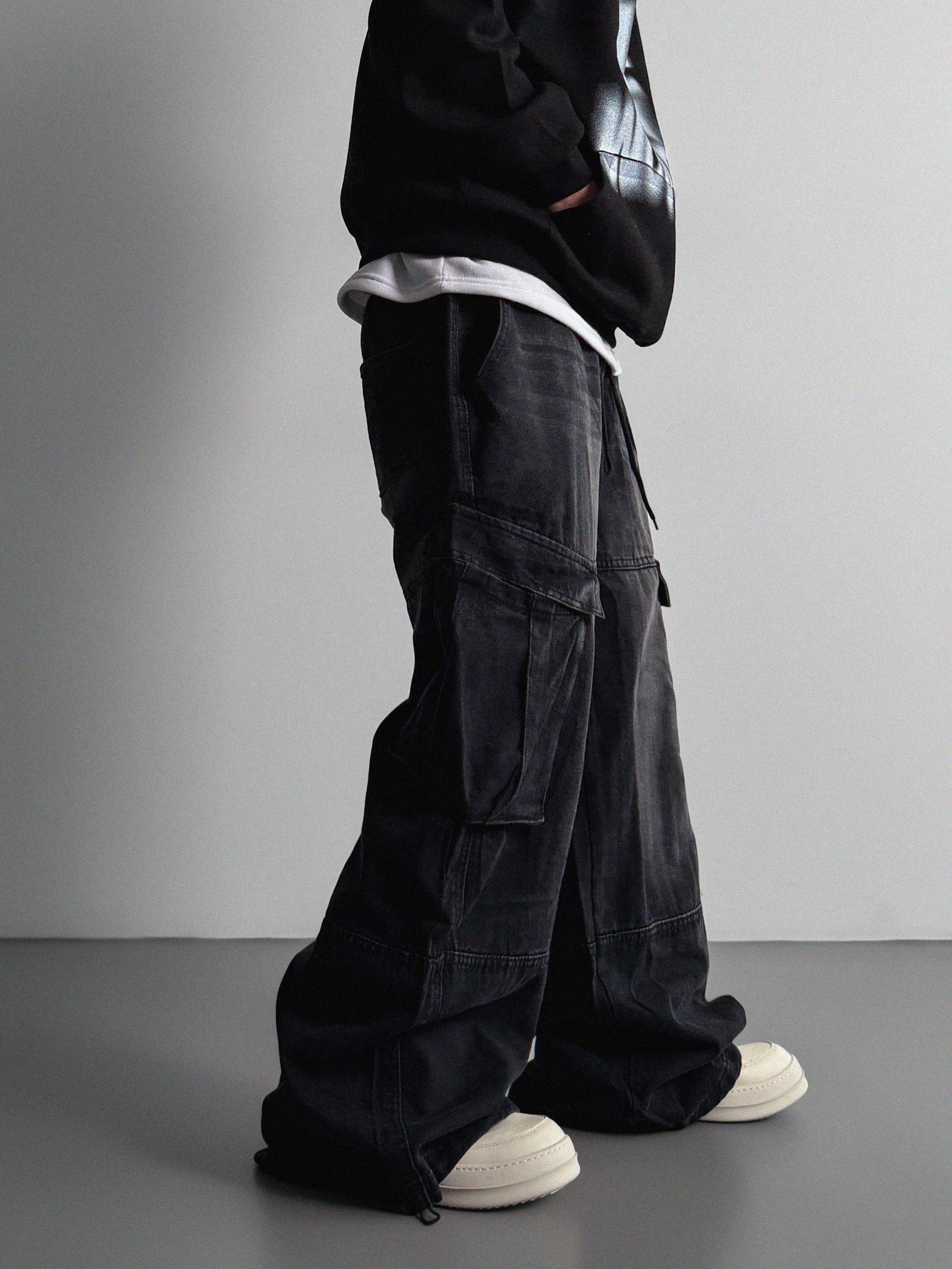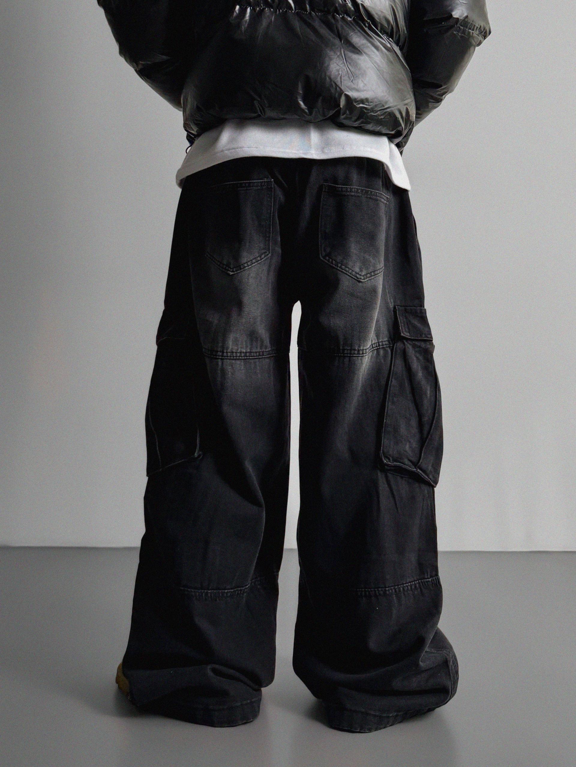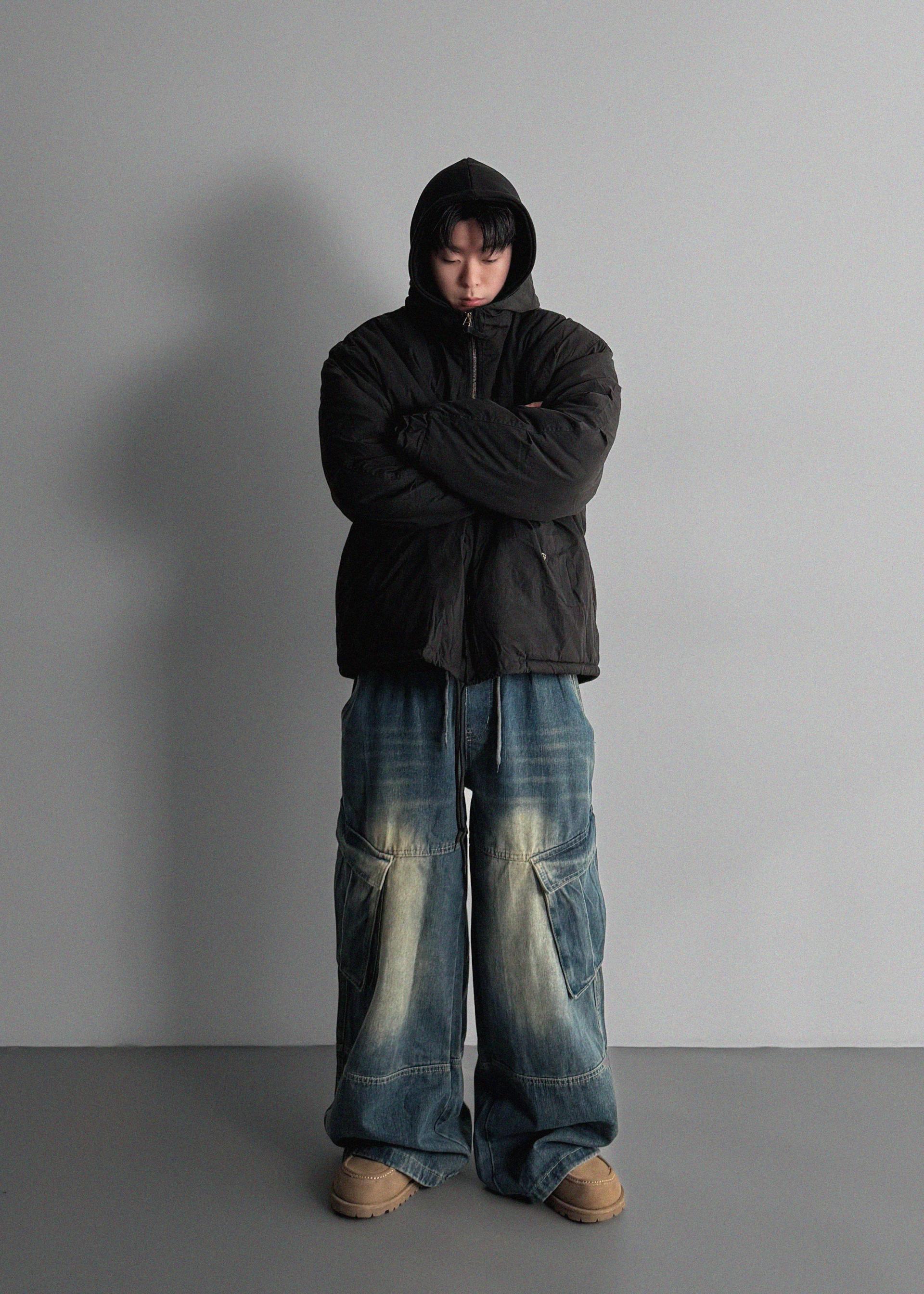 밴딩 와이드 데님 카고 팬츠