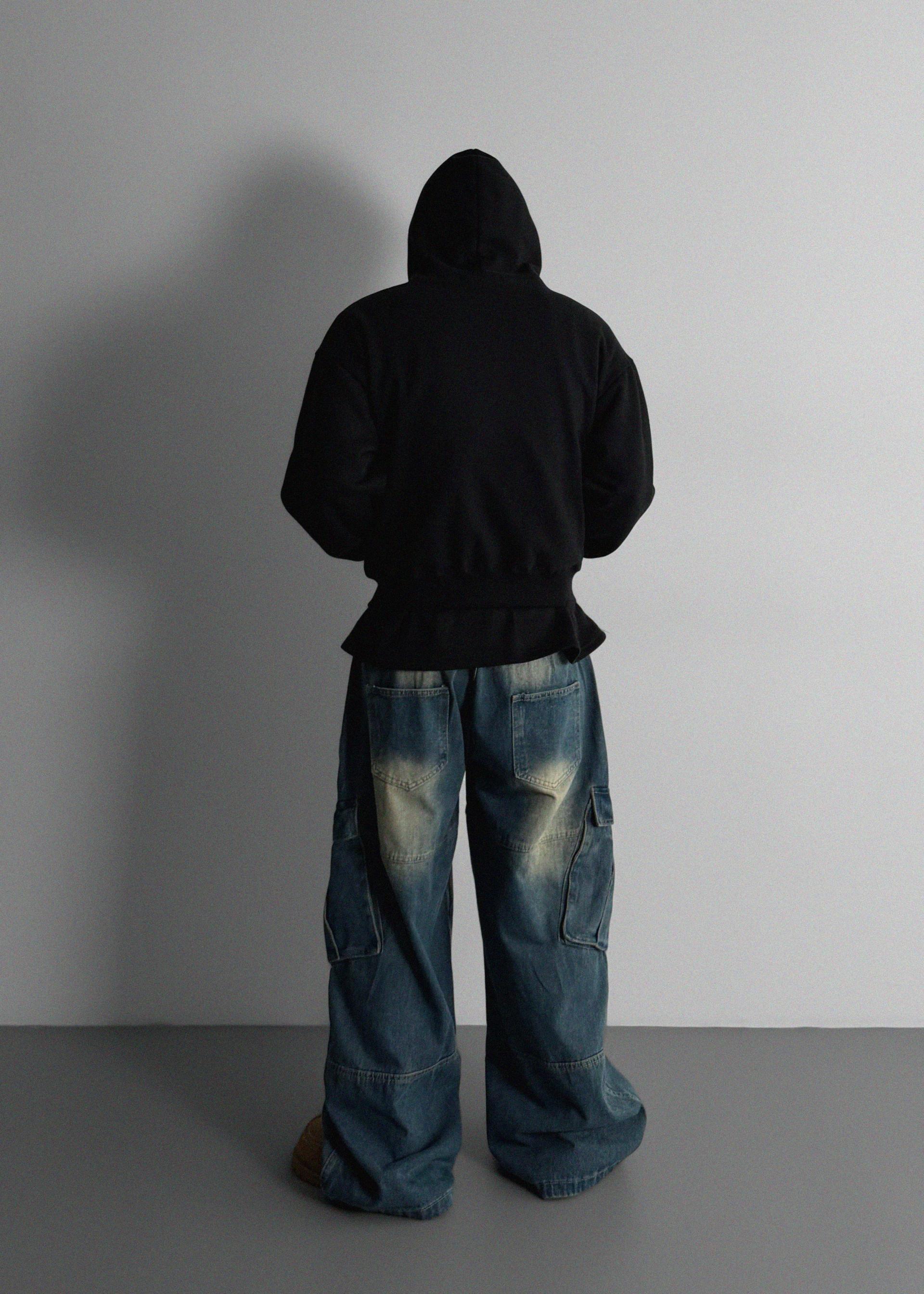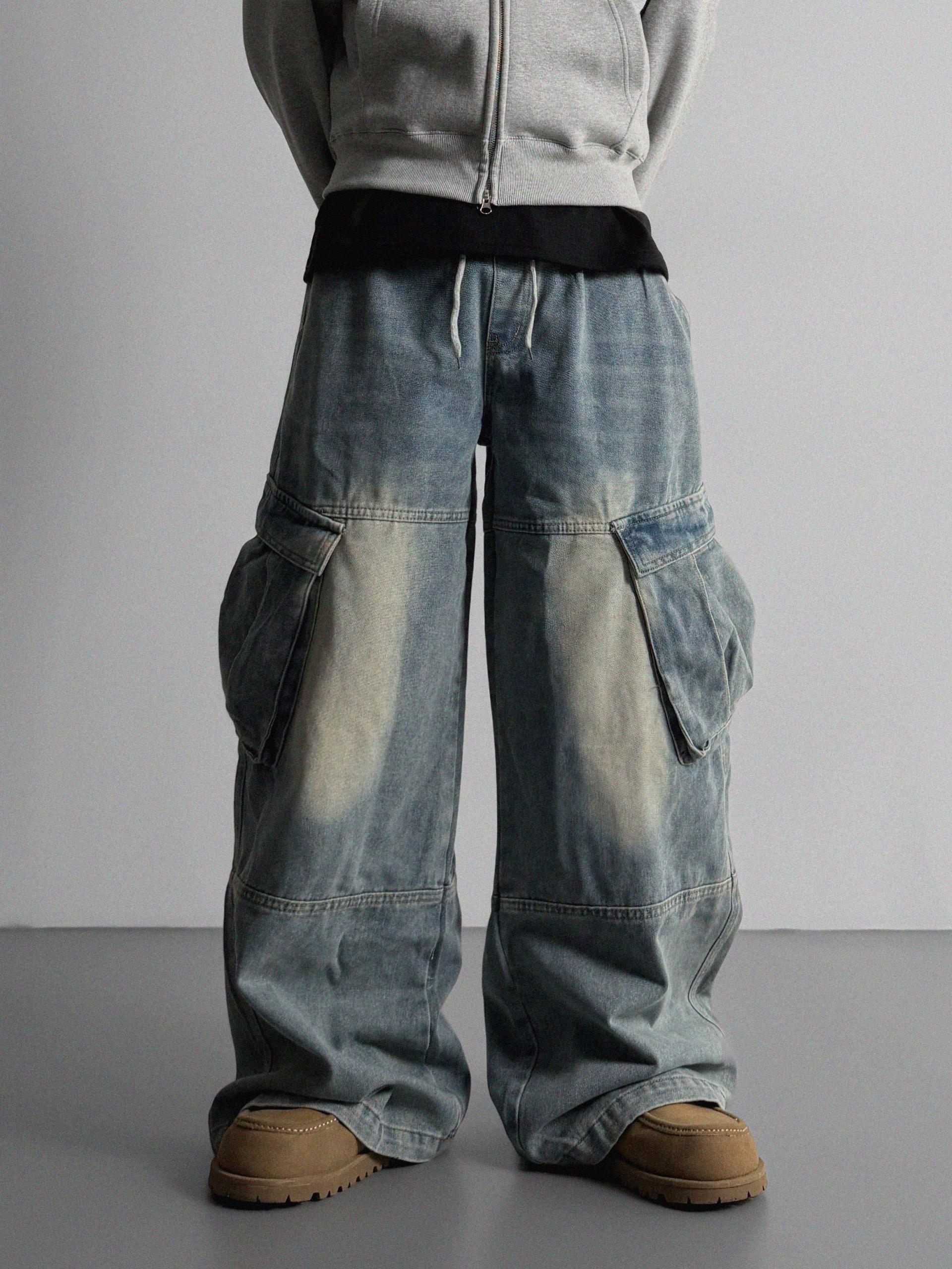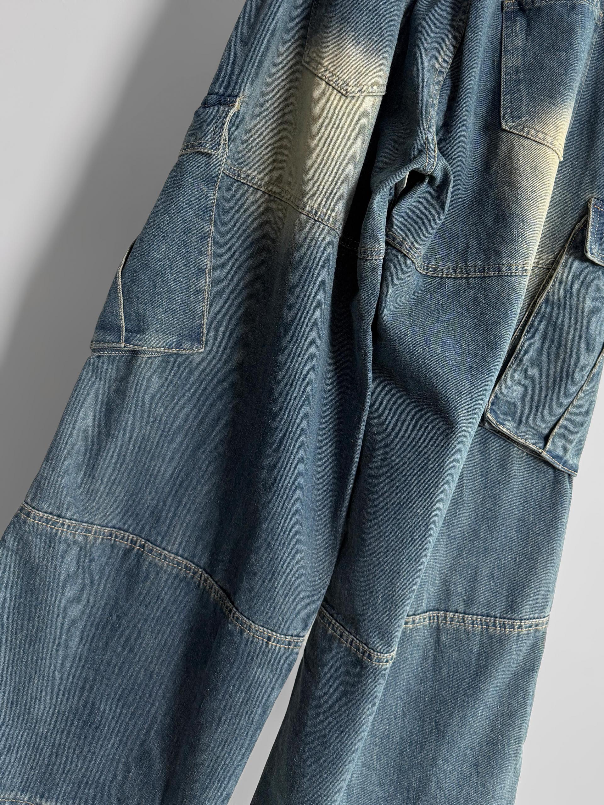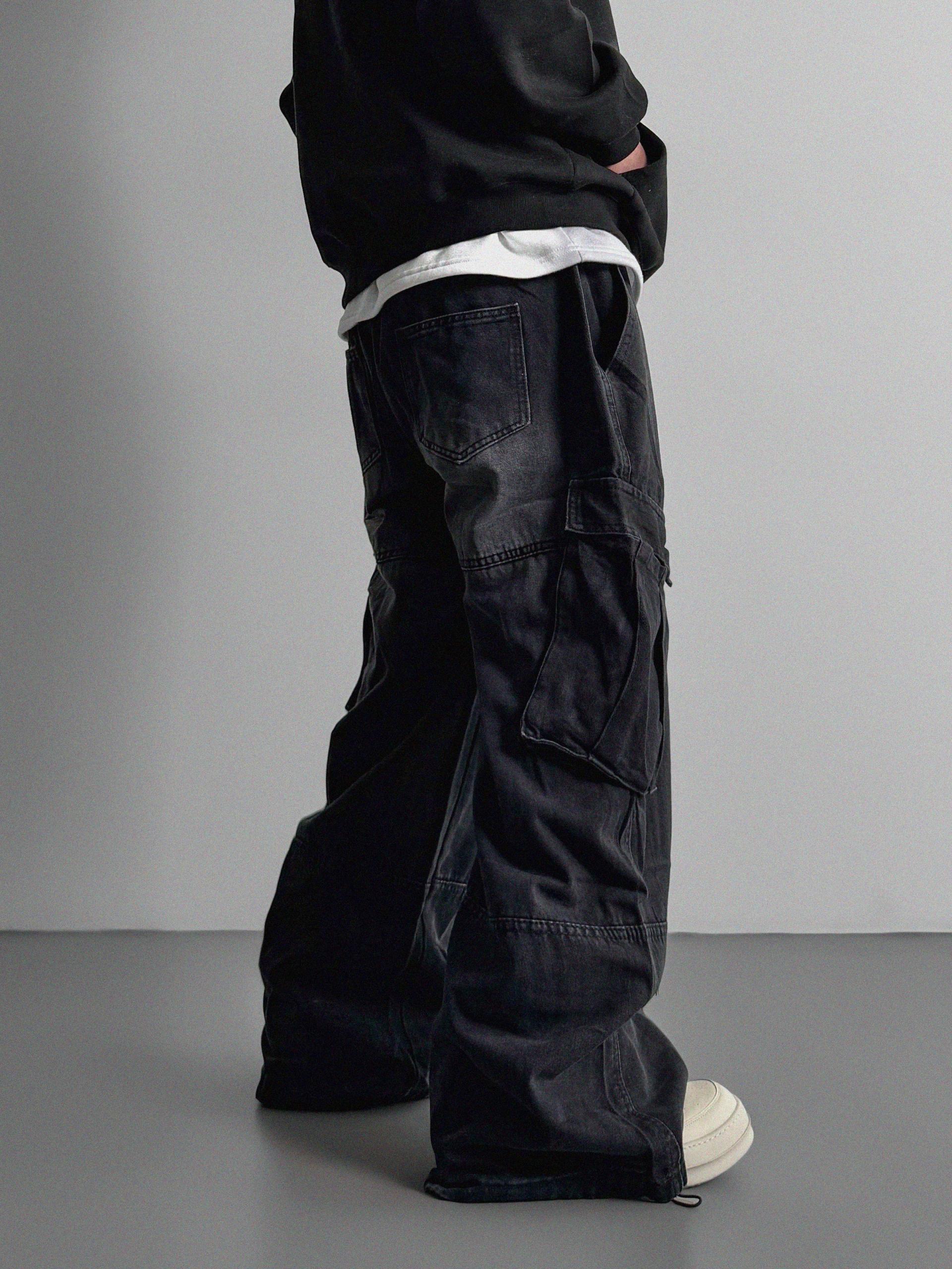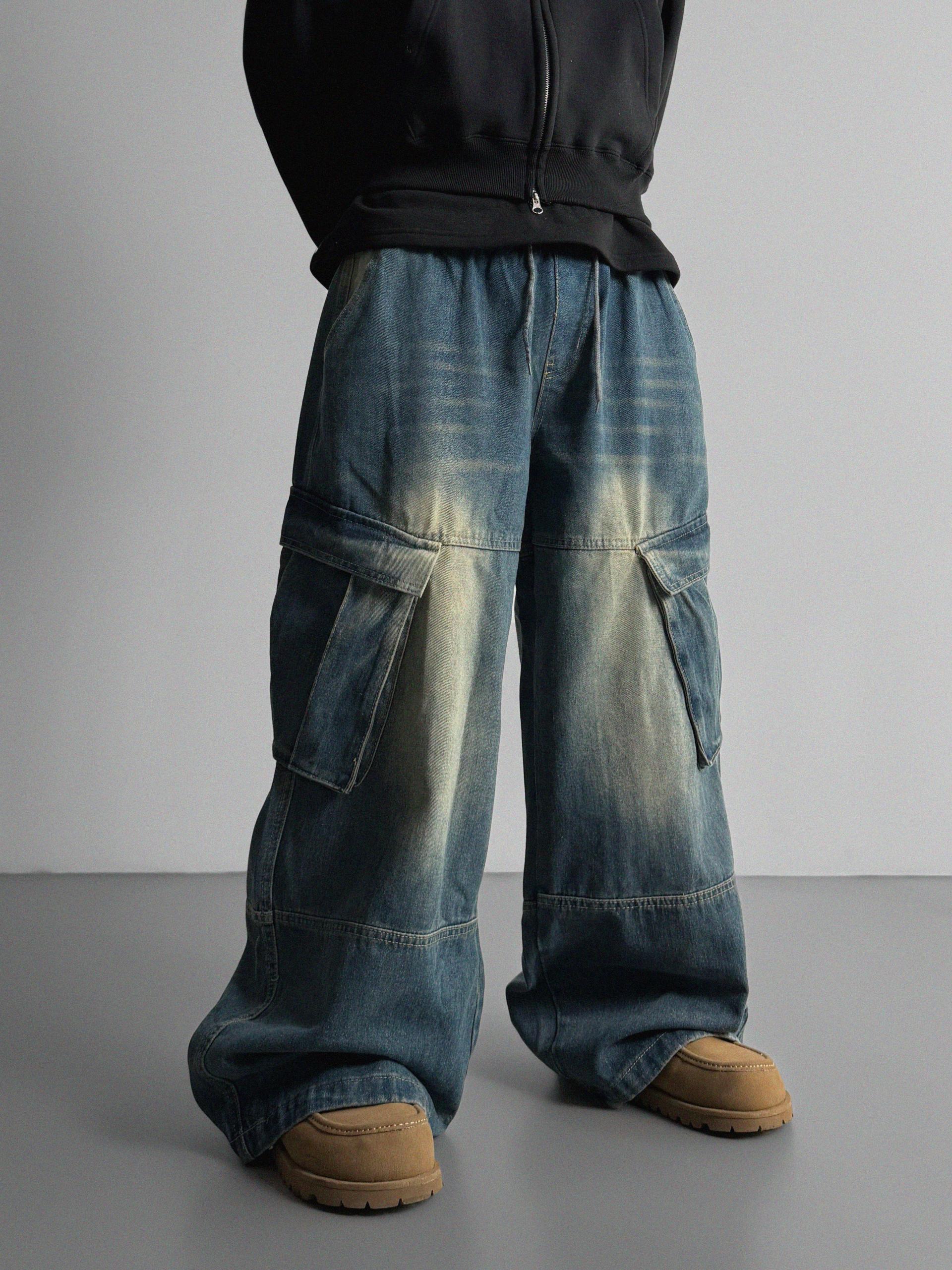 밴딩 와이드 데님 카고 팬츠