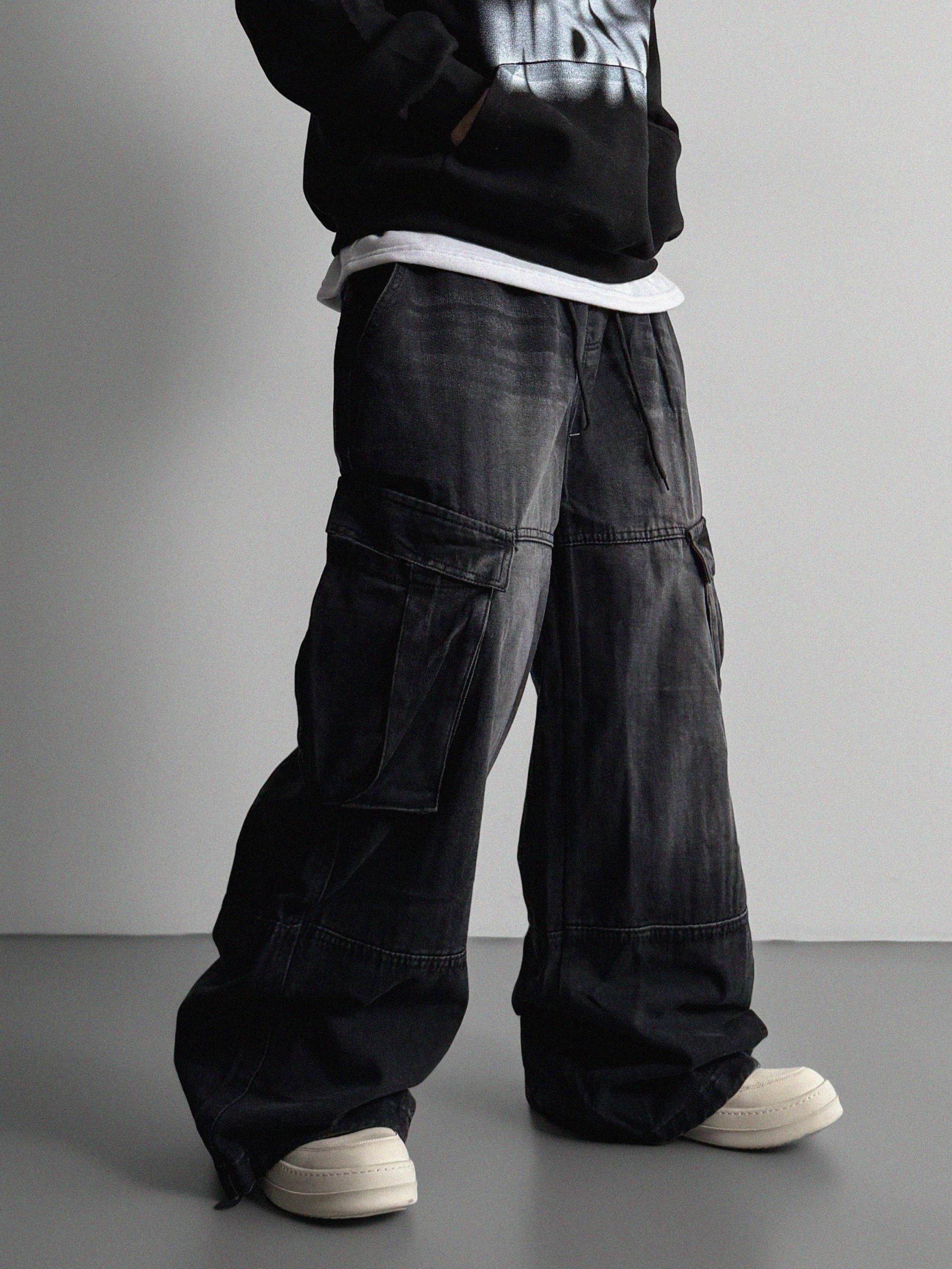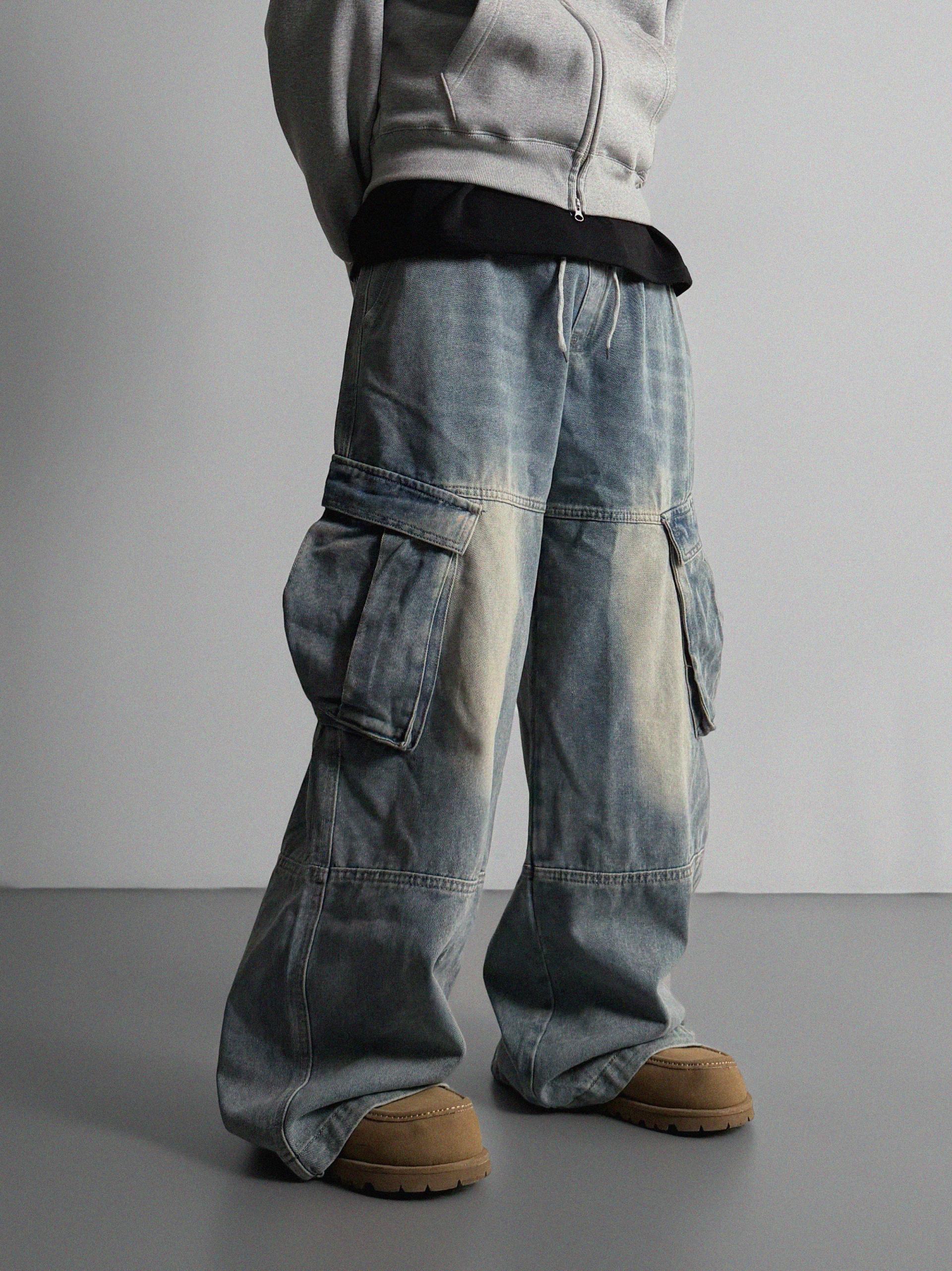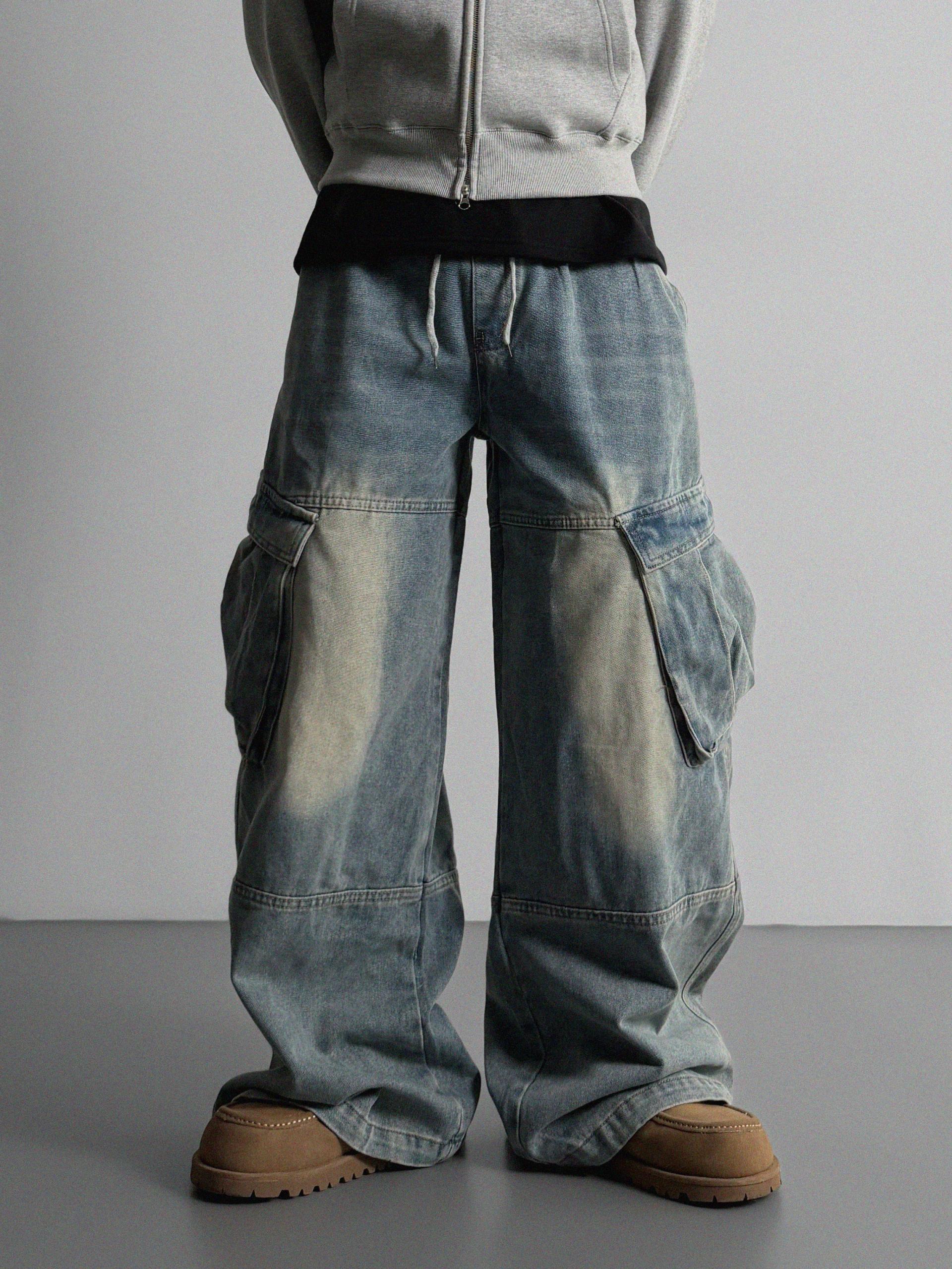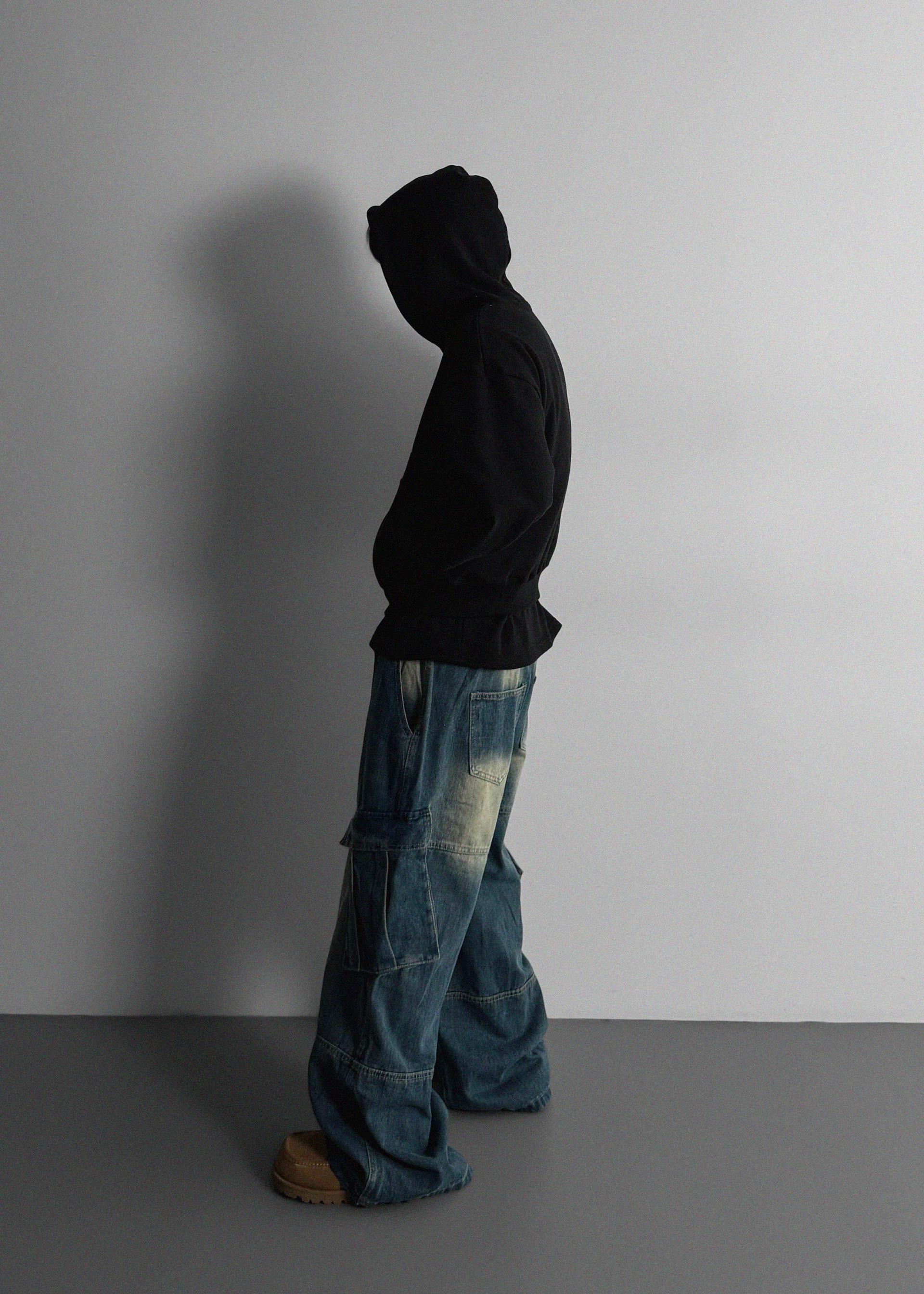 밴딩 와이드 데님 카고 팬츠