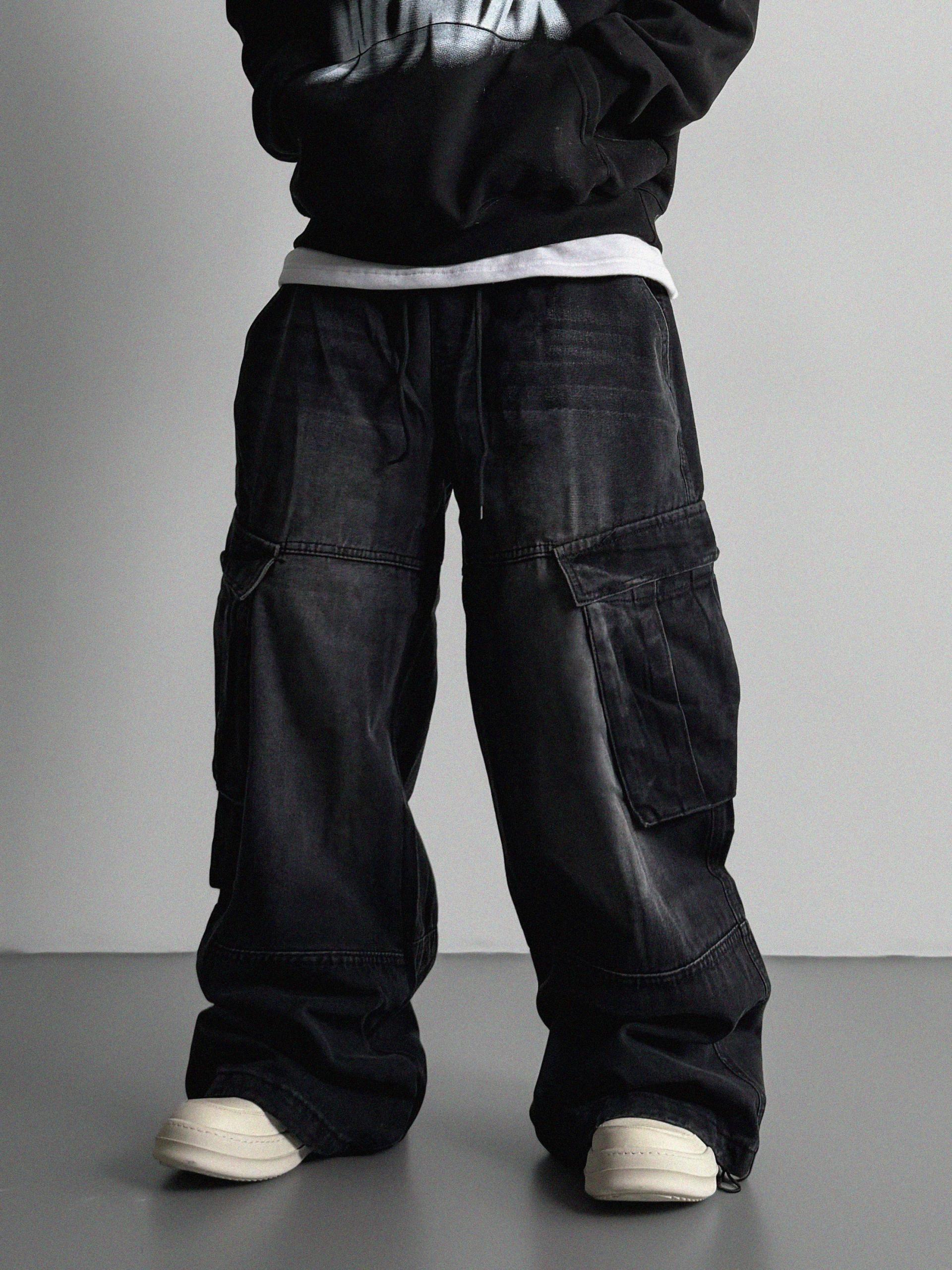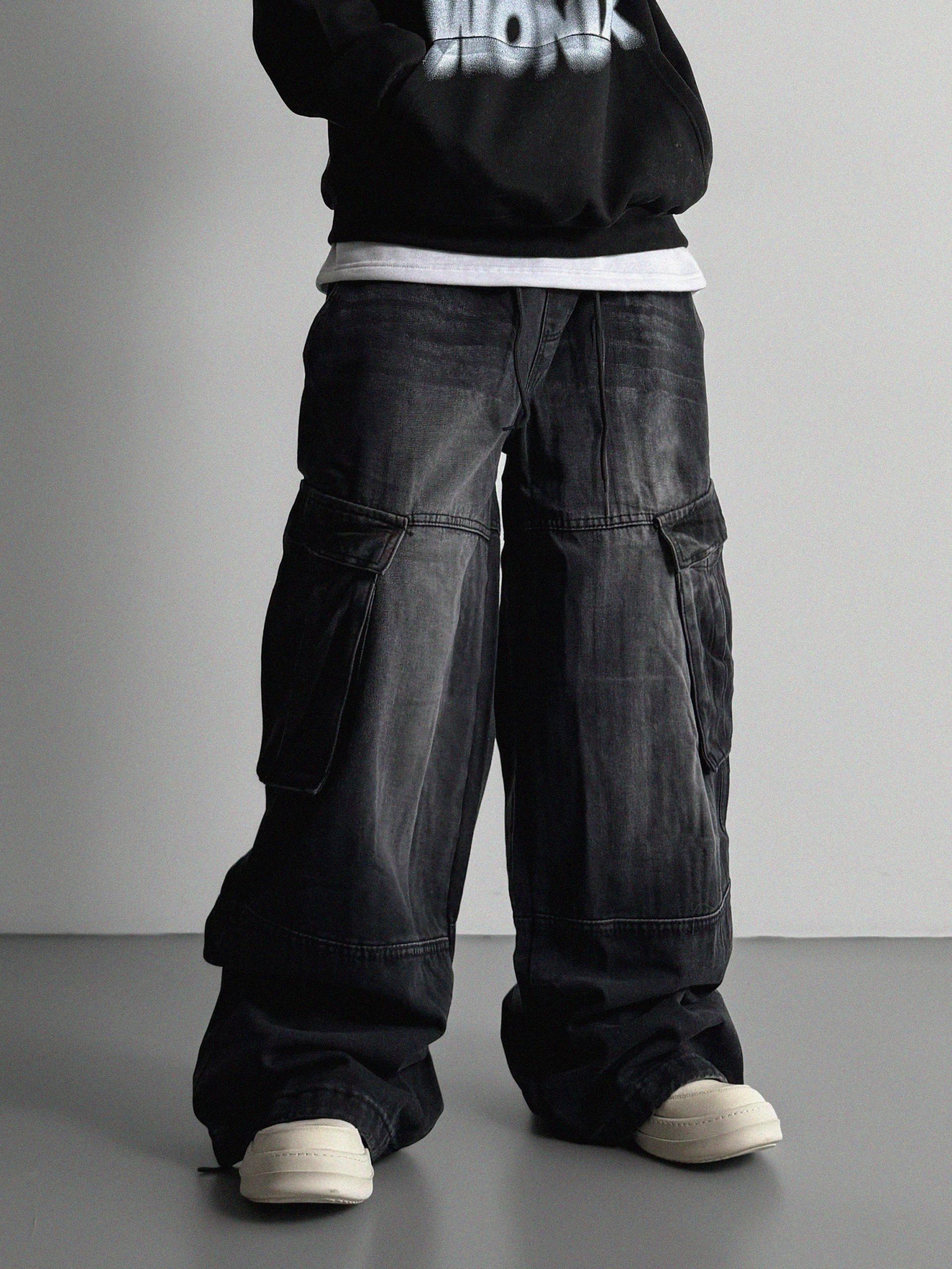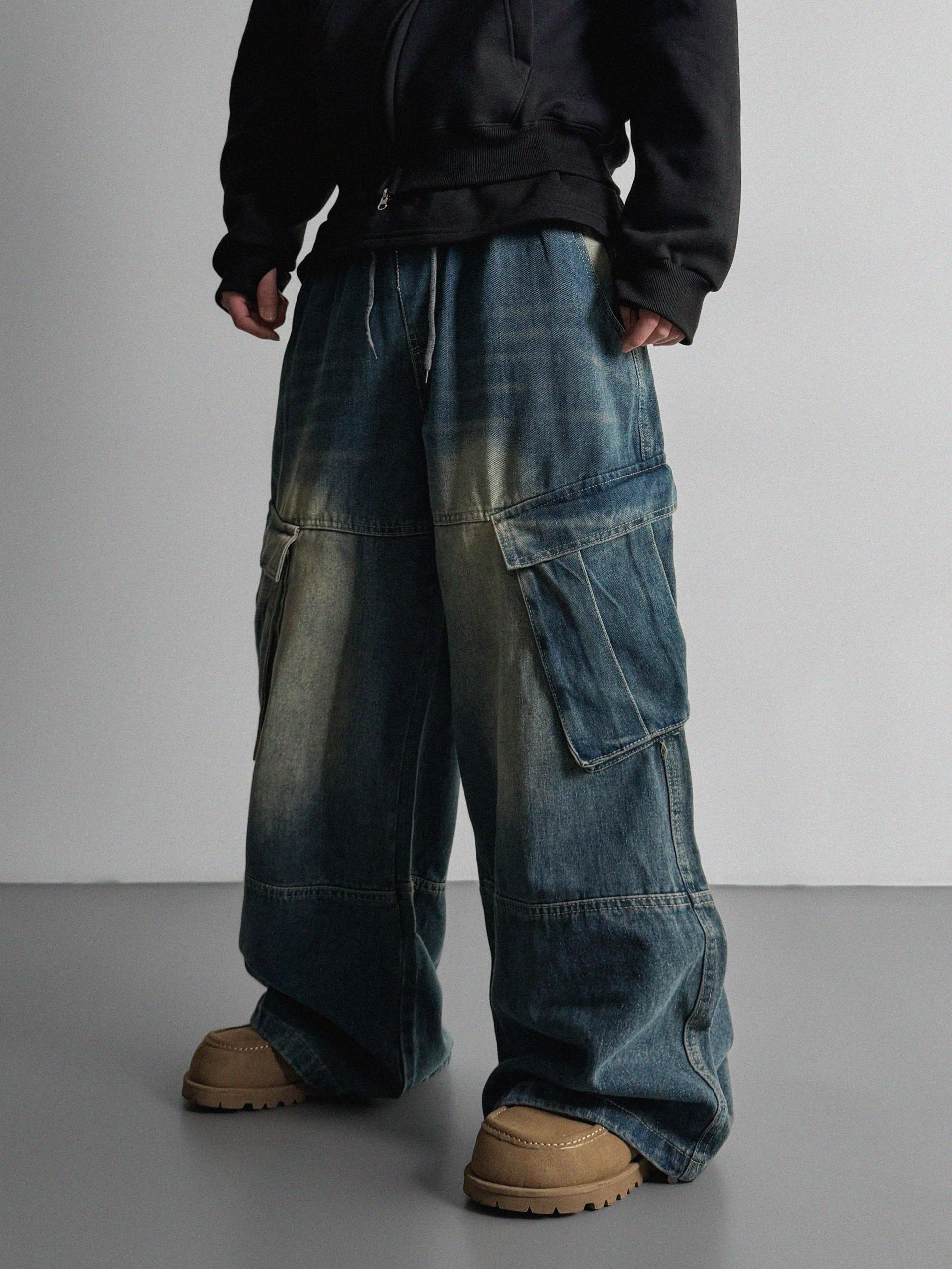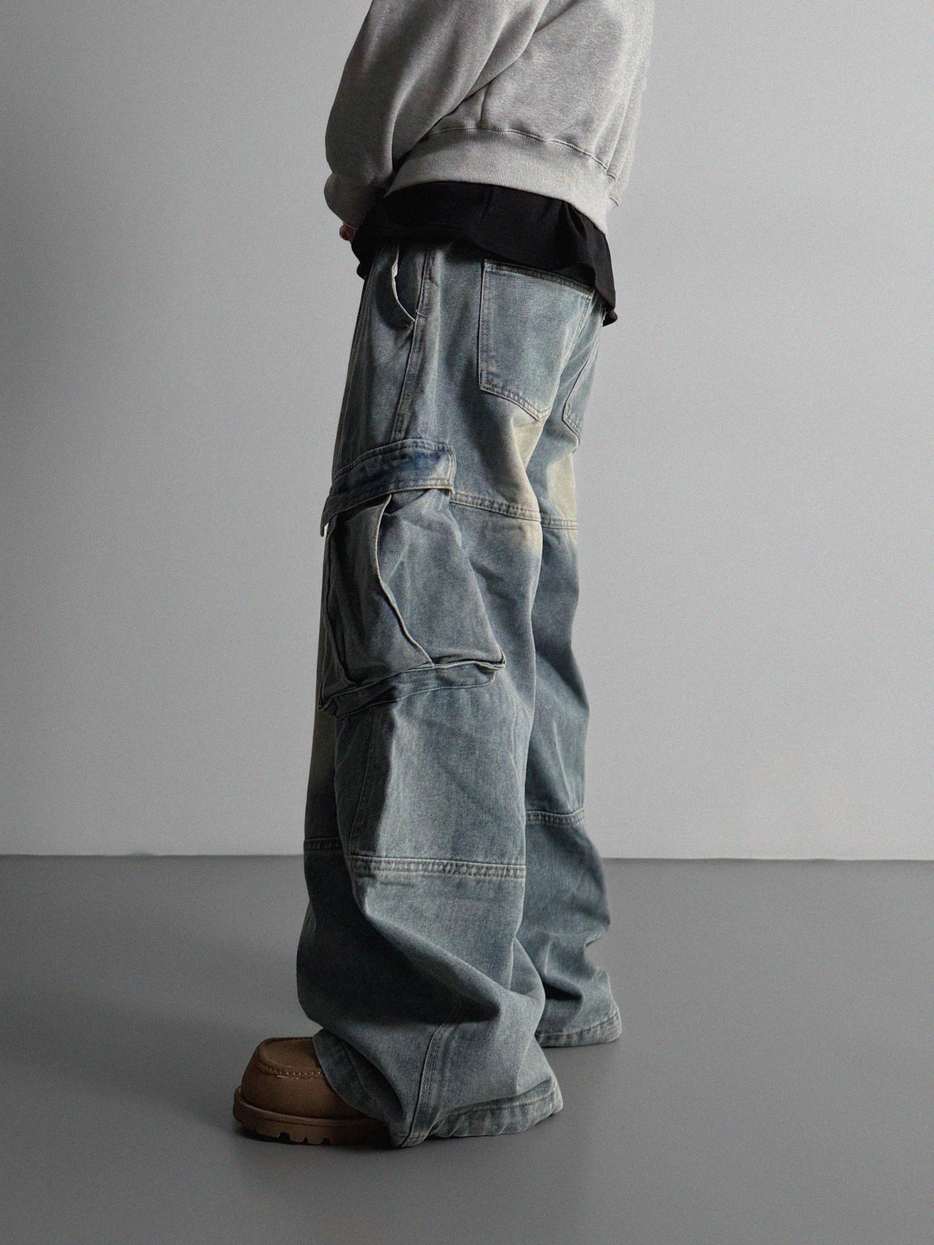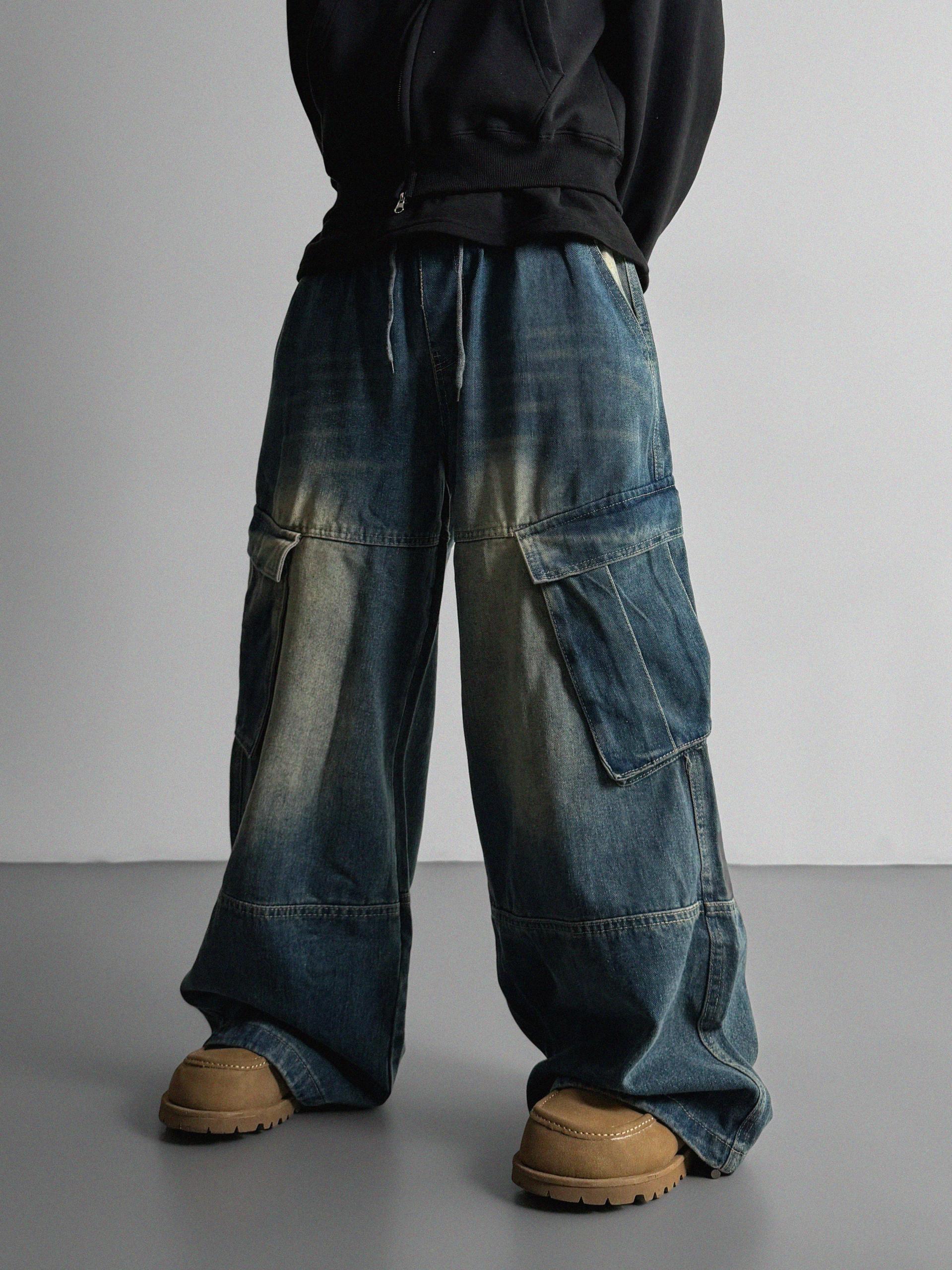 밴딩 와이드 데님 카고 팬츠