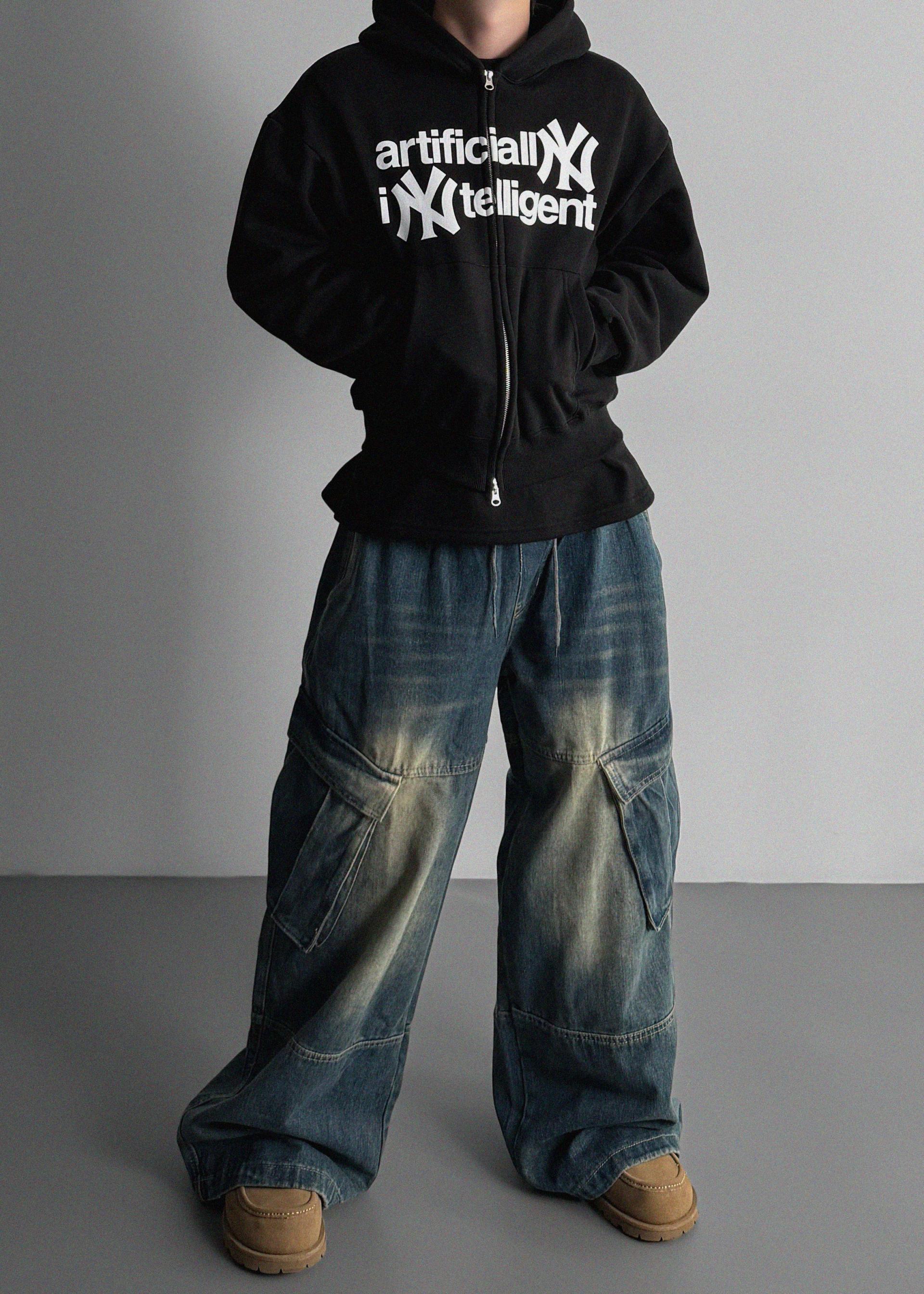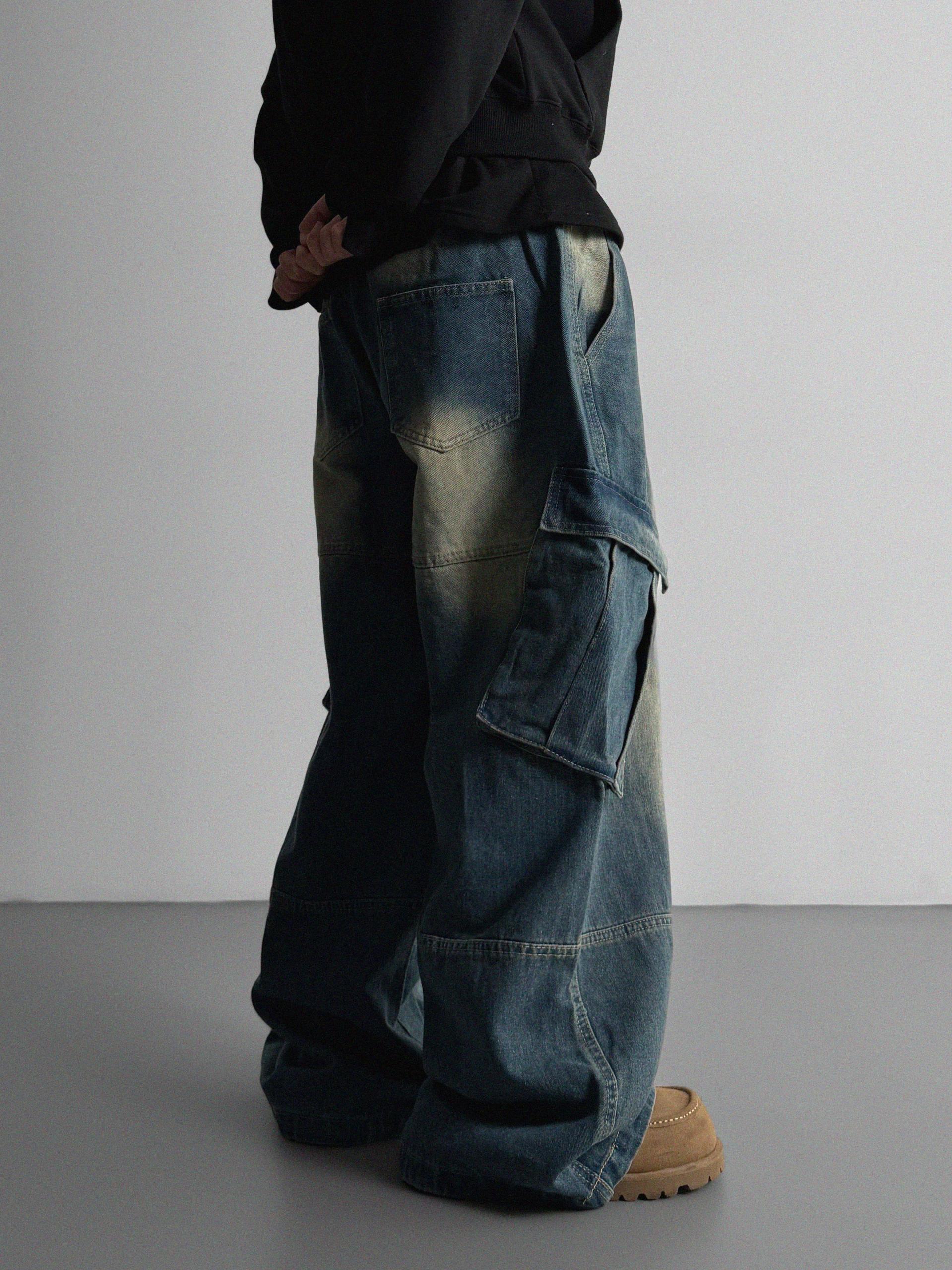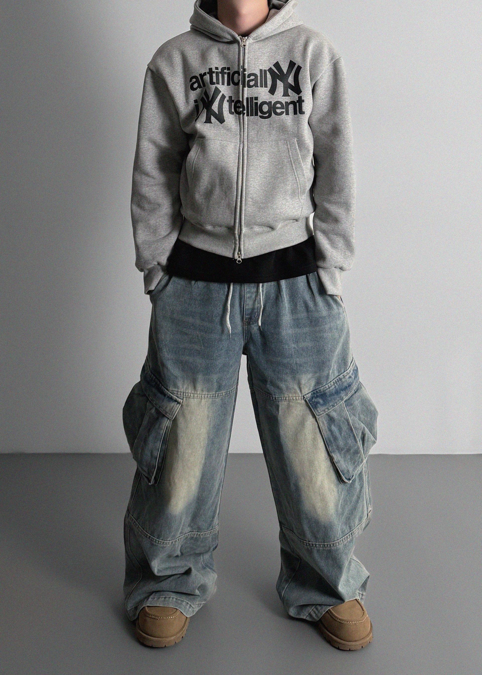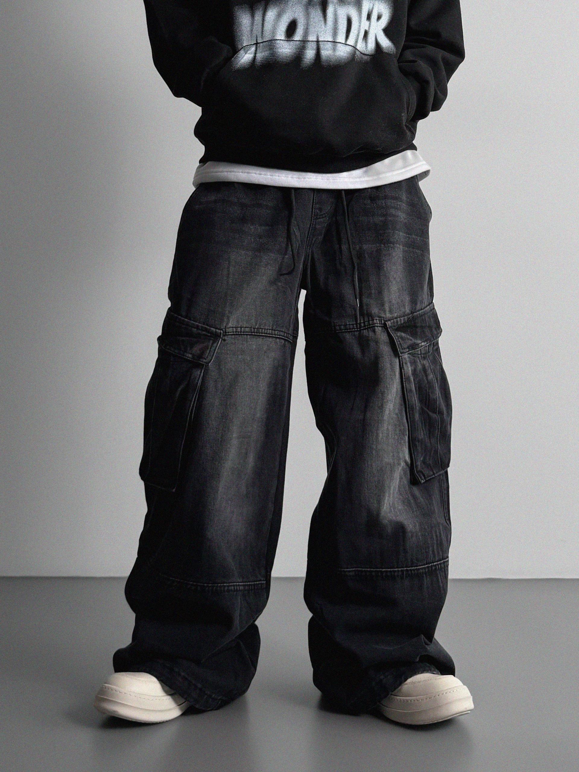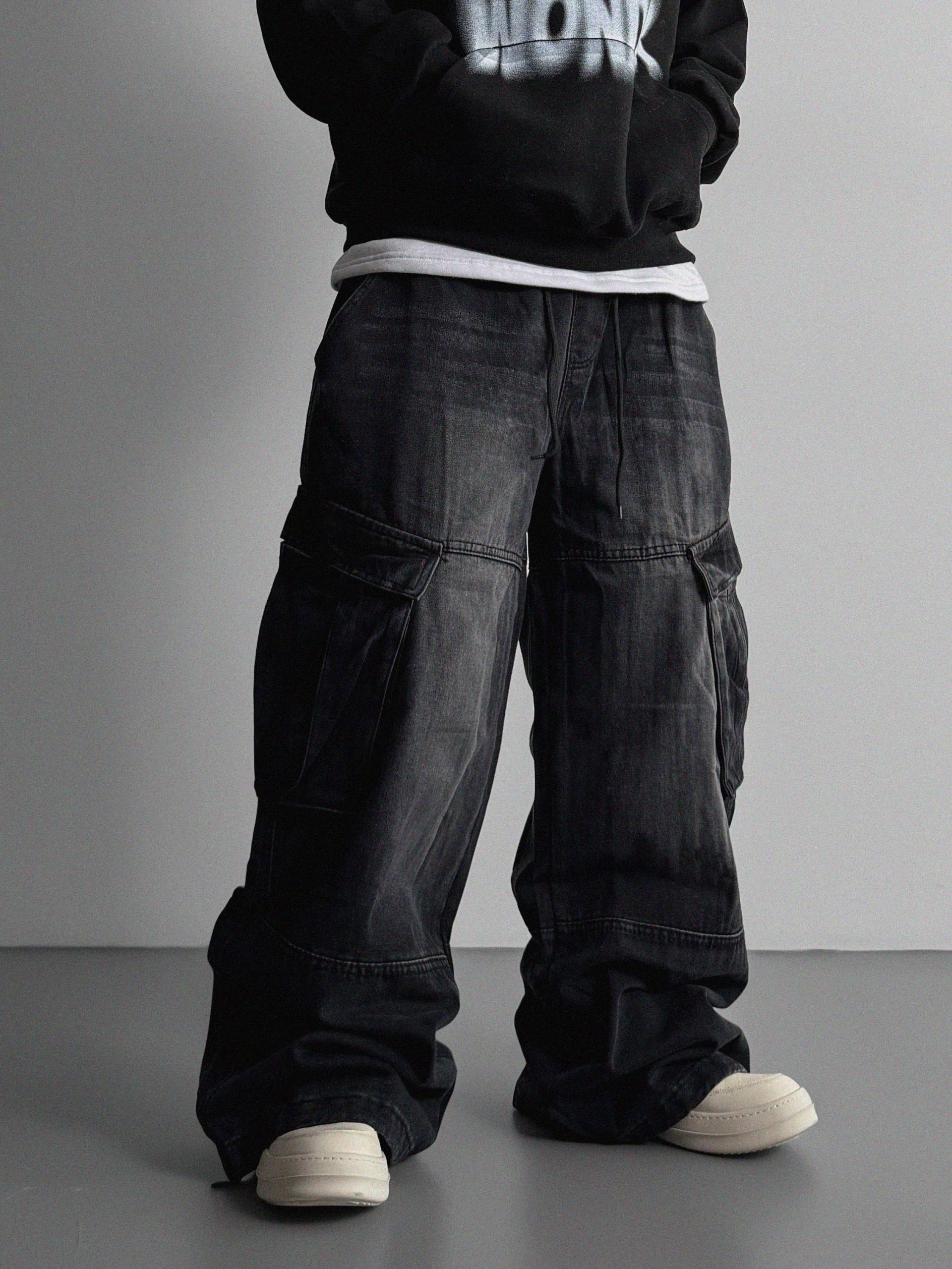 밴딩 와이드 데님 카고 팬츠