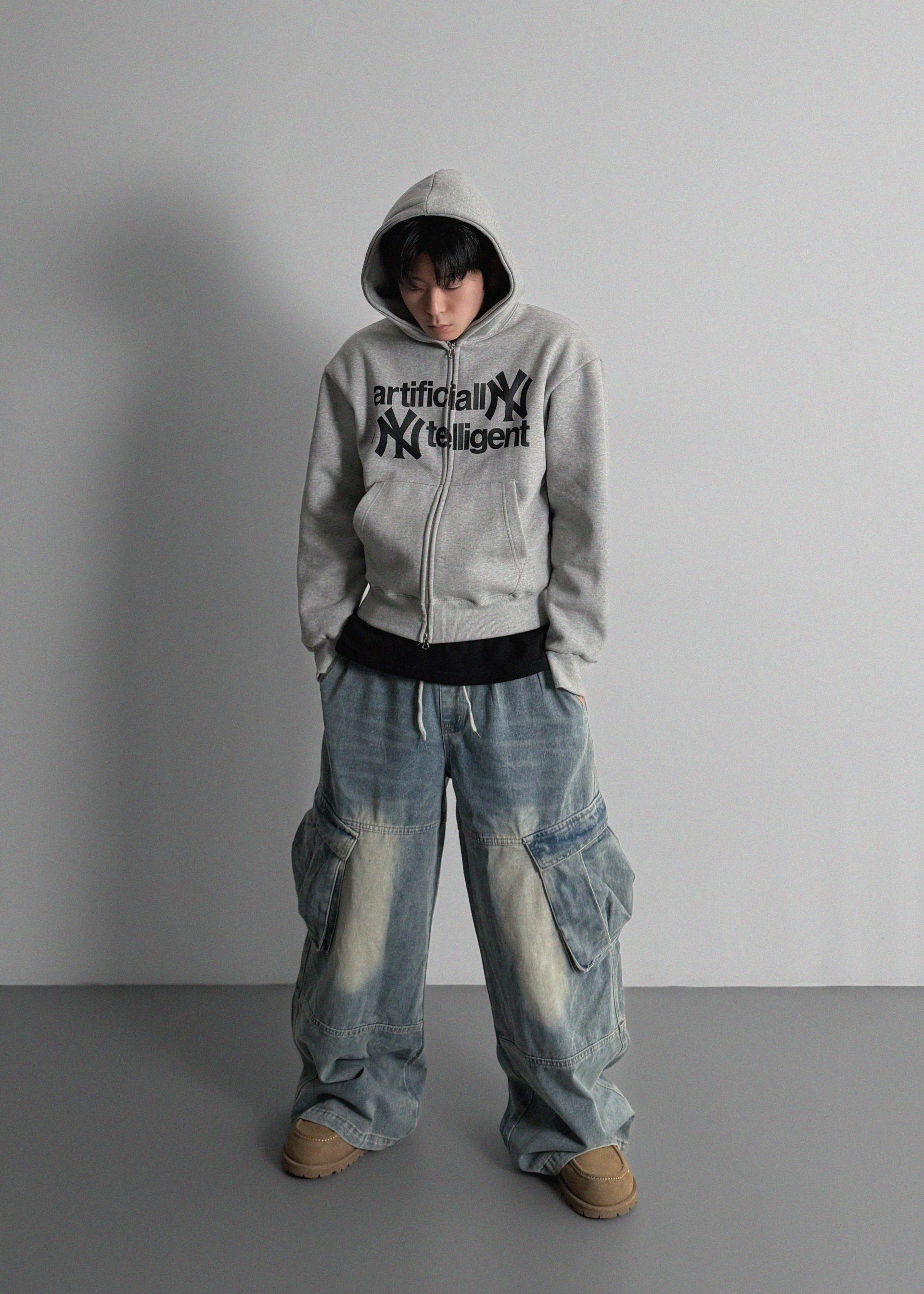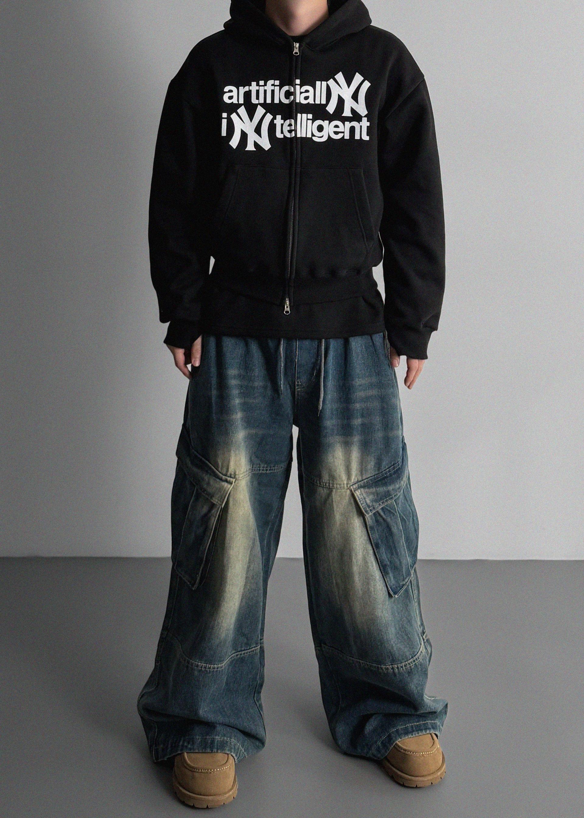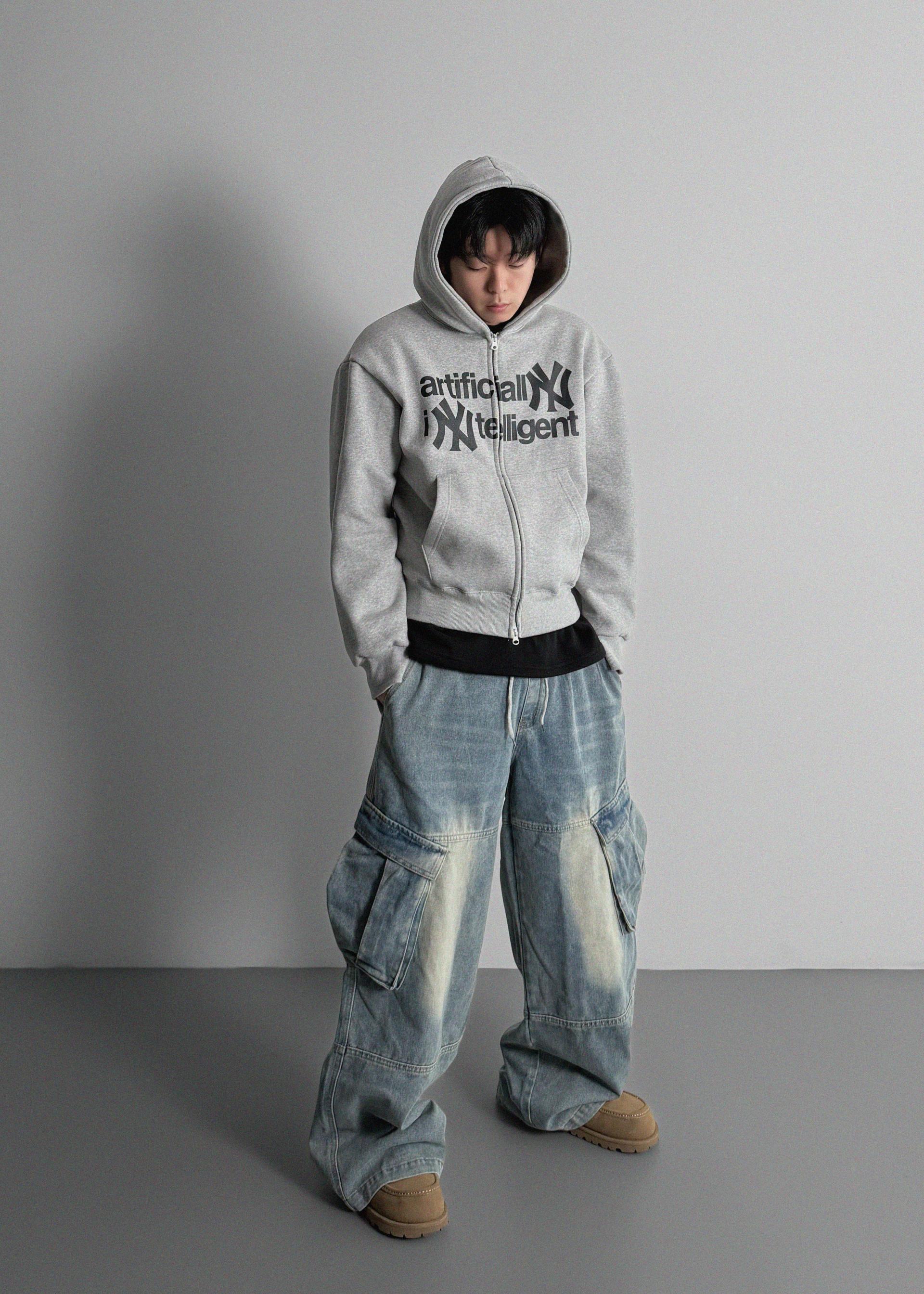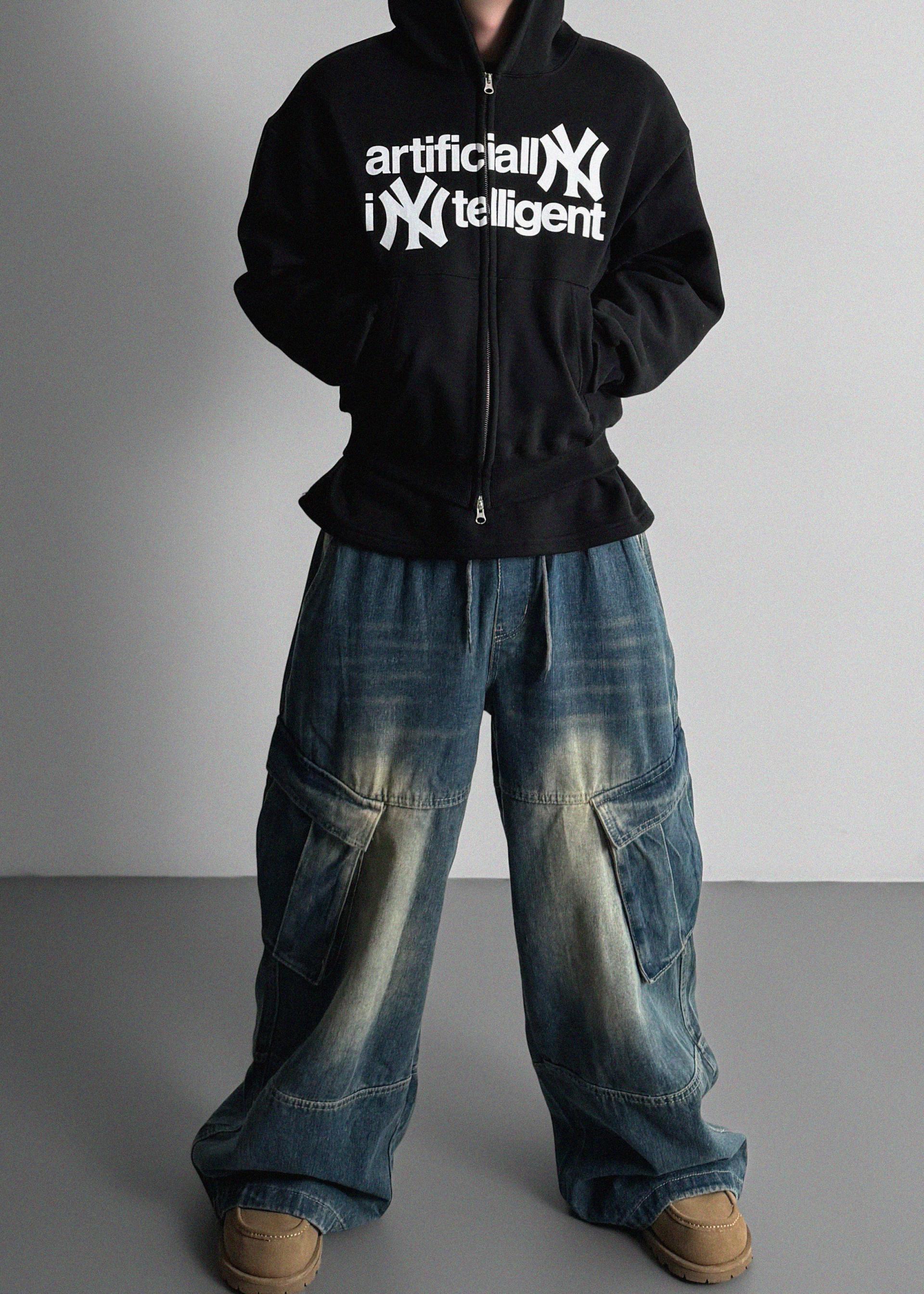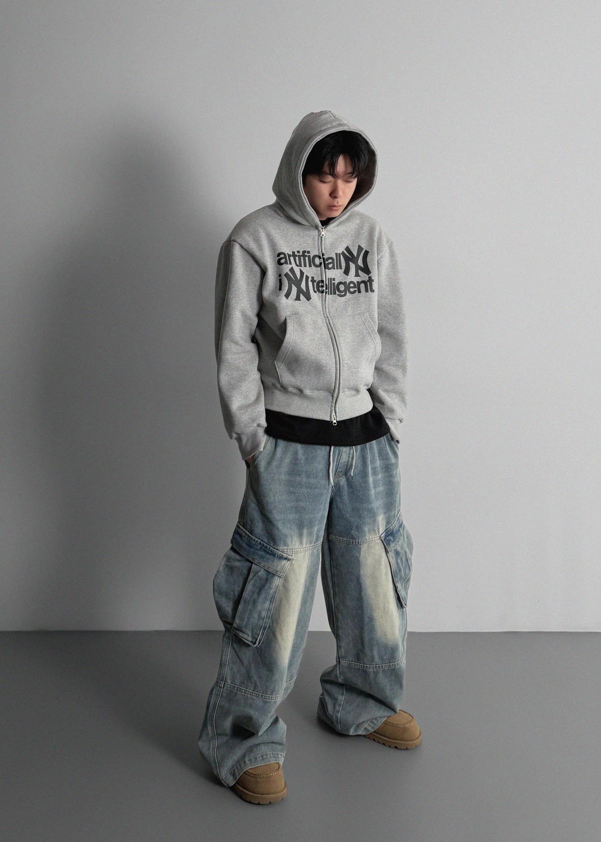 밴딩 와이드 데님 카고 팬츠