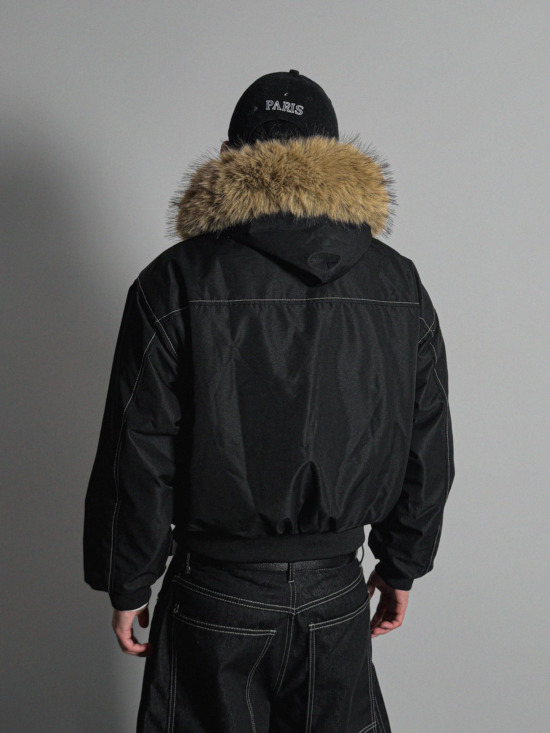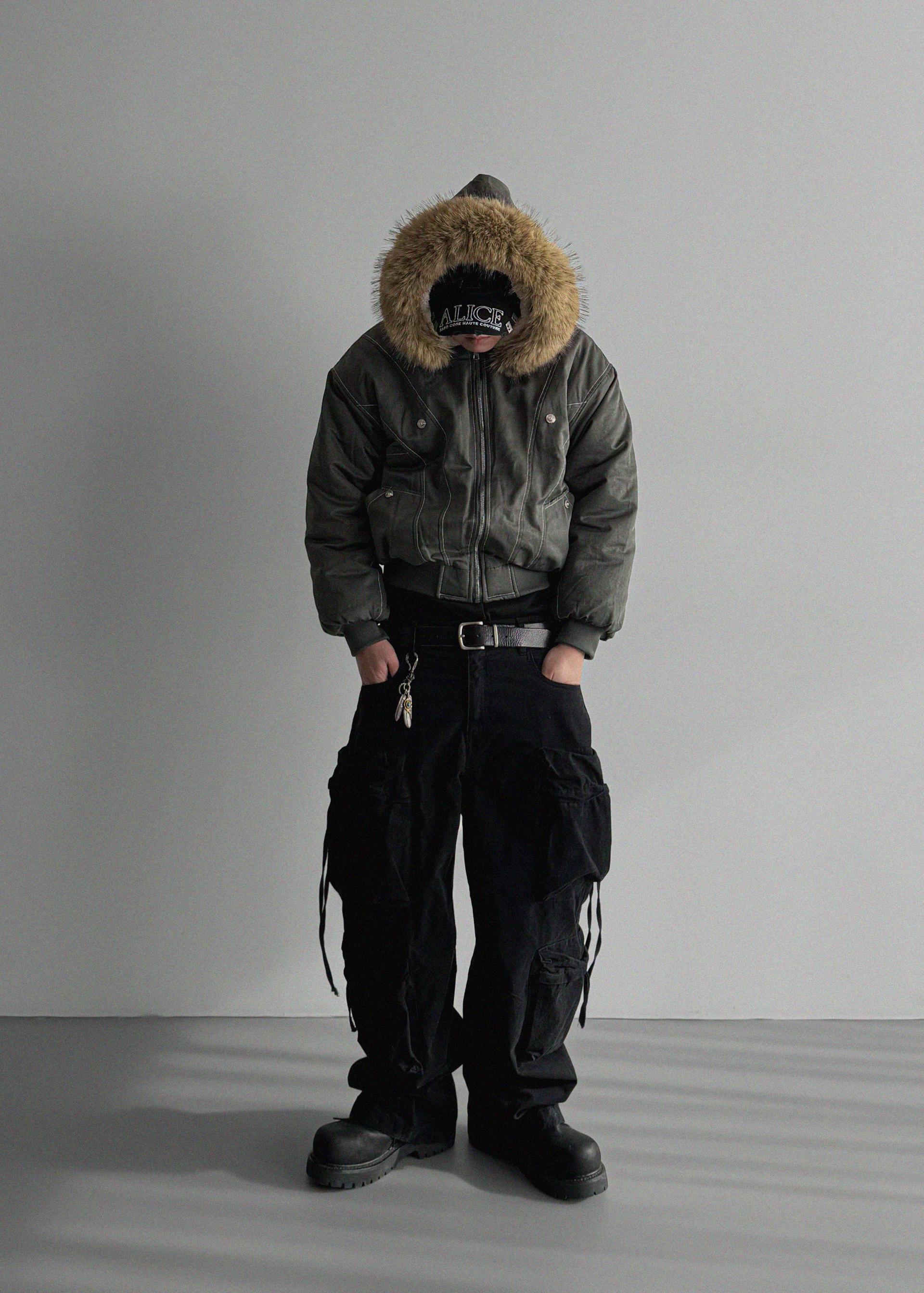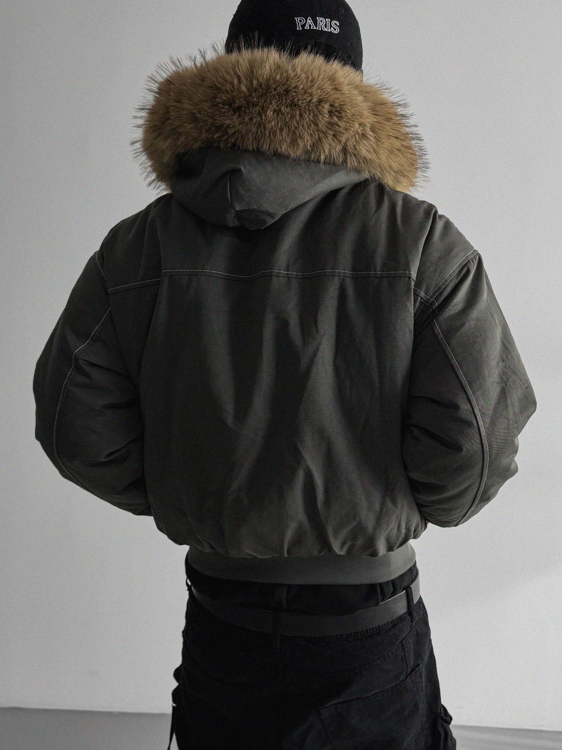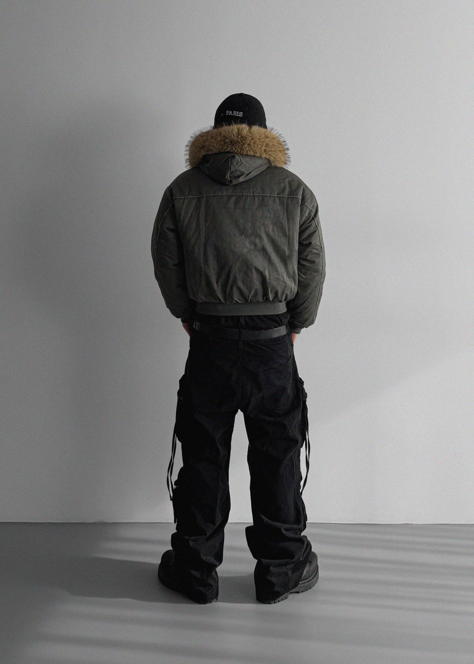라쿤 후드 크롭 퍼 자켓