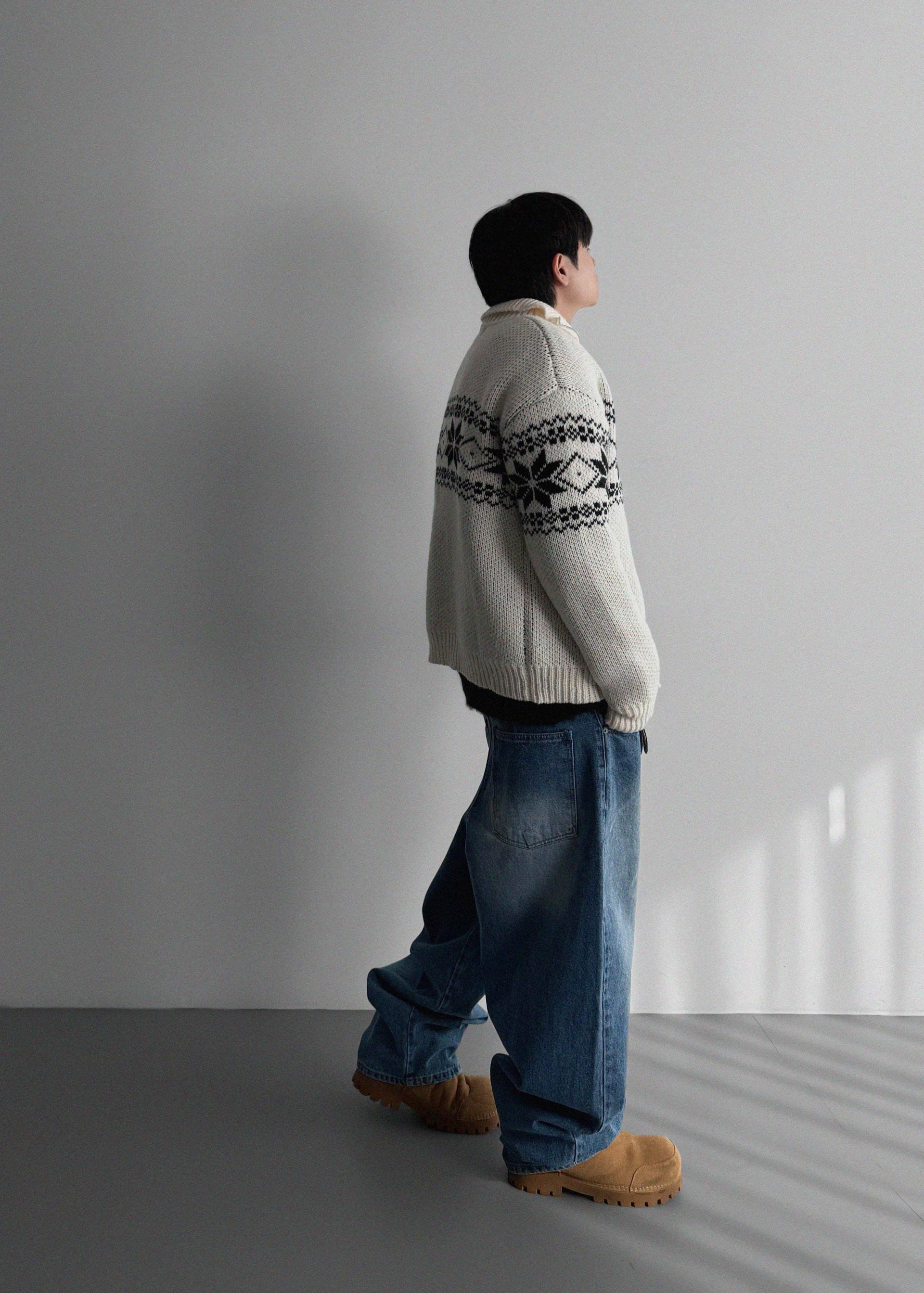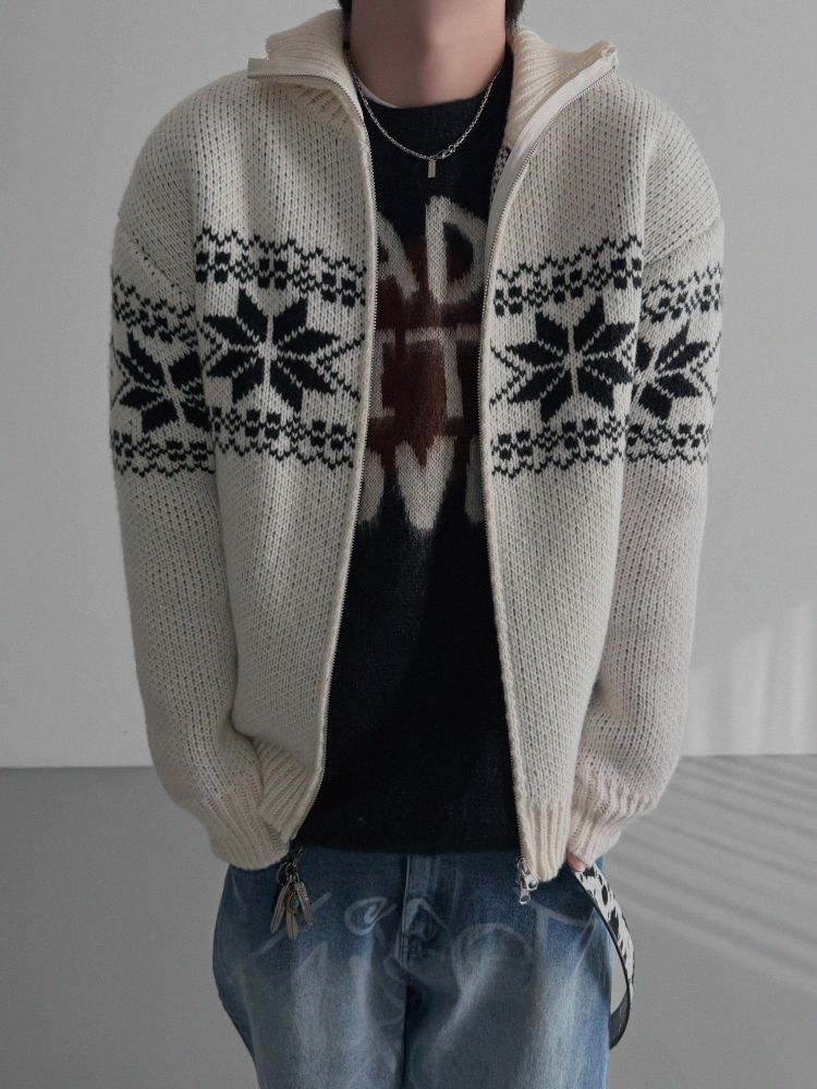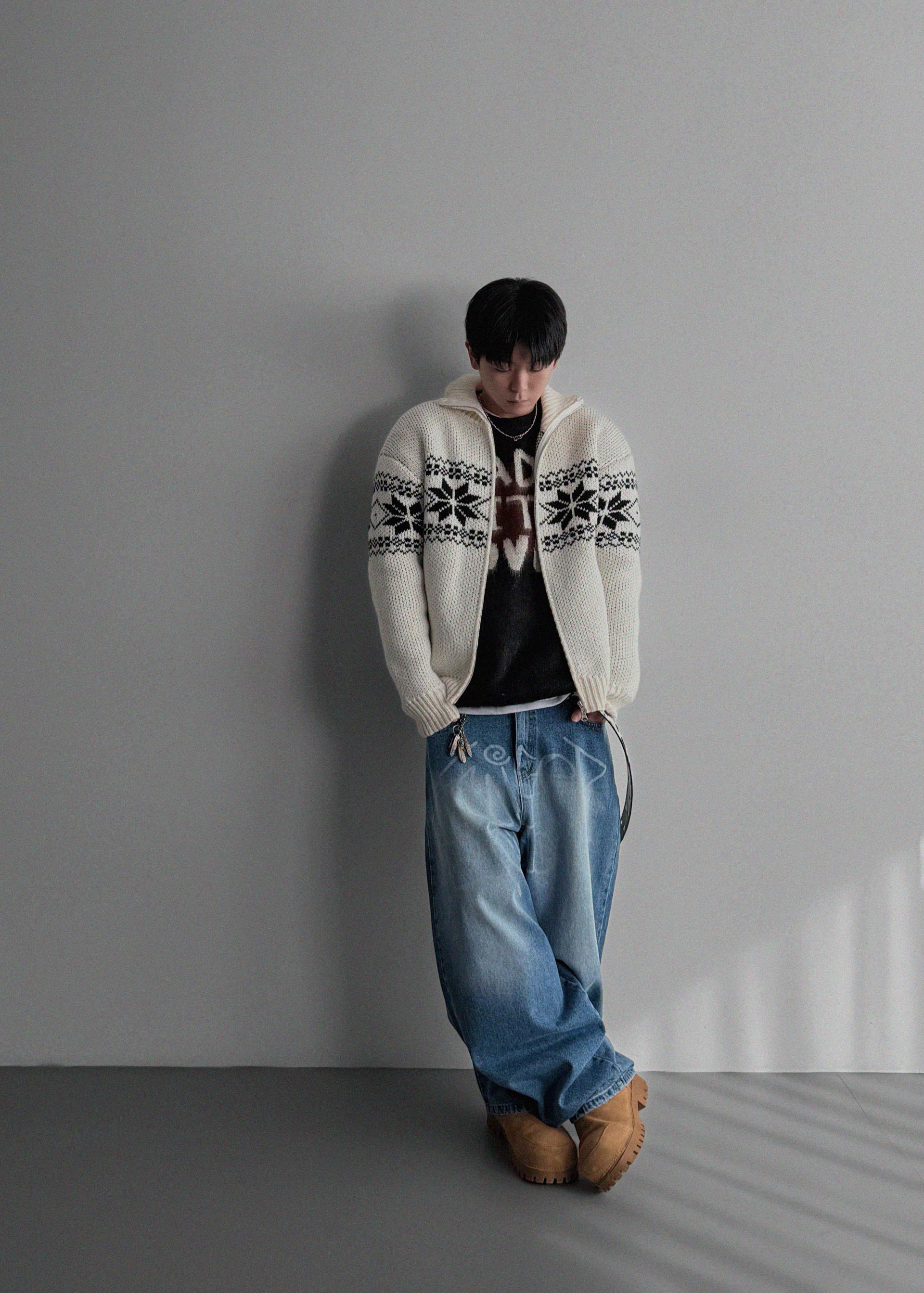 윈터 스노우 니트 집업