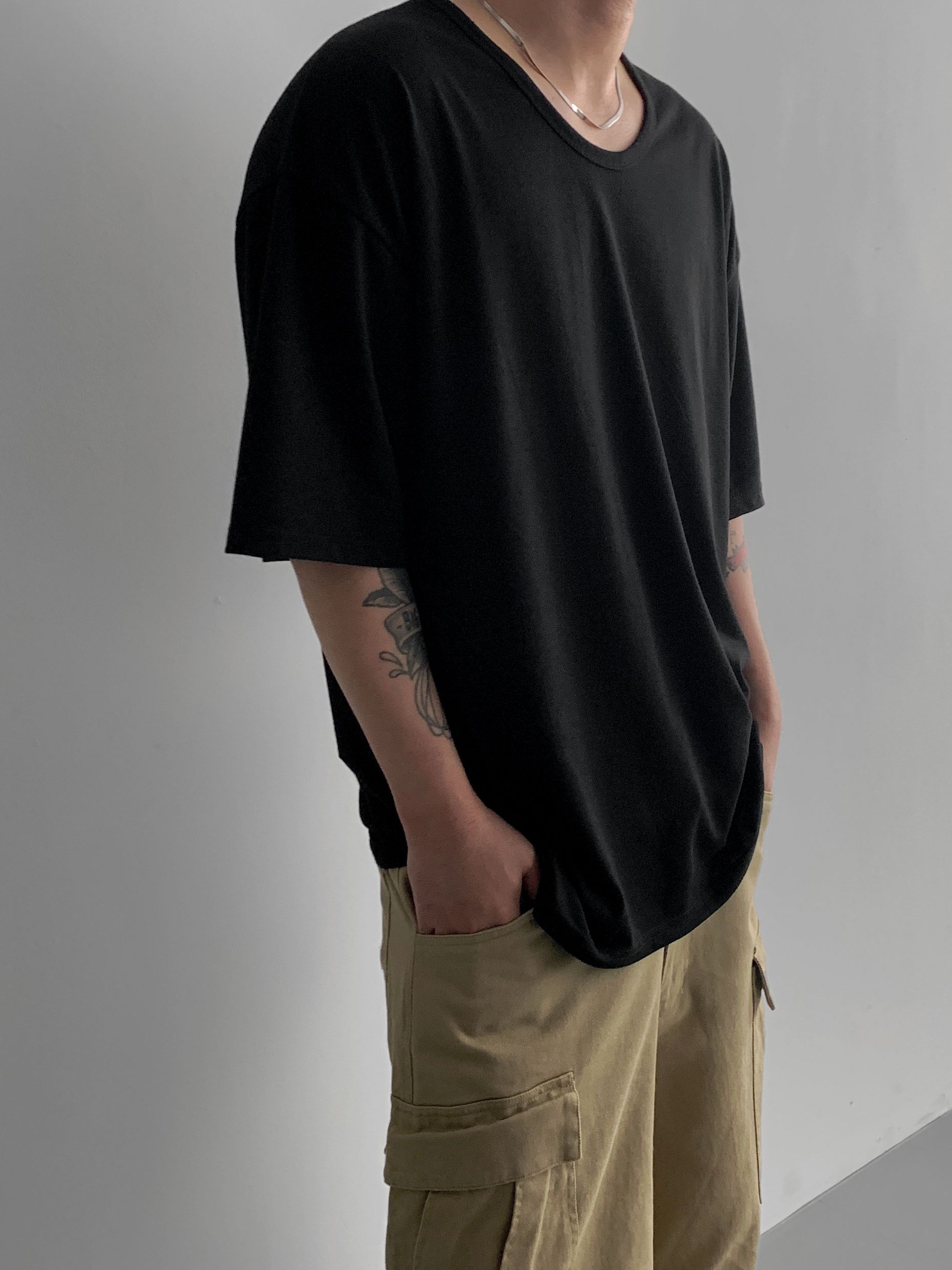 실크 오버 U 넥 반팔 티셔츠 (6colors)