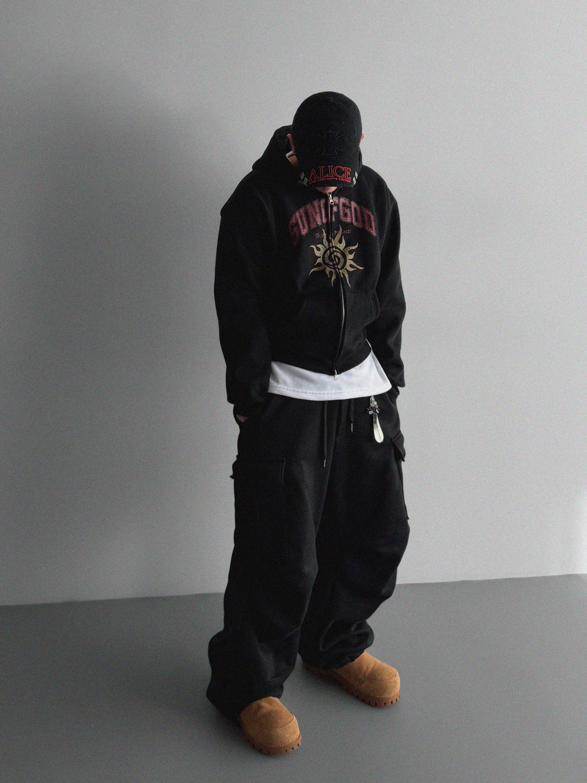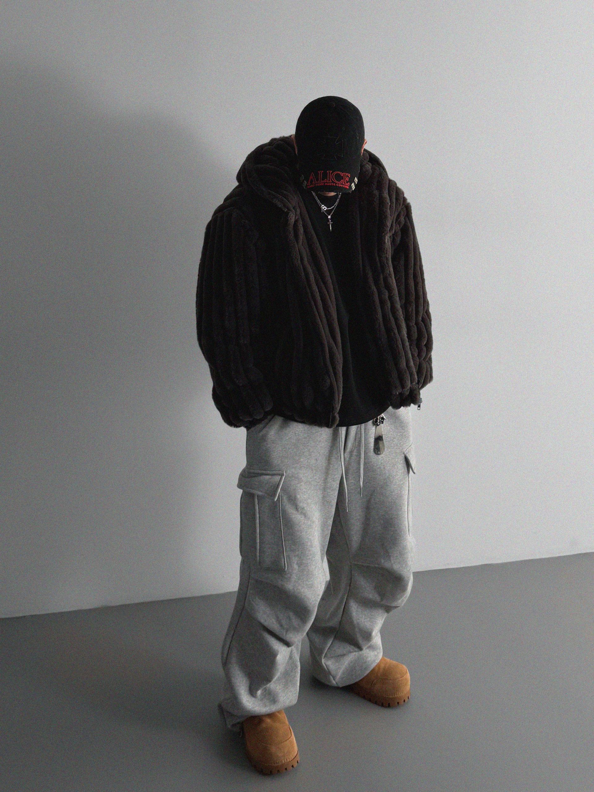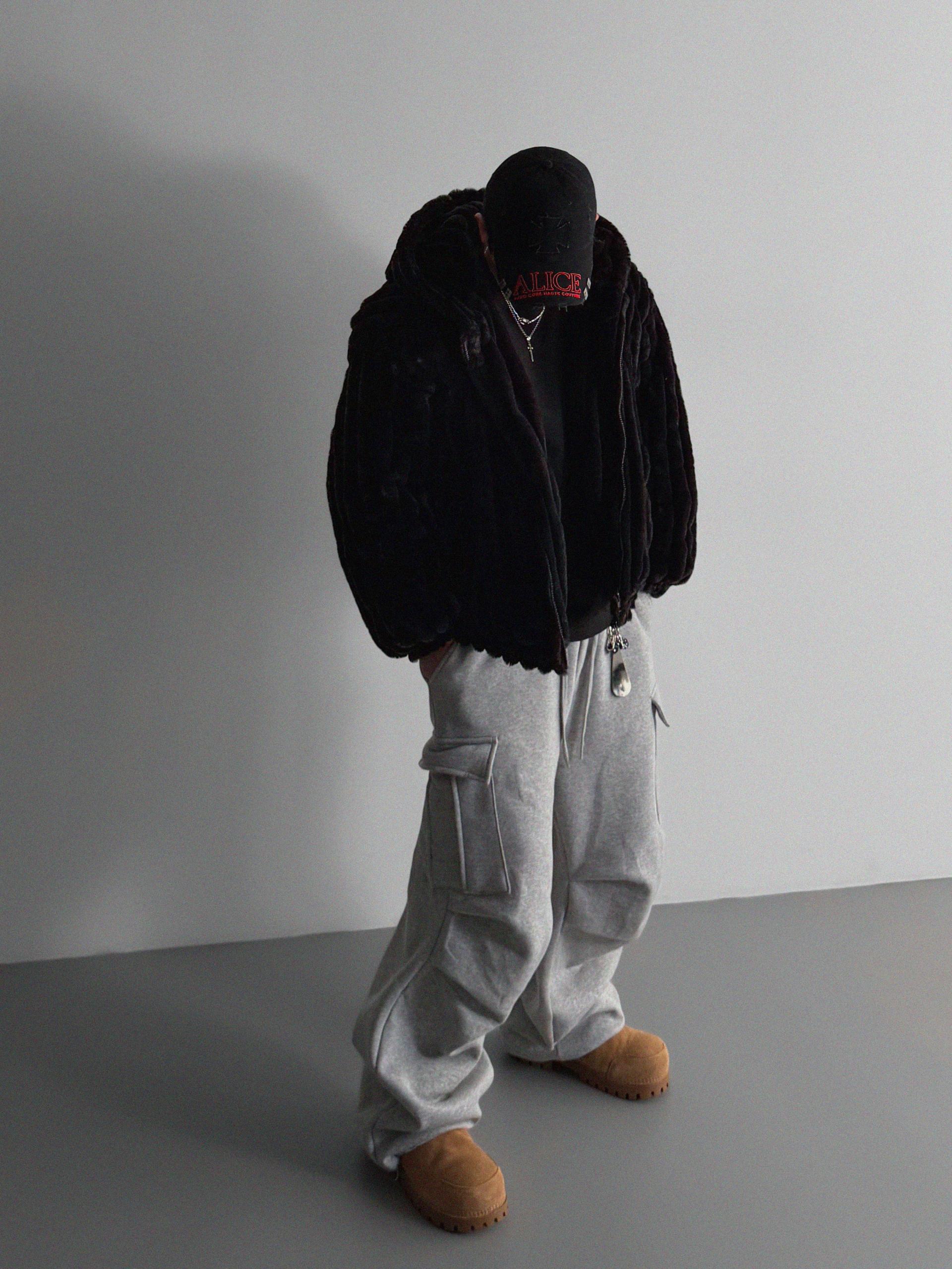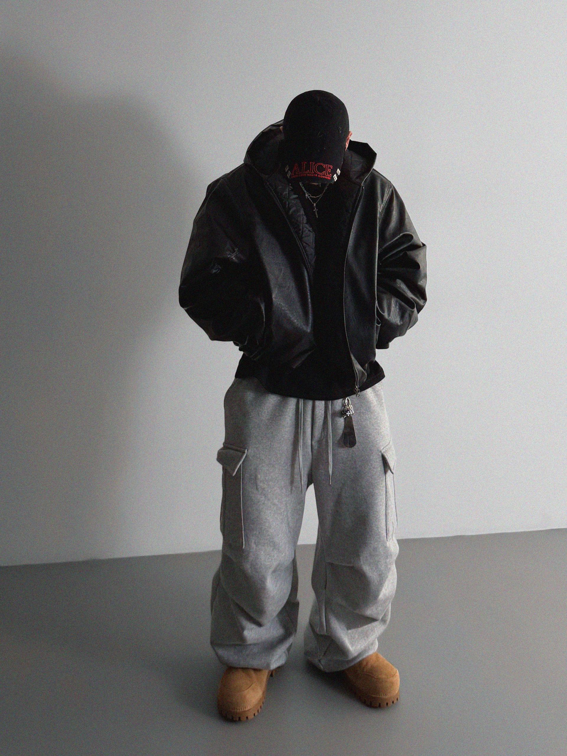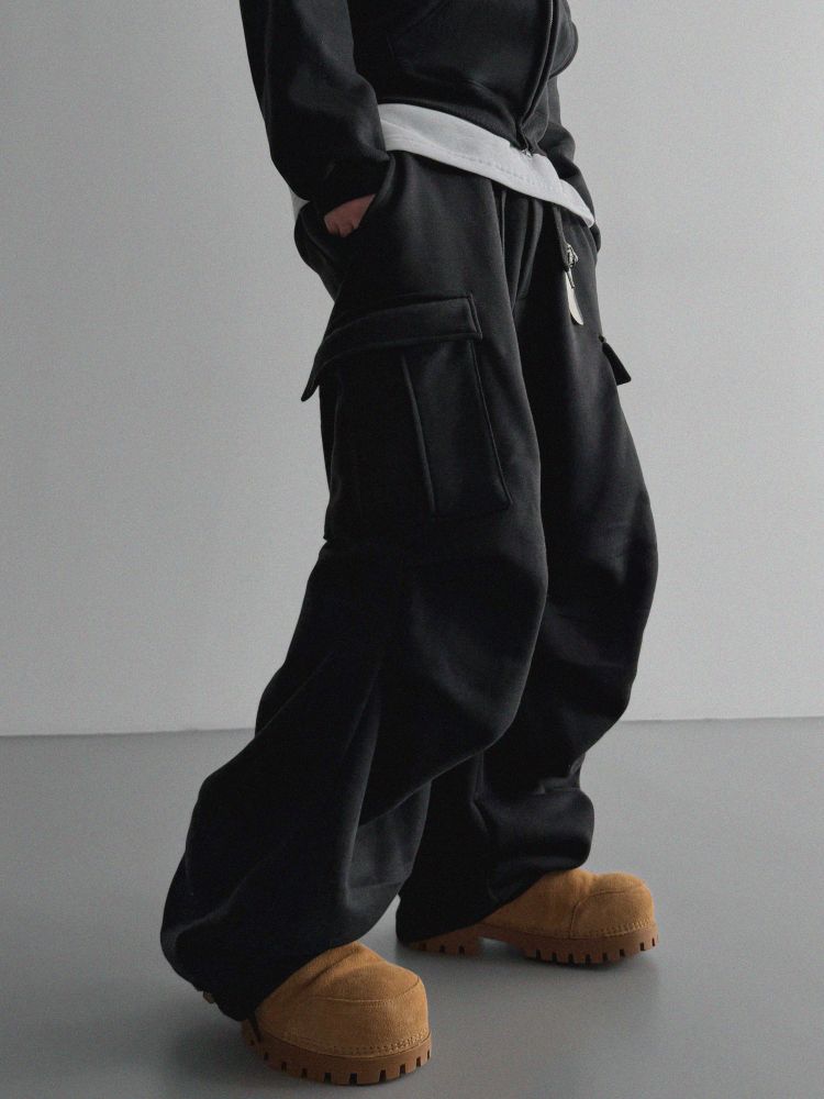 특기모 카고 와이드 스웻 팬츠